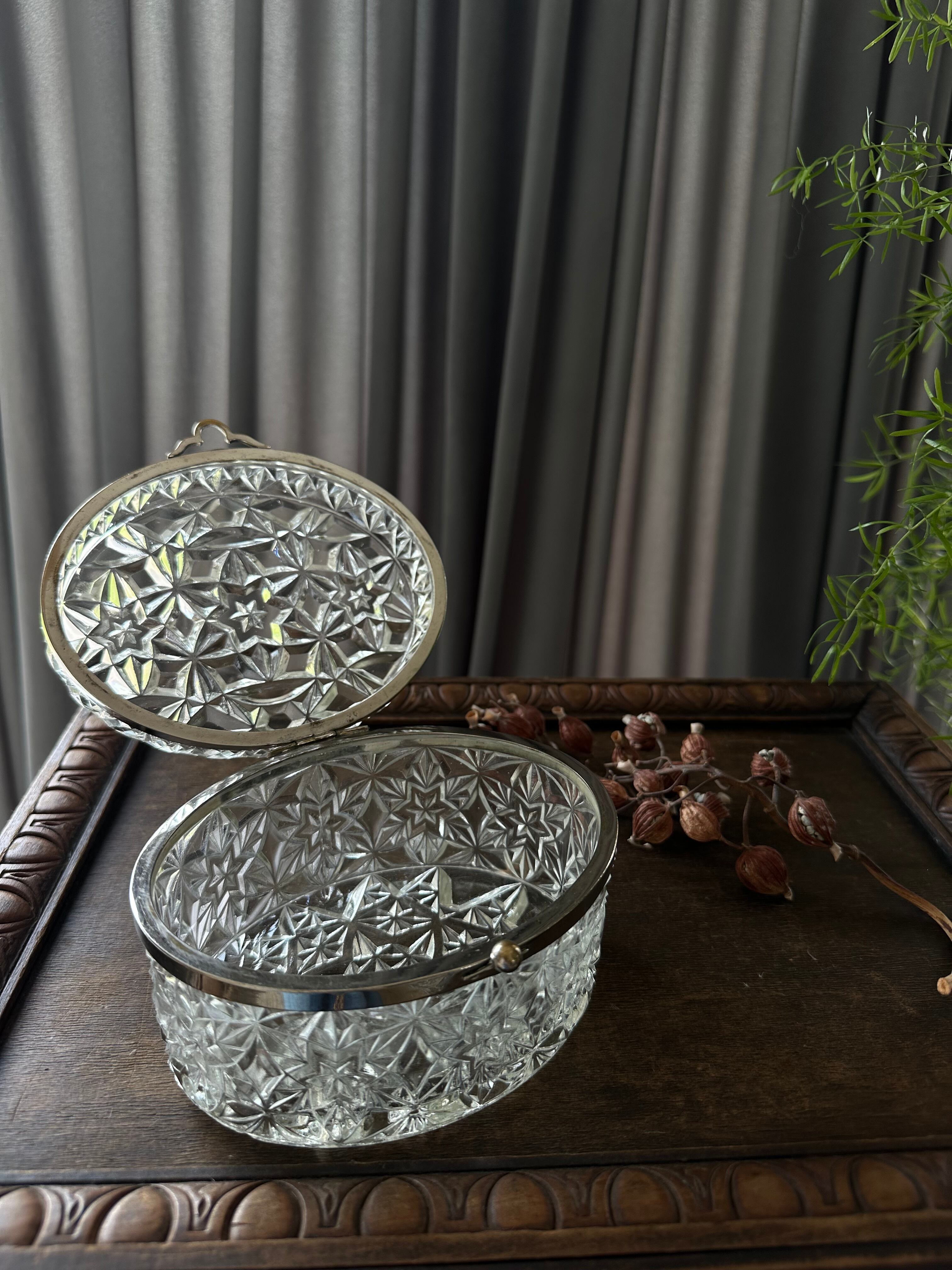 キラキラと美しい輝きが魅力のガラスで作られたヴィンテージのジュエリーボックスです。
