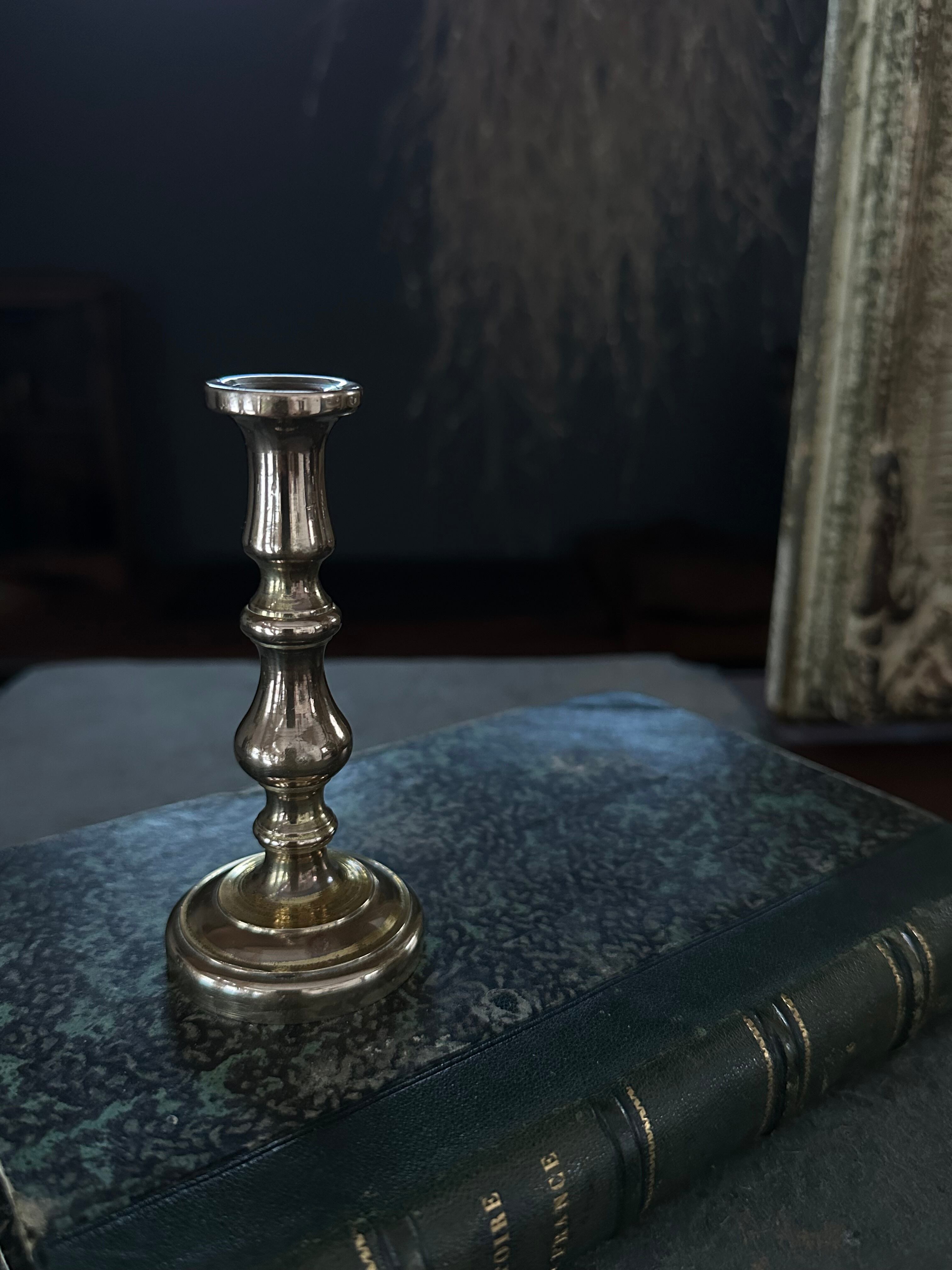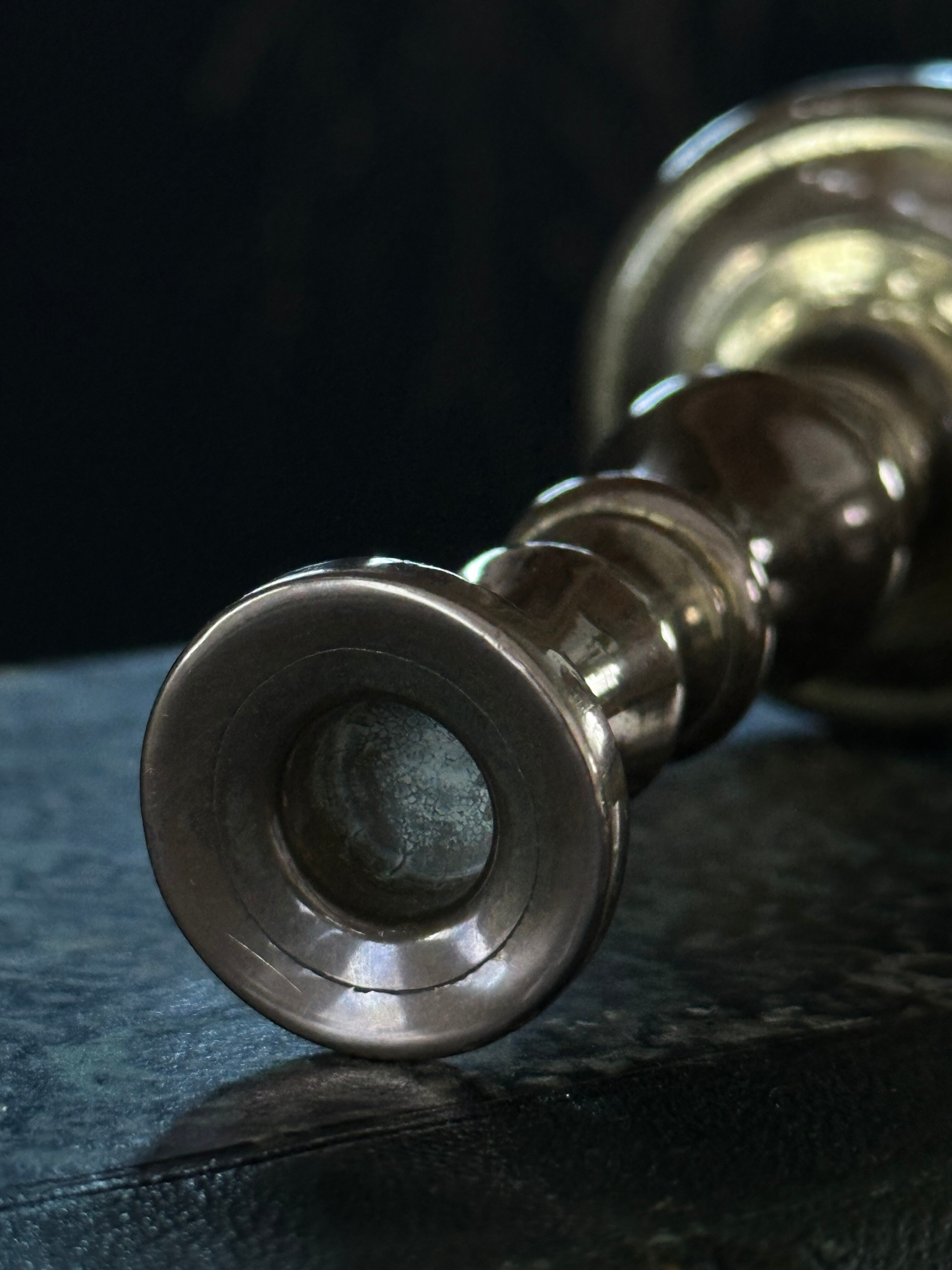 ほんのり赤味を帯びた真鍮のキャンドルスタンド。