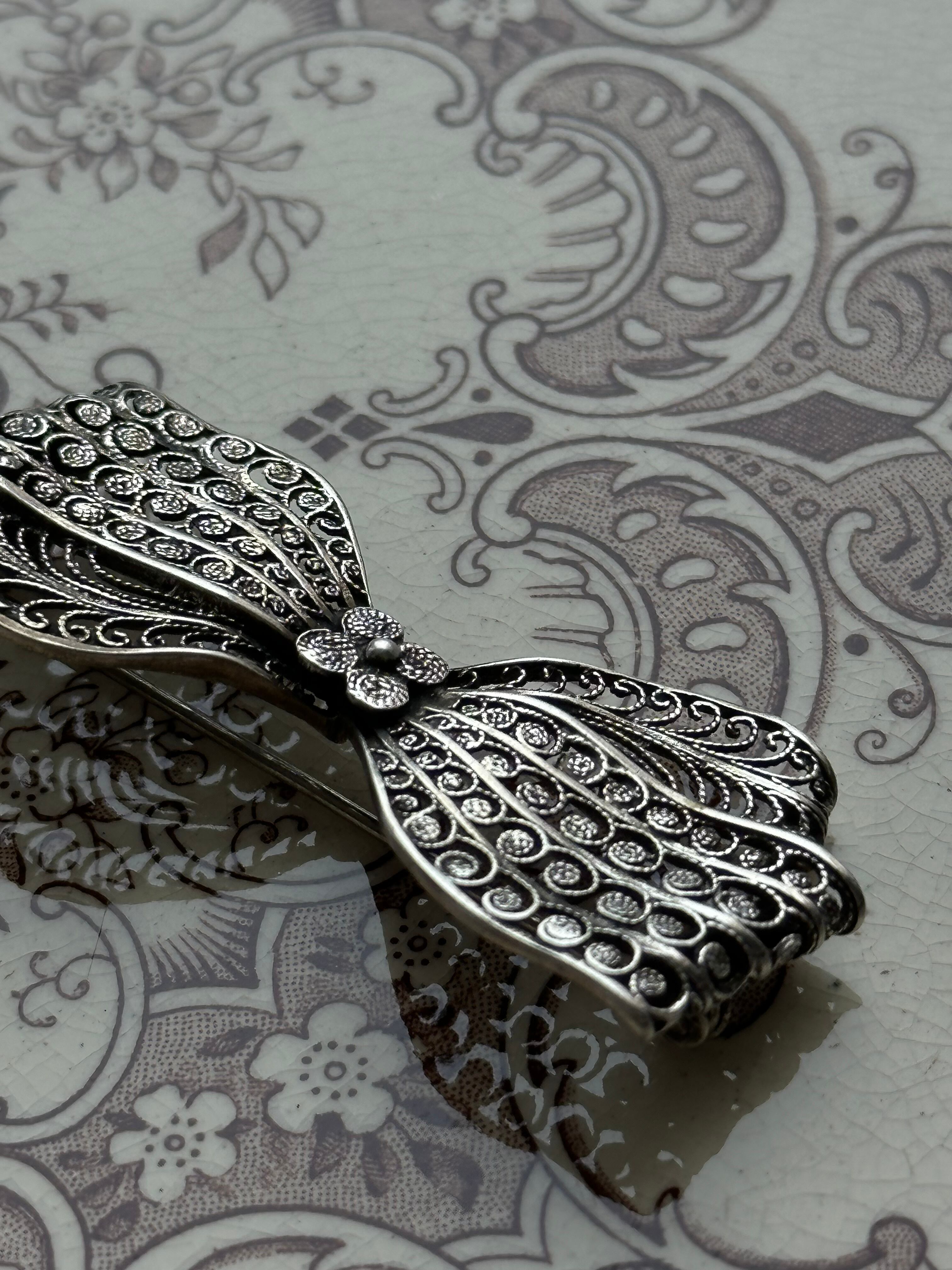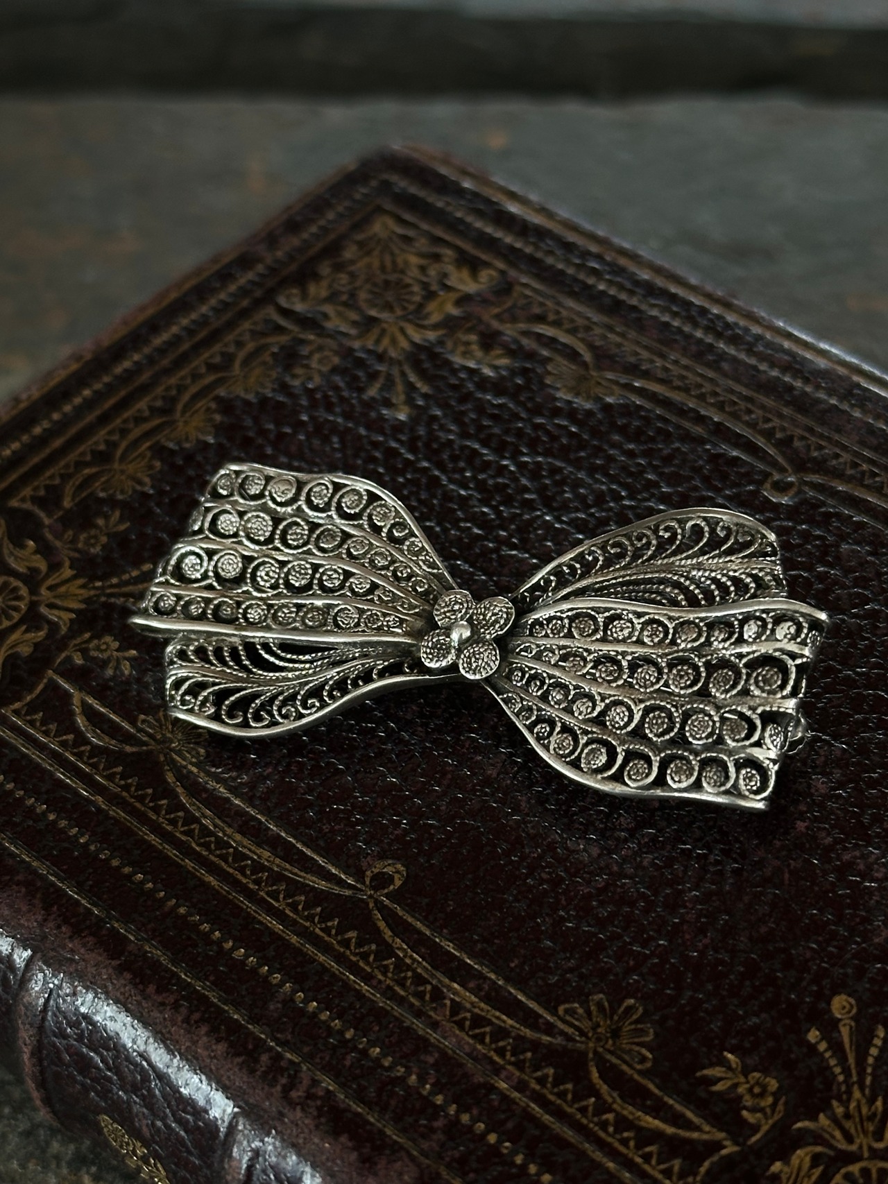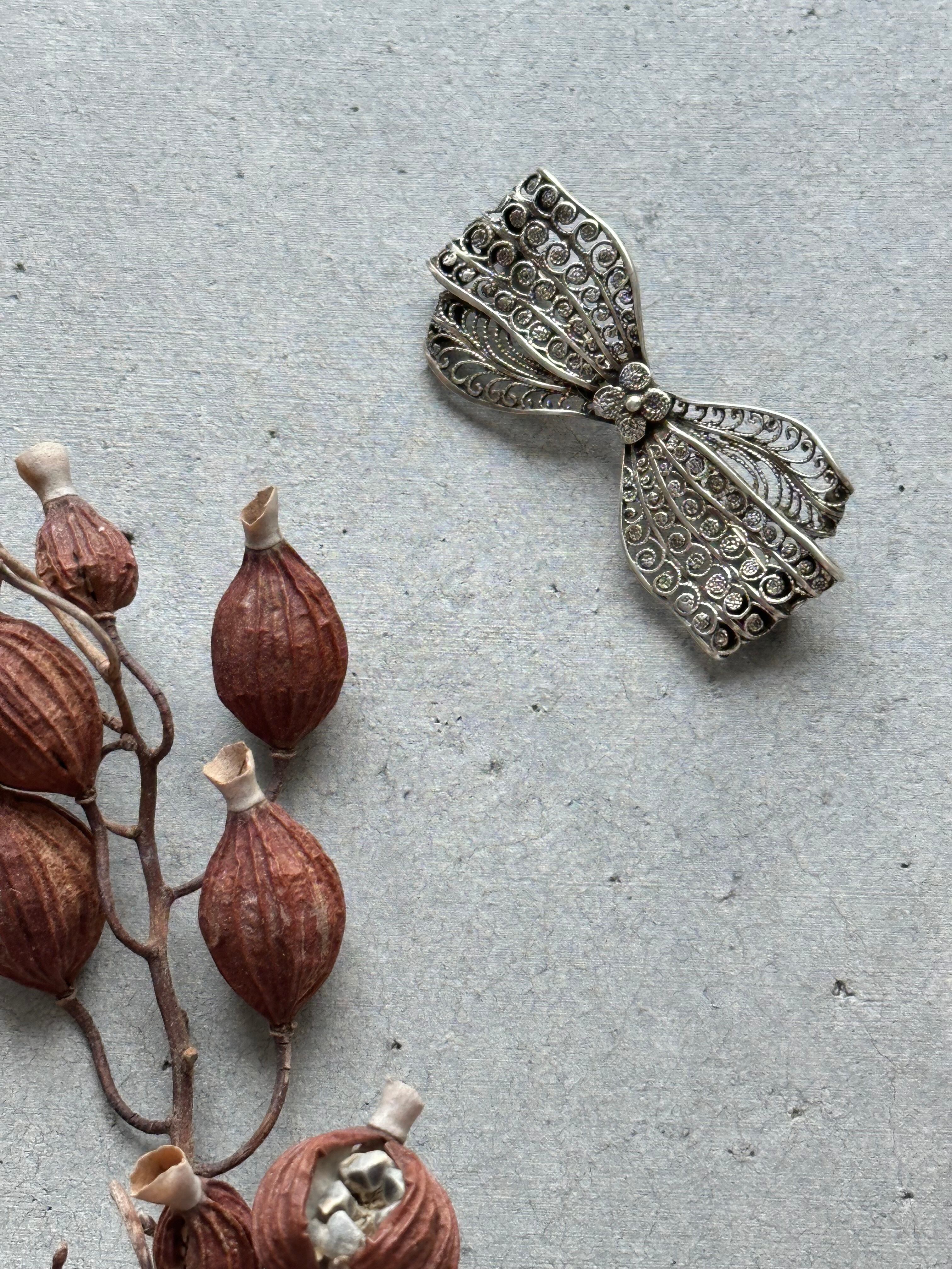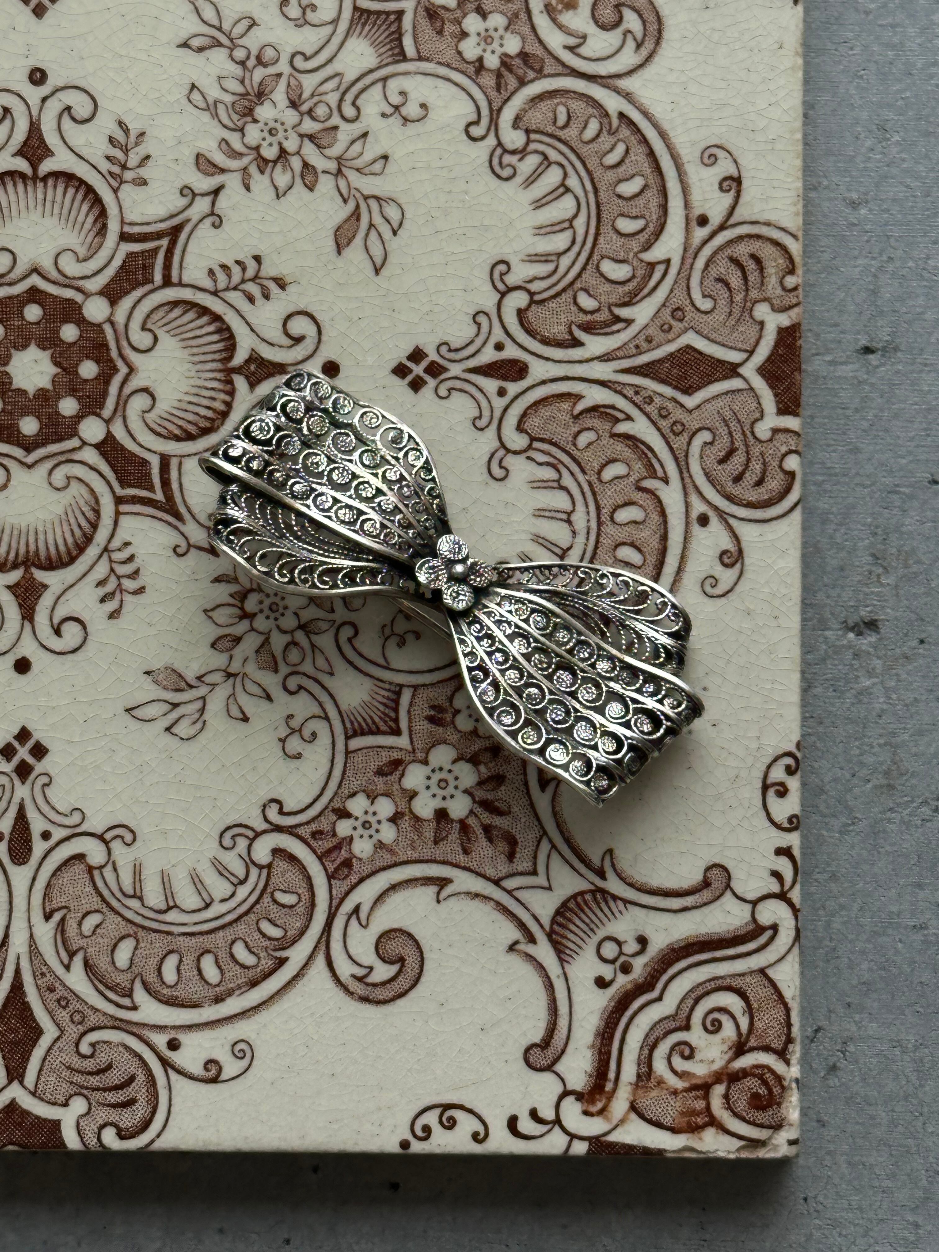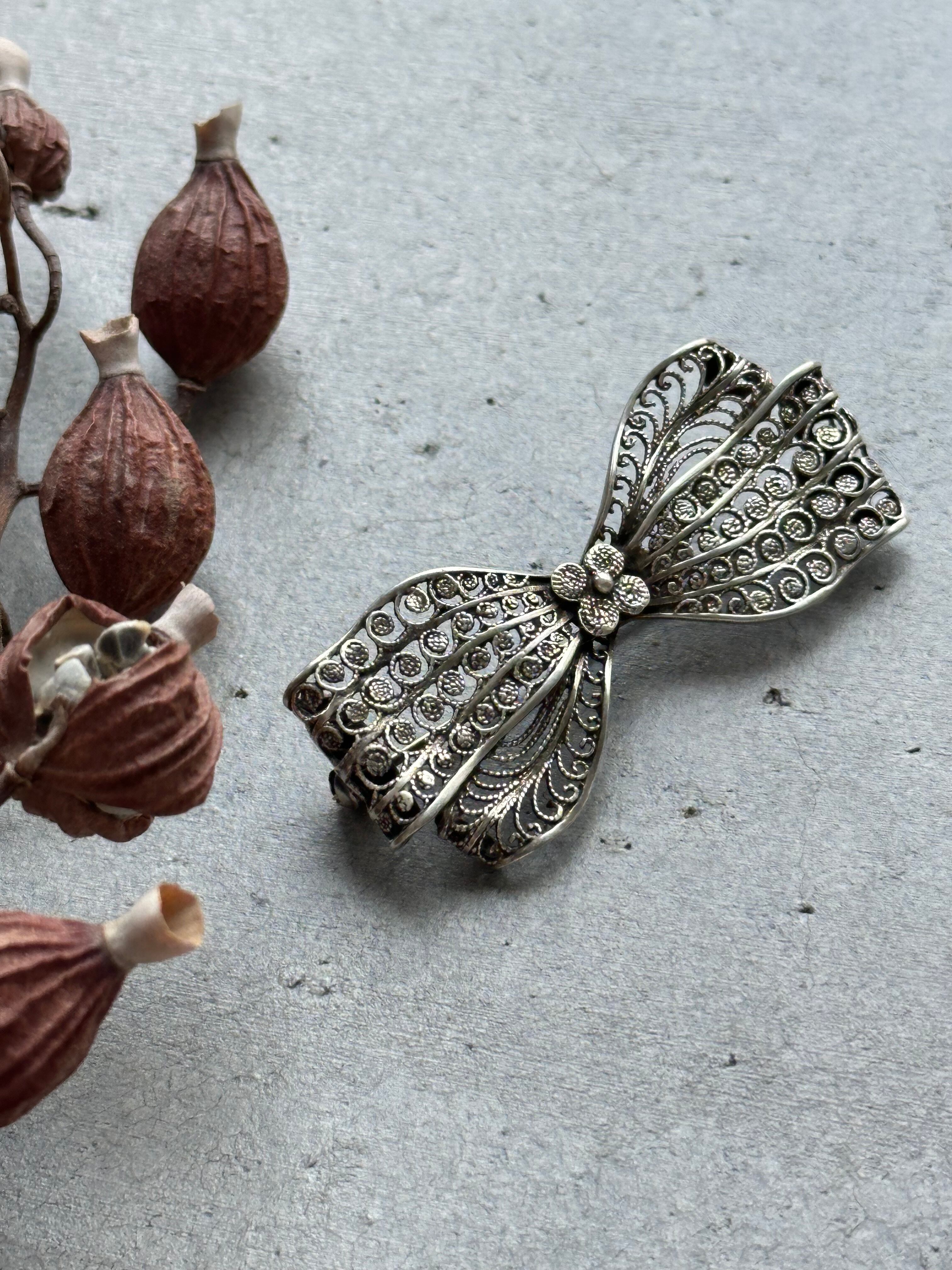シルバーブローチ リボンブローチ フィリグリー / フランスアンティーク ヴィンテージ インテリア 雑貨