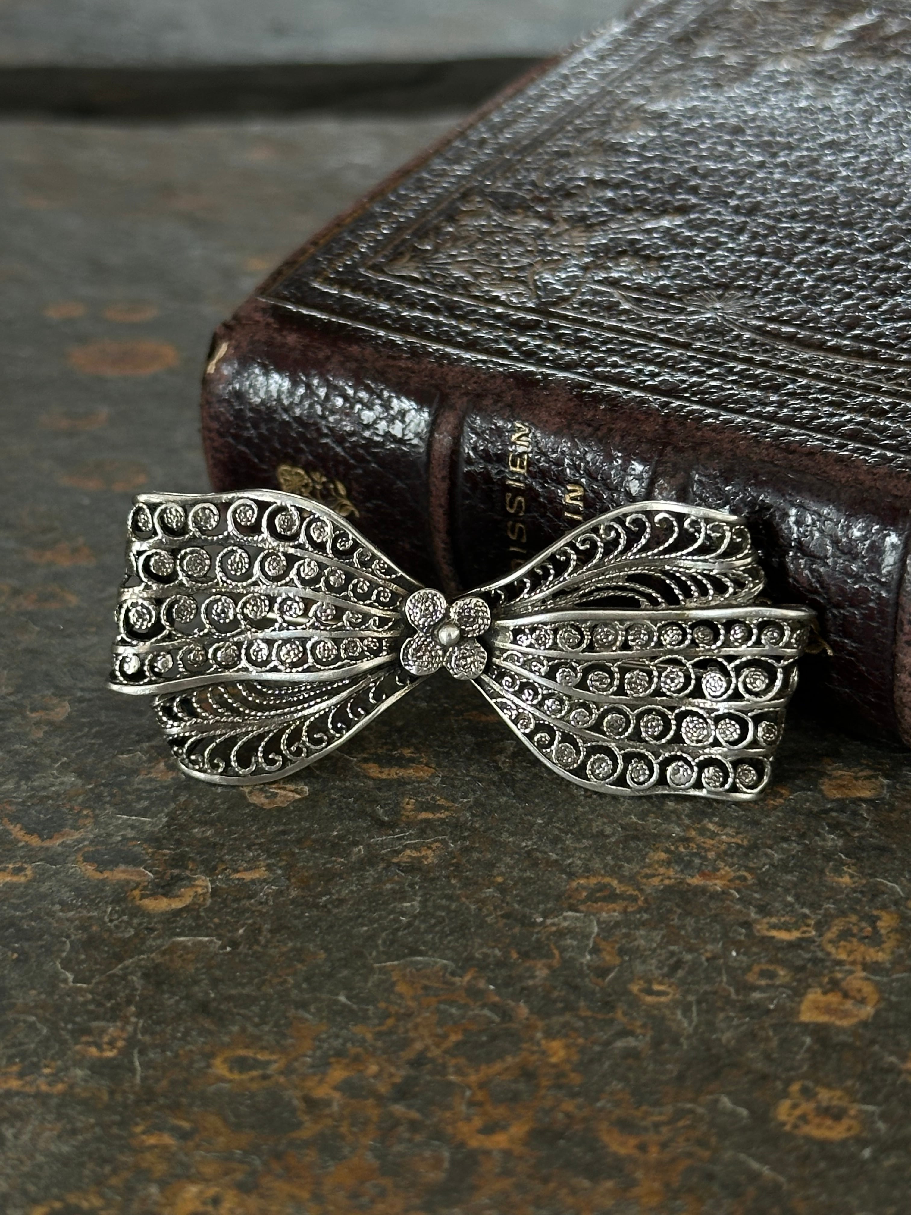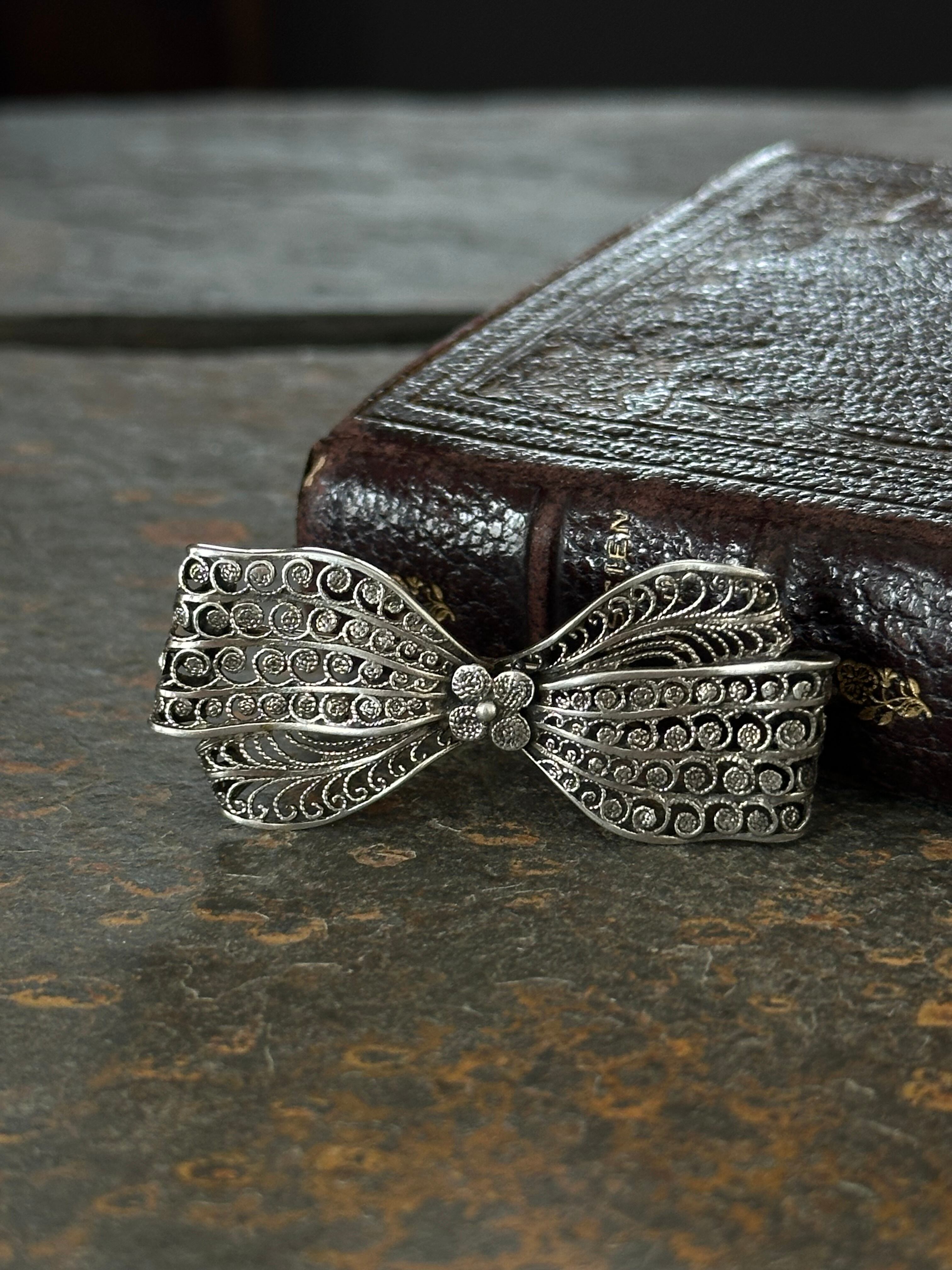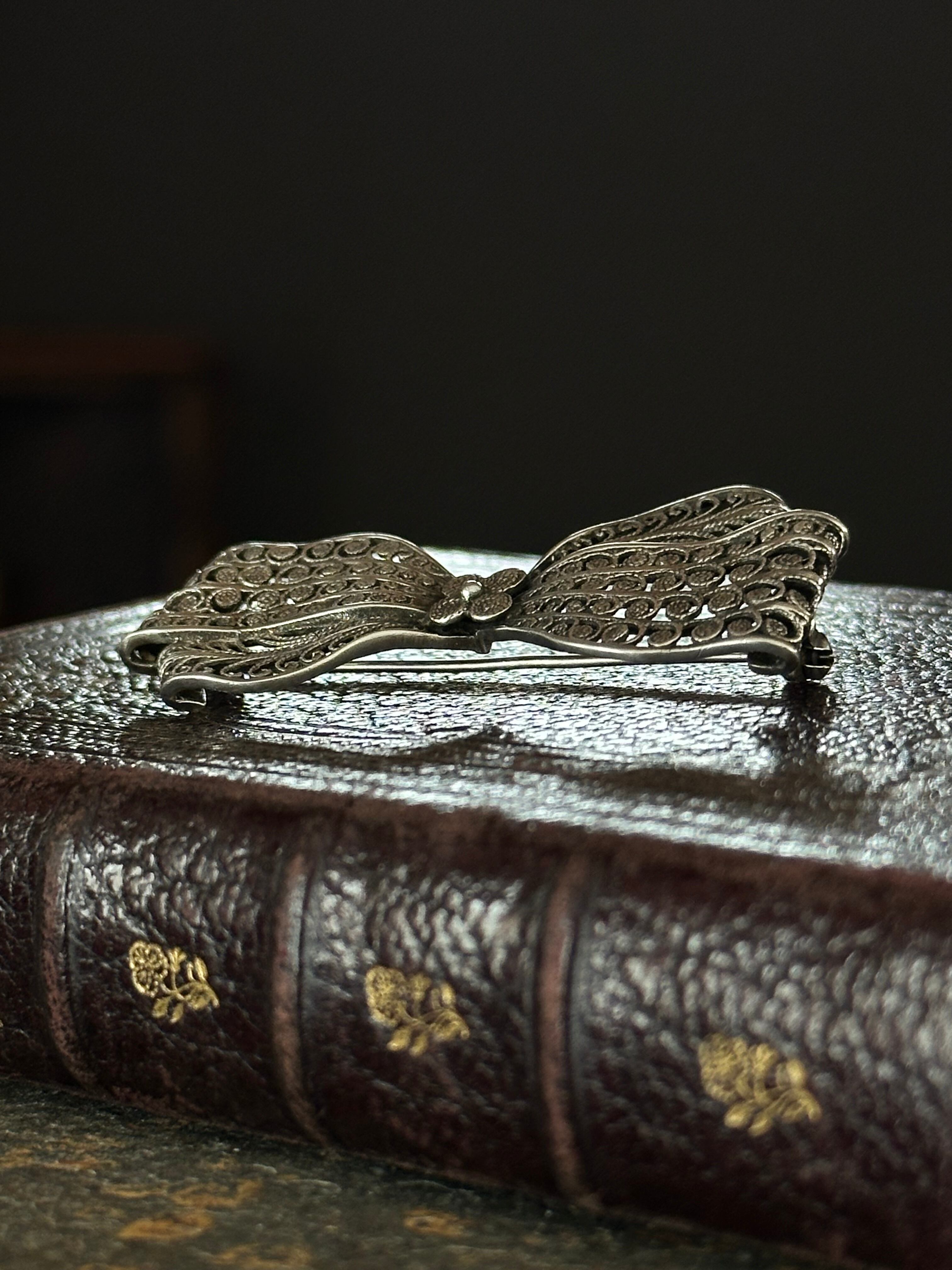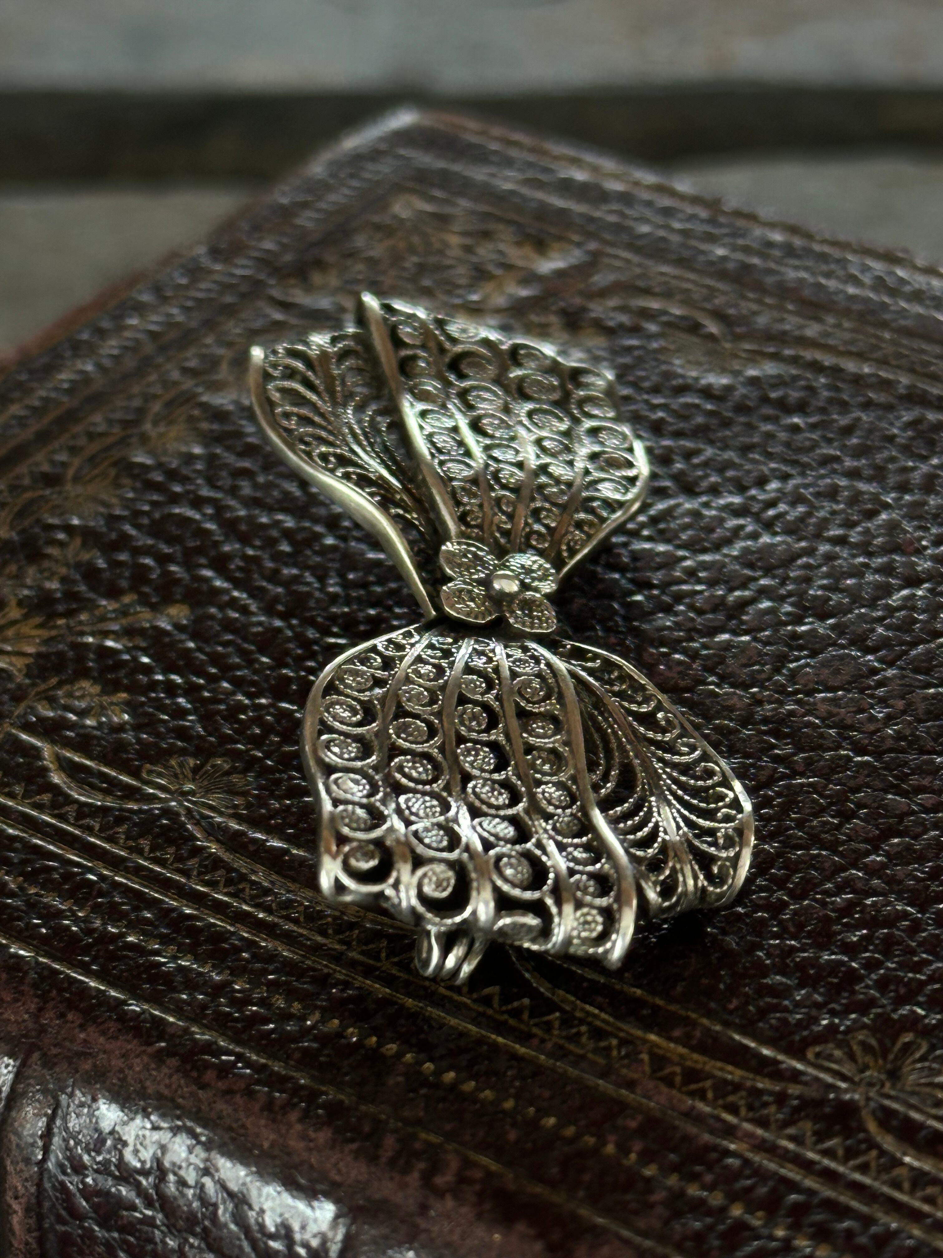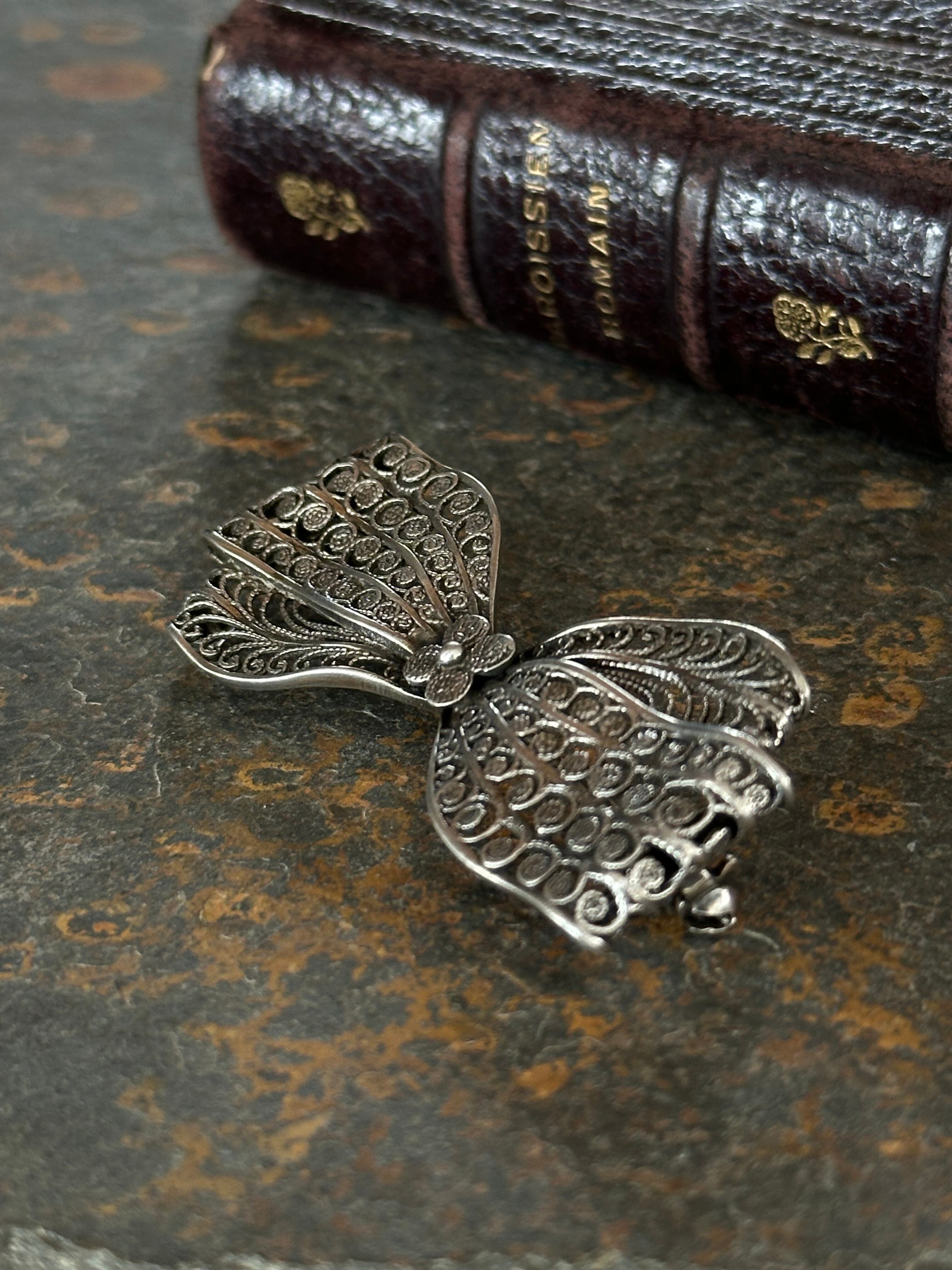 シルバーブローチ リボンブローチ フィリグリー / フランスアンティーク ヴィンテージ インテリア 雑貨