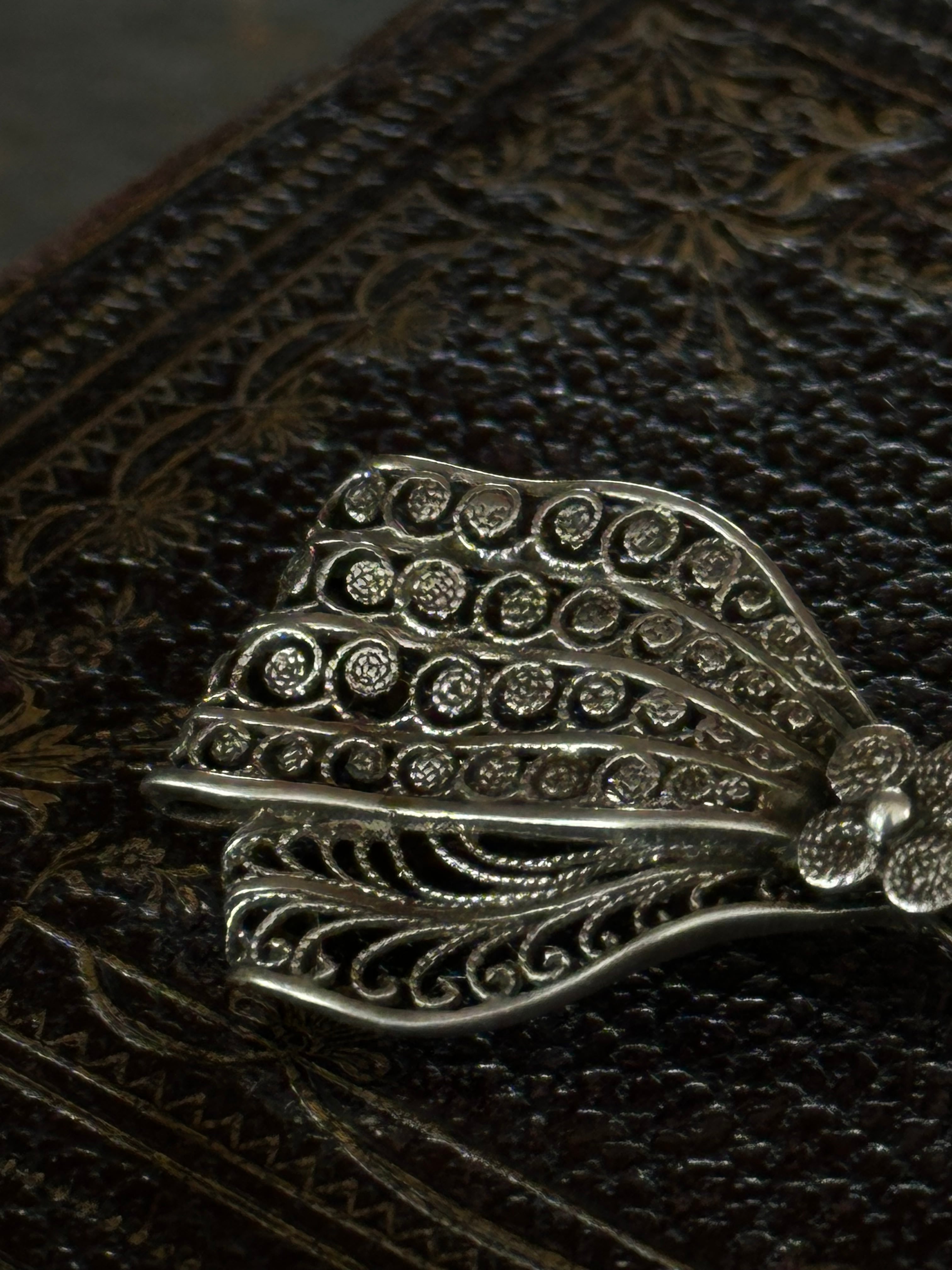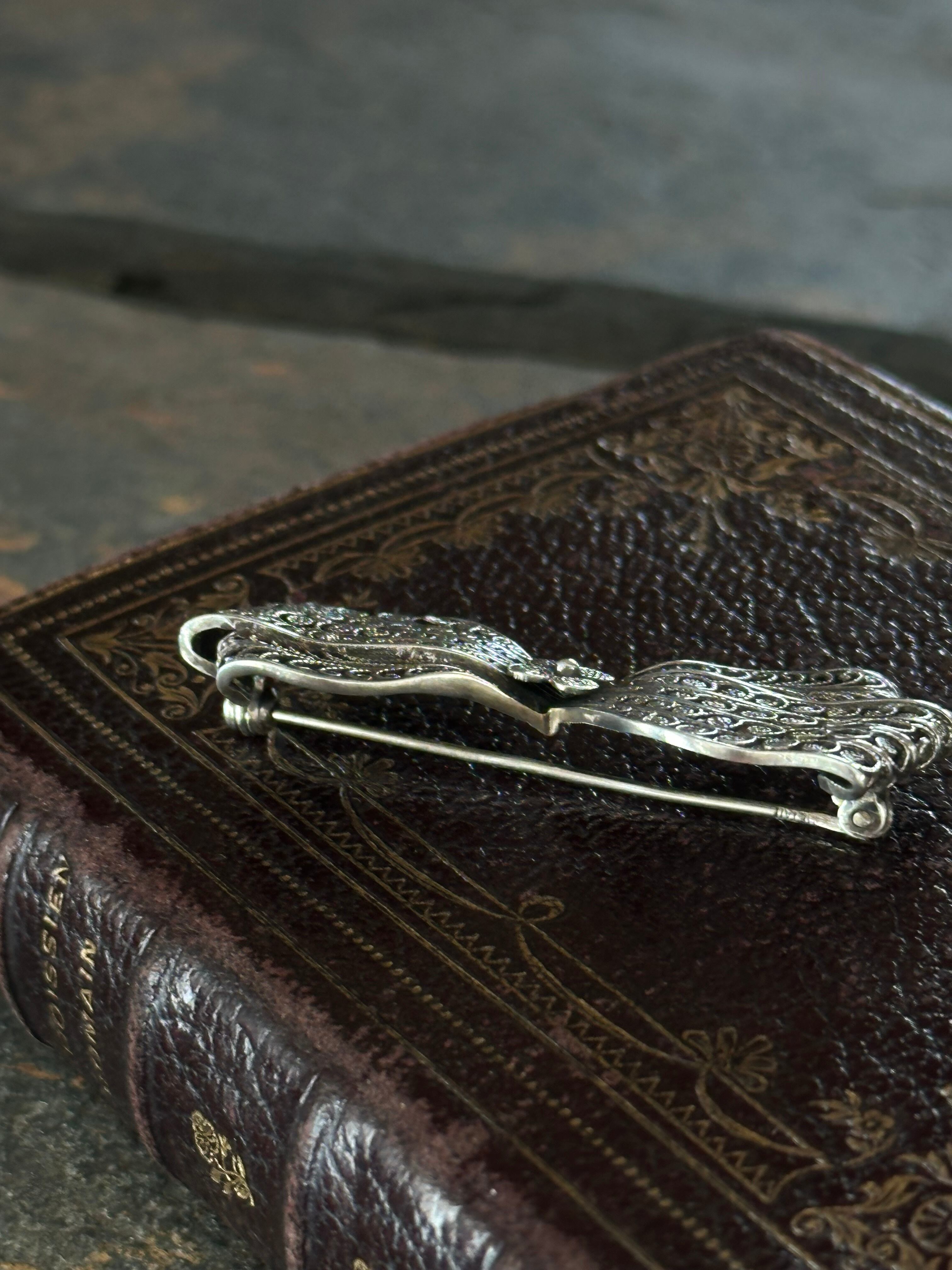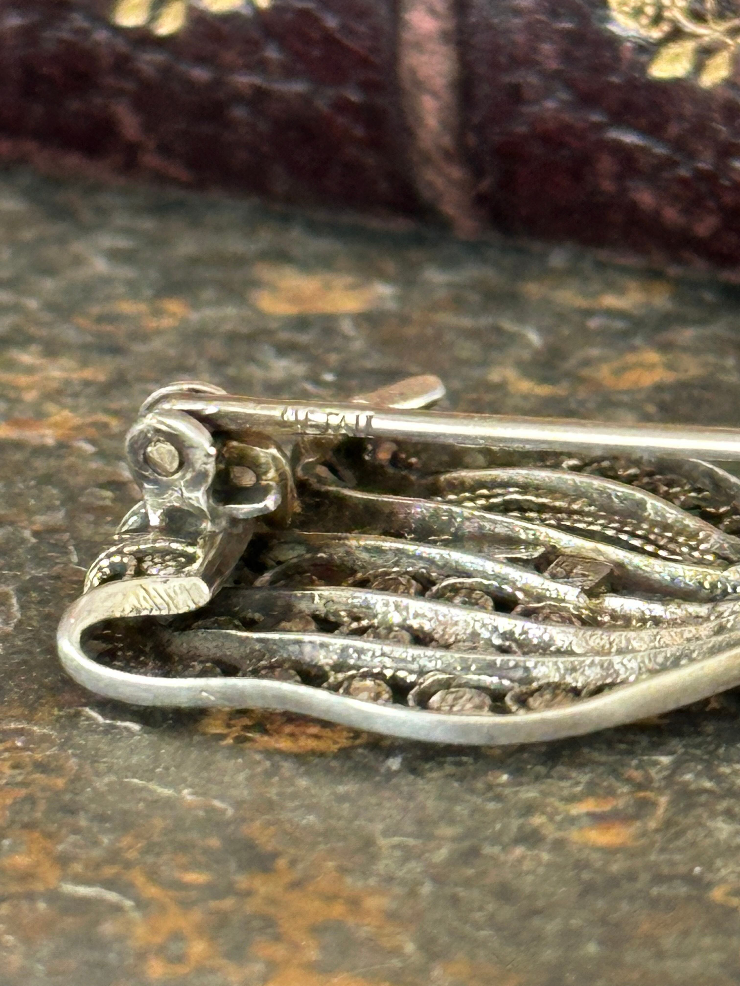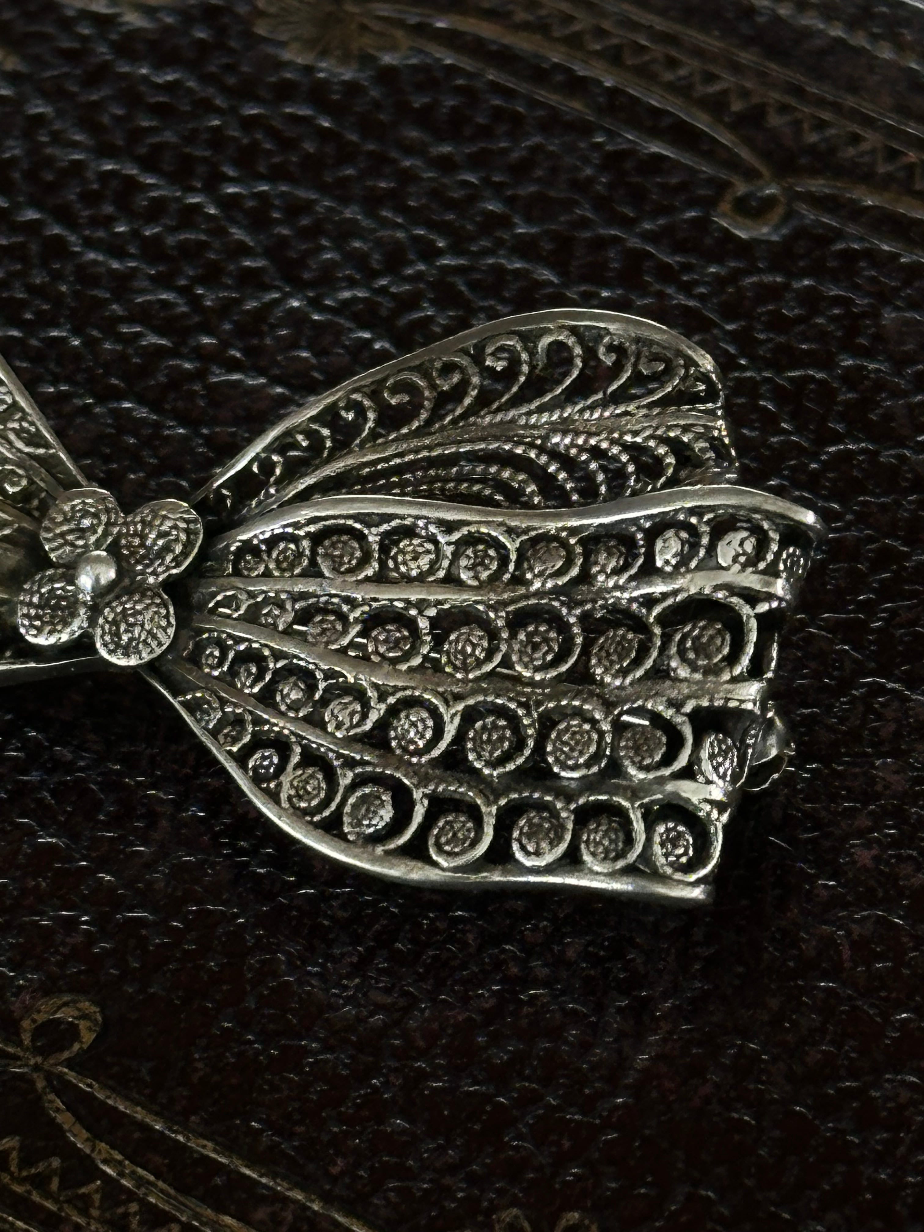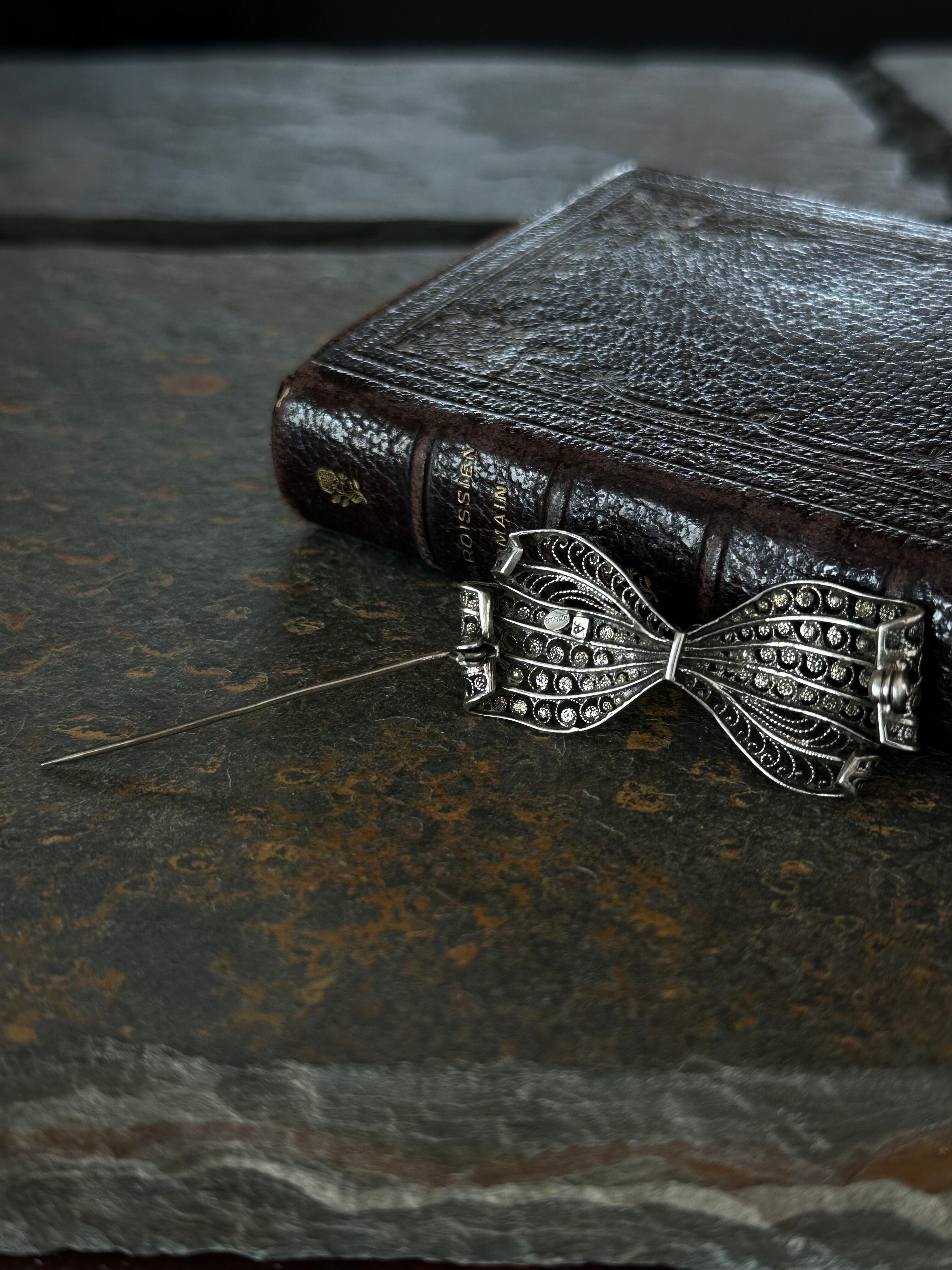 シルバーブローチ リボンブローチ フィリグリー / フランスアンティーク ヴィンテージ インテリア 雑貨