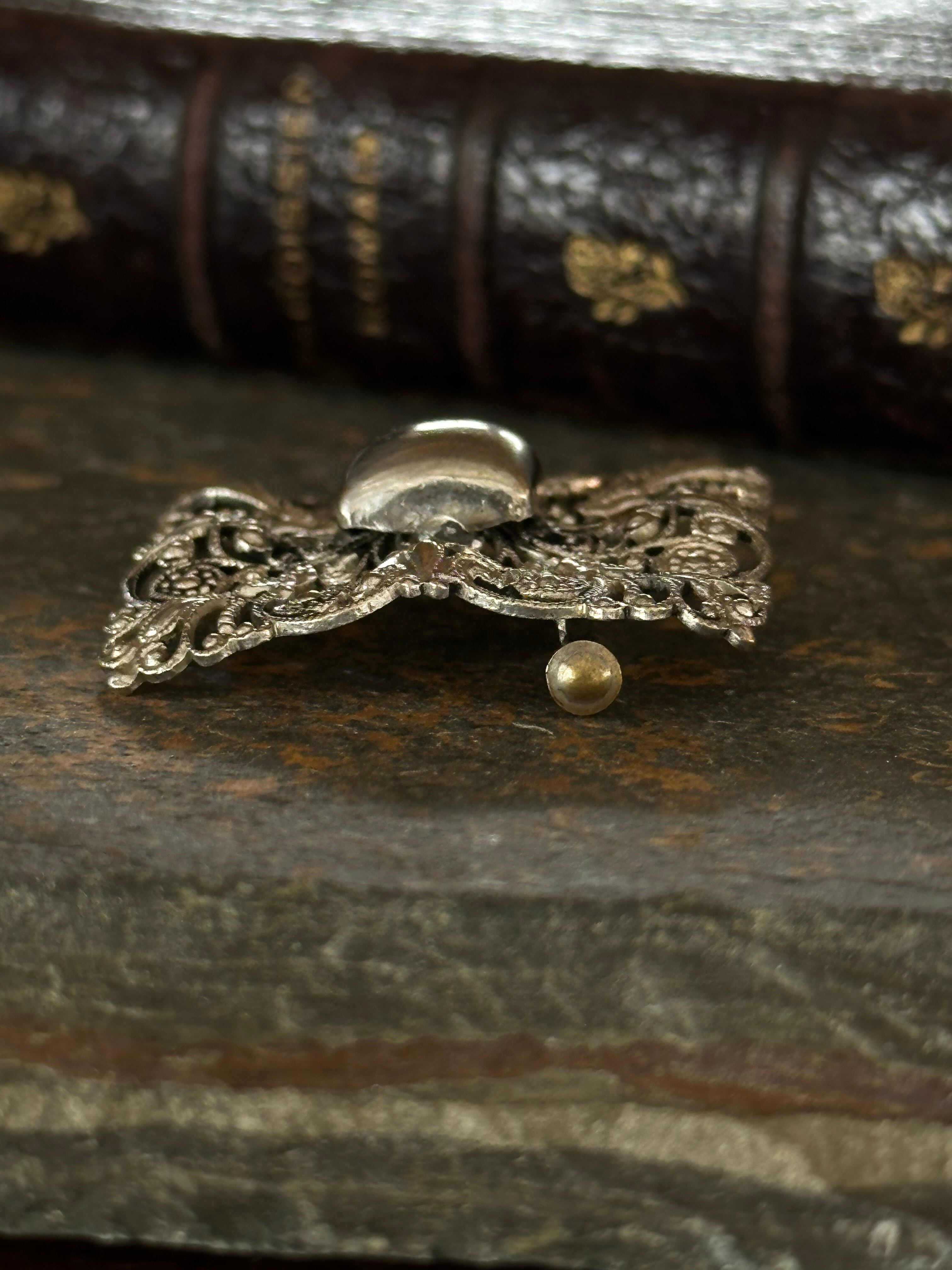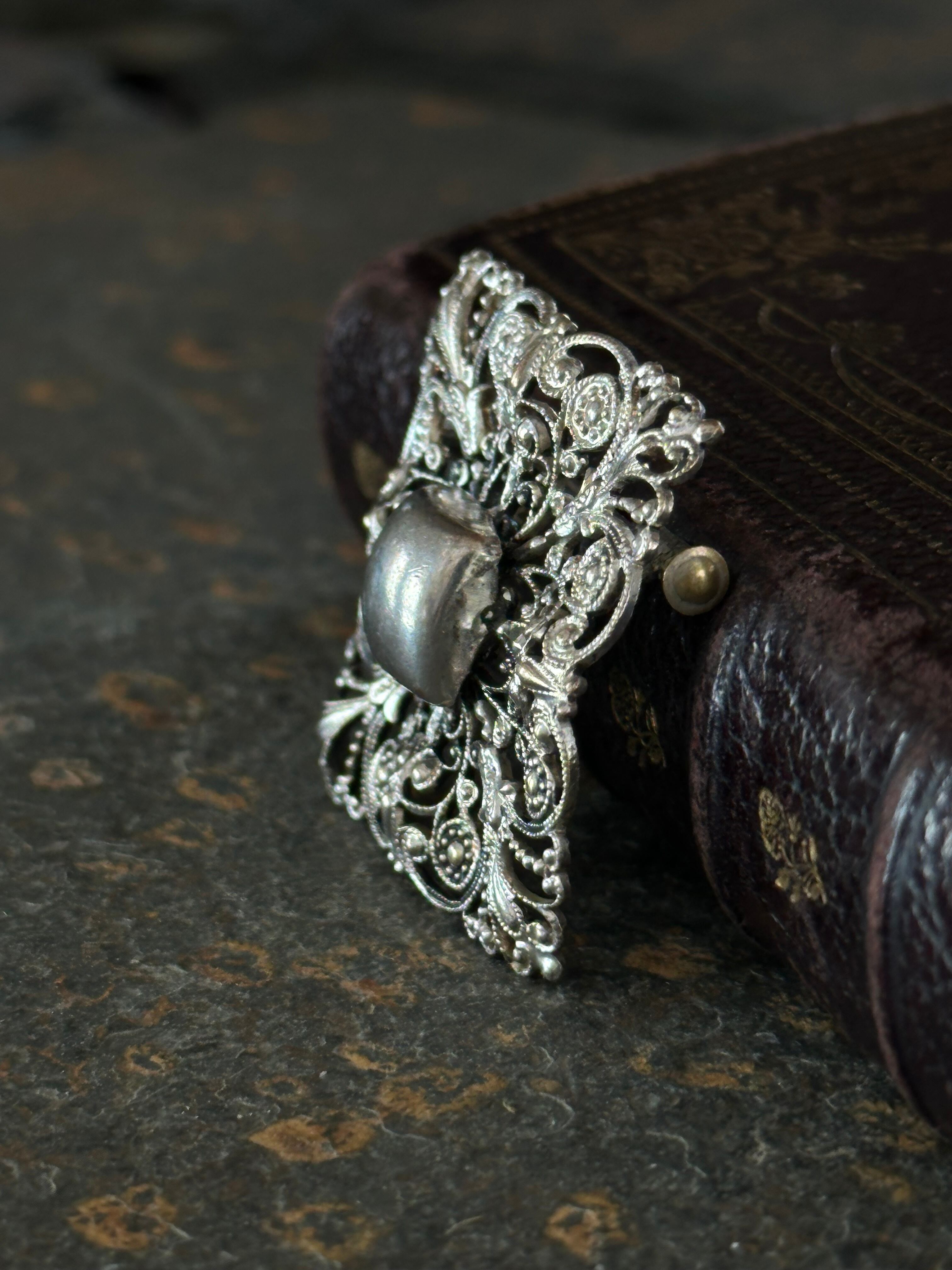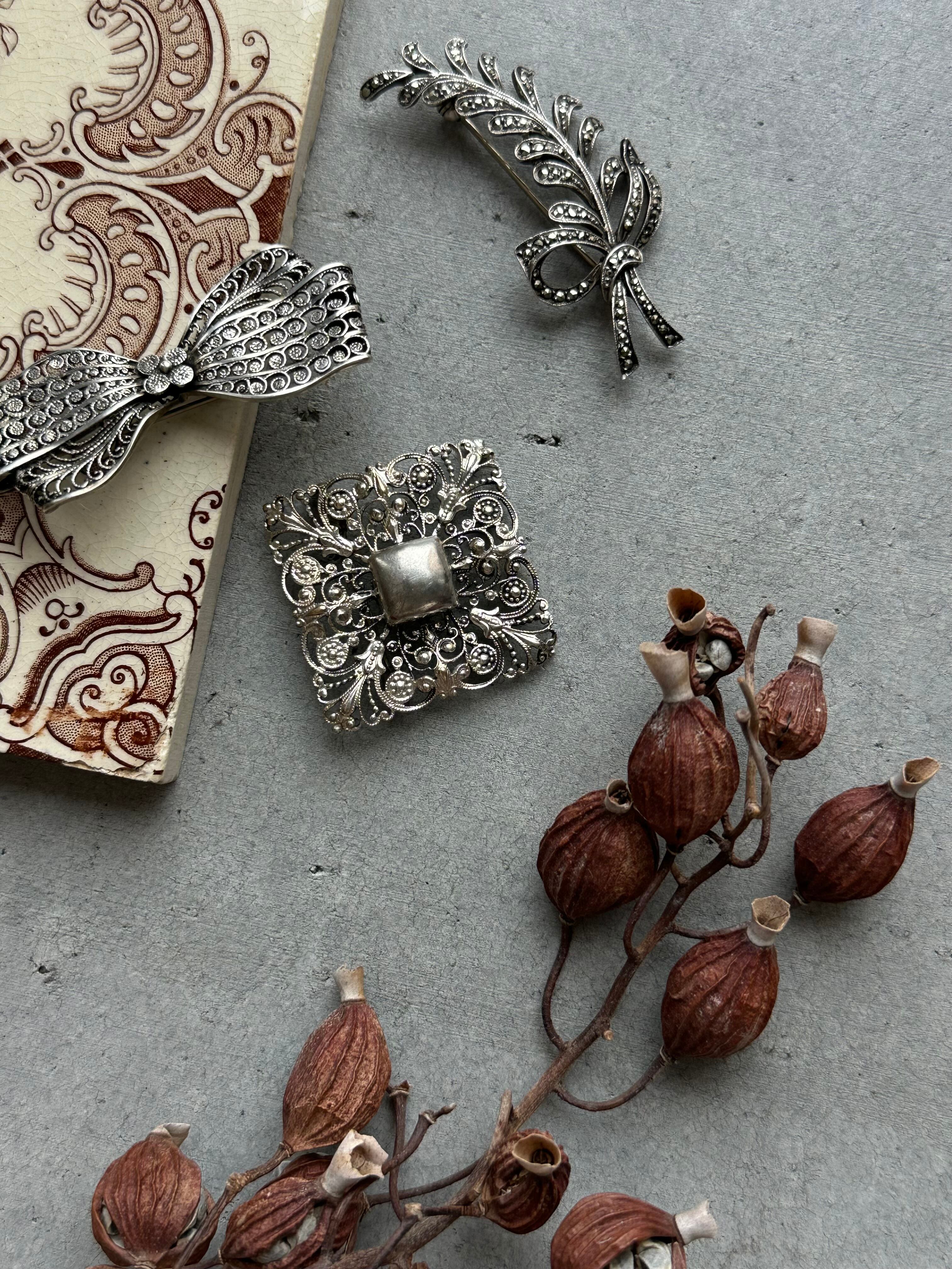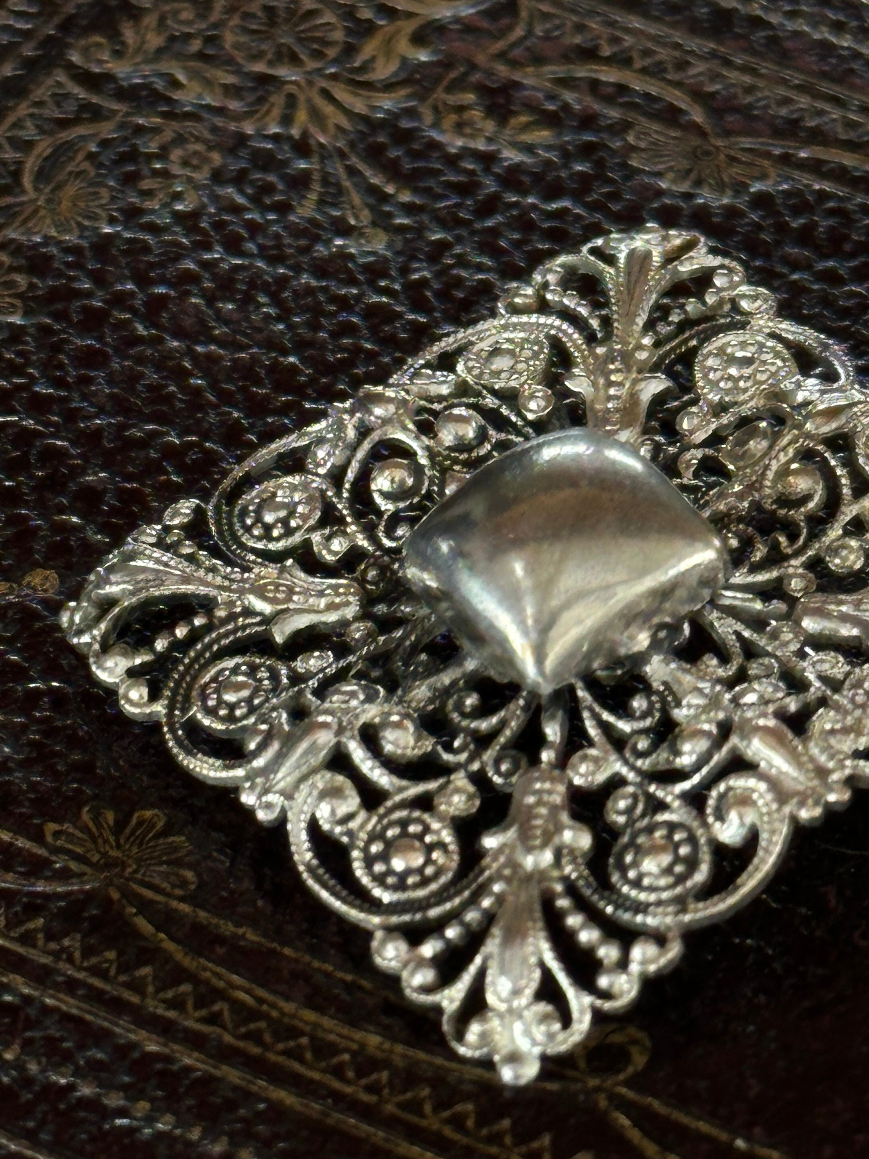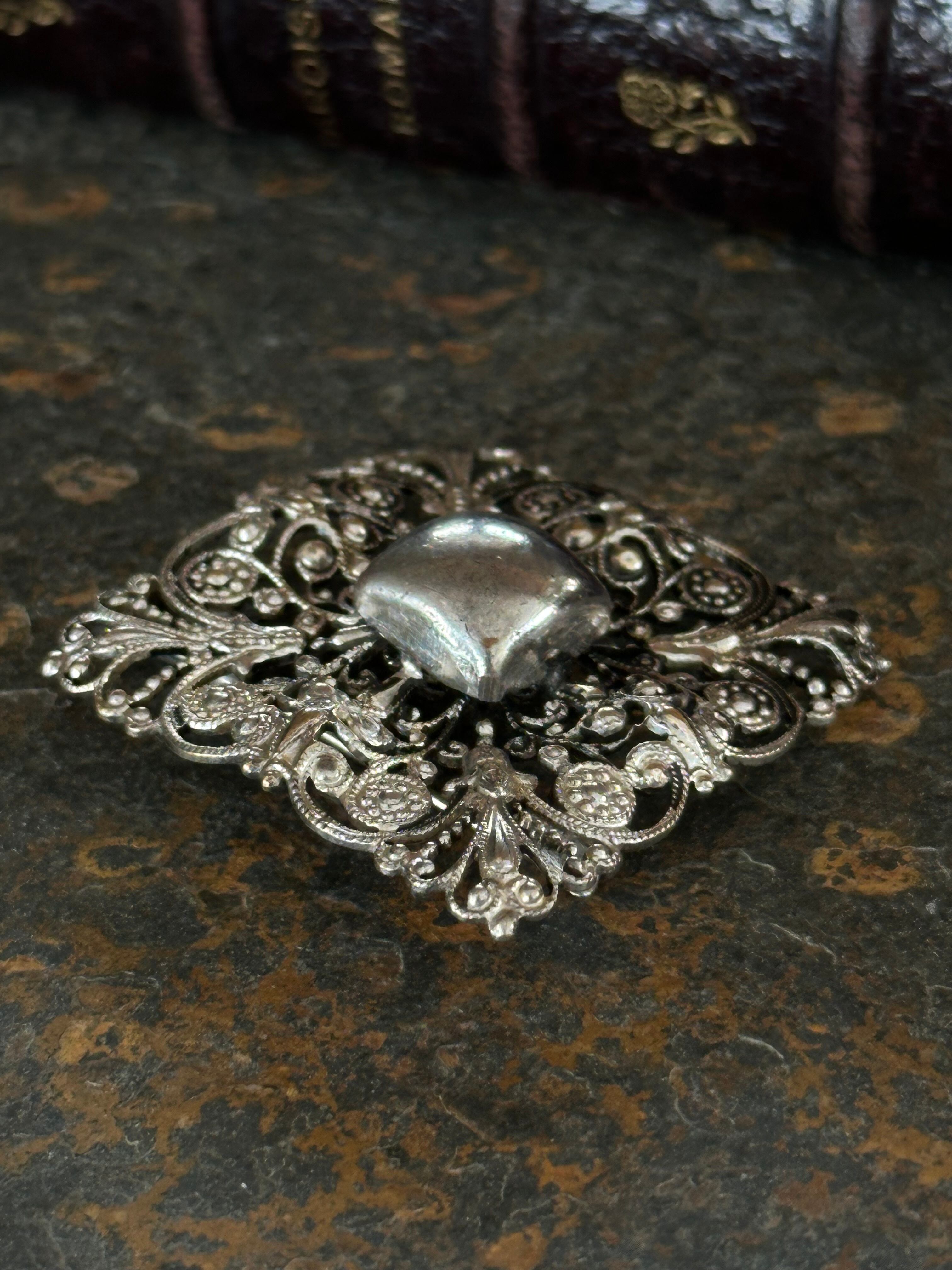 シルバーブローチ スクエアブローチ 透かし装飾 / フランスアンティーク ヴィンテージ アクセサリー 雑貨