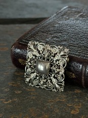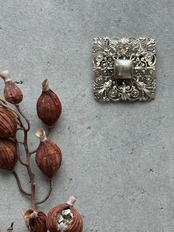 透かしの装飾が繊細なスクエア型の小さなブローチです。