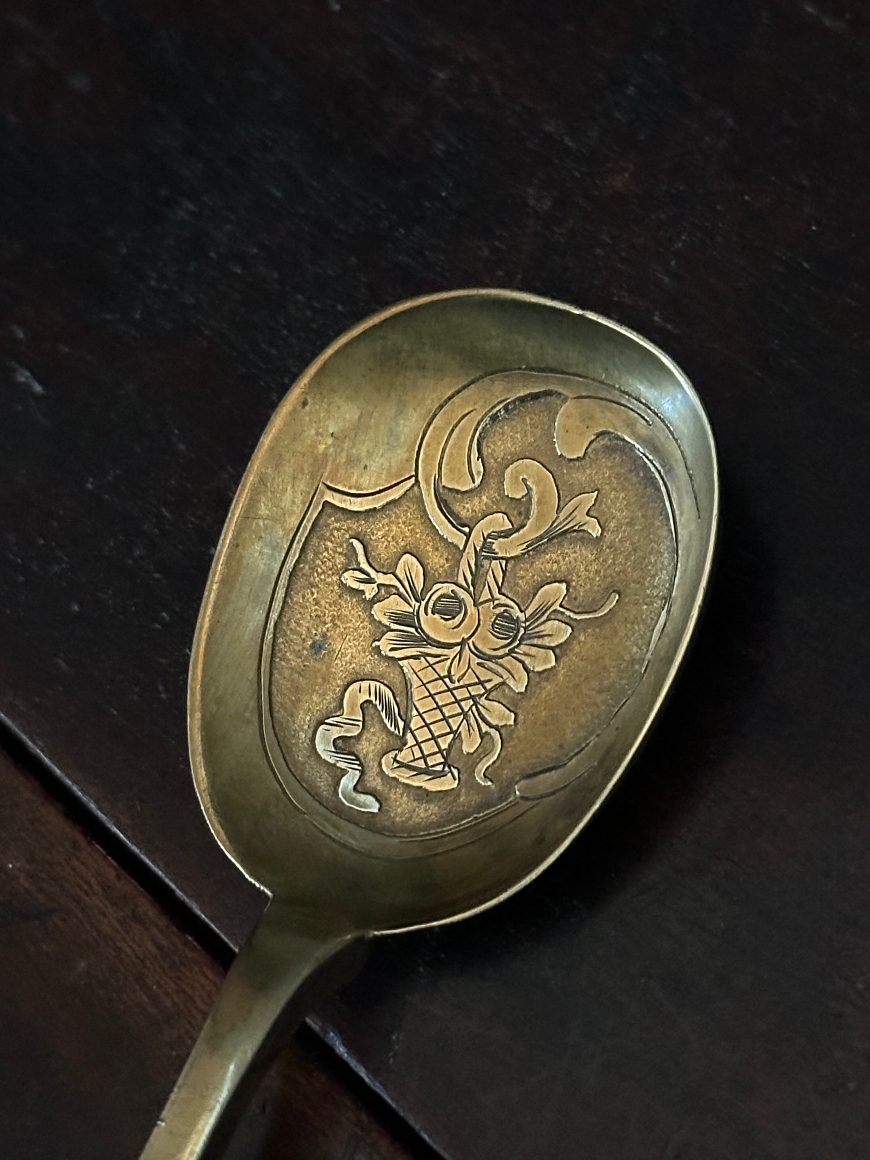 真鍮とシルバーのスプーン デザートスプーン / フランスアンティーク ヴィンテージ インテリア 雑貨