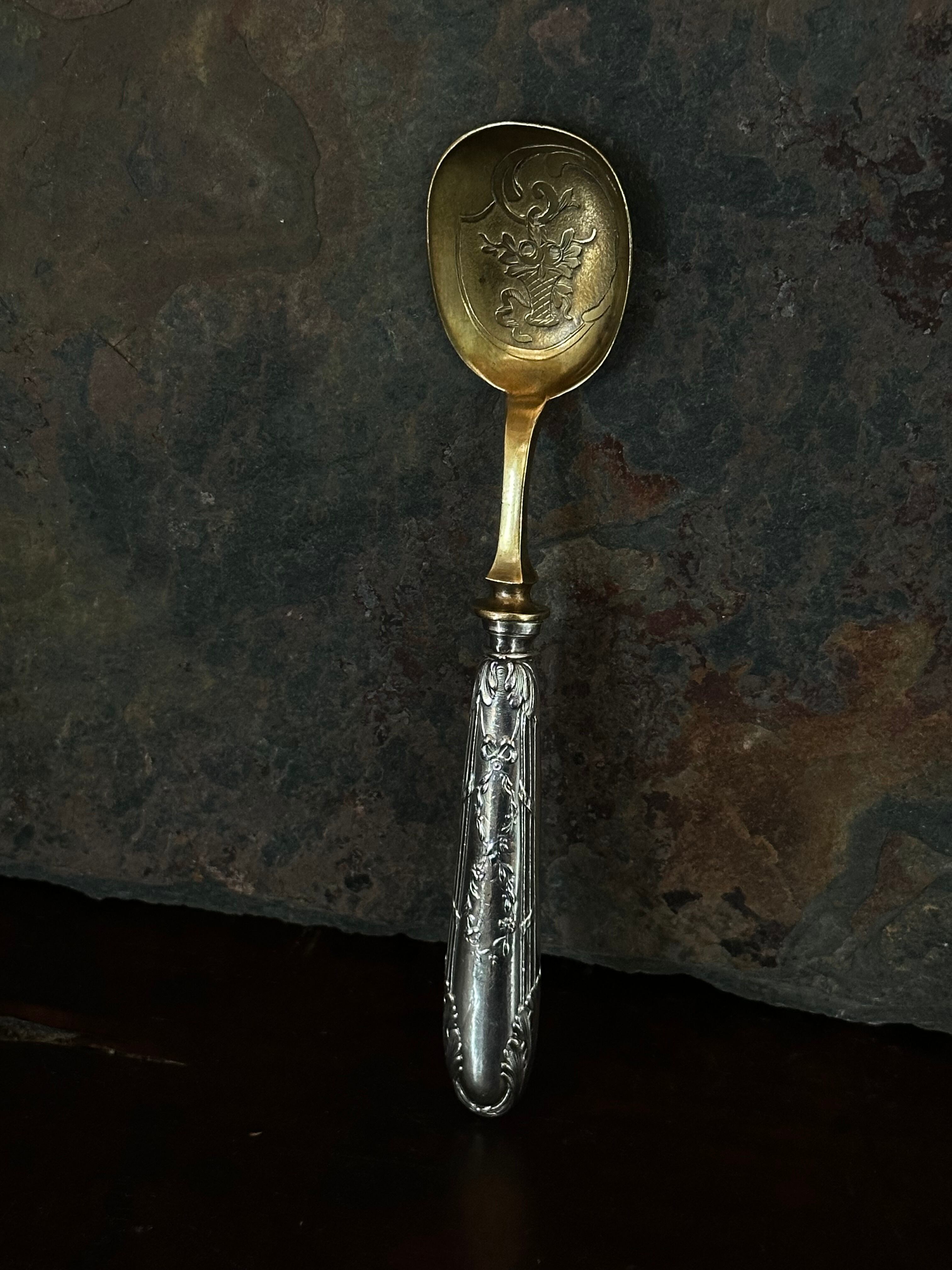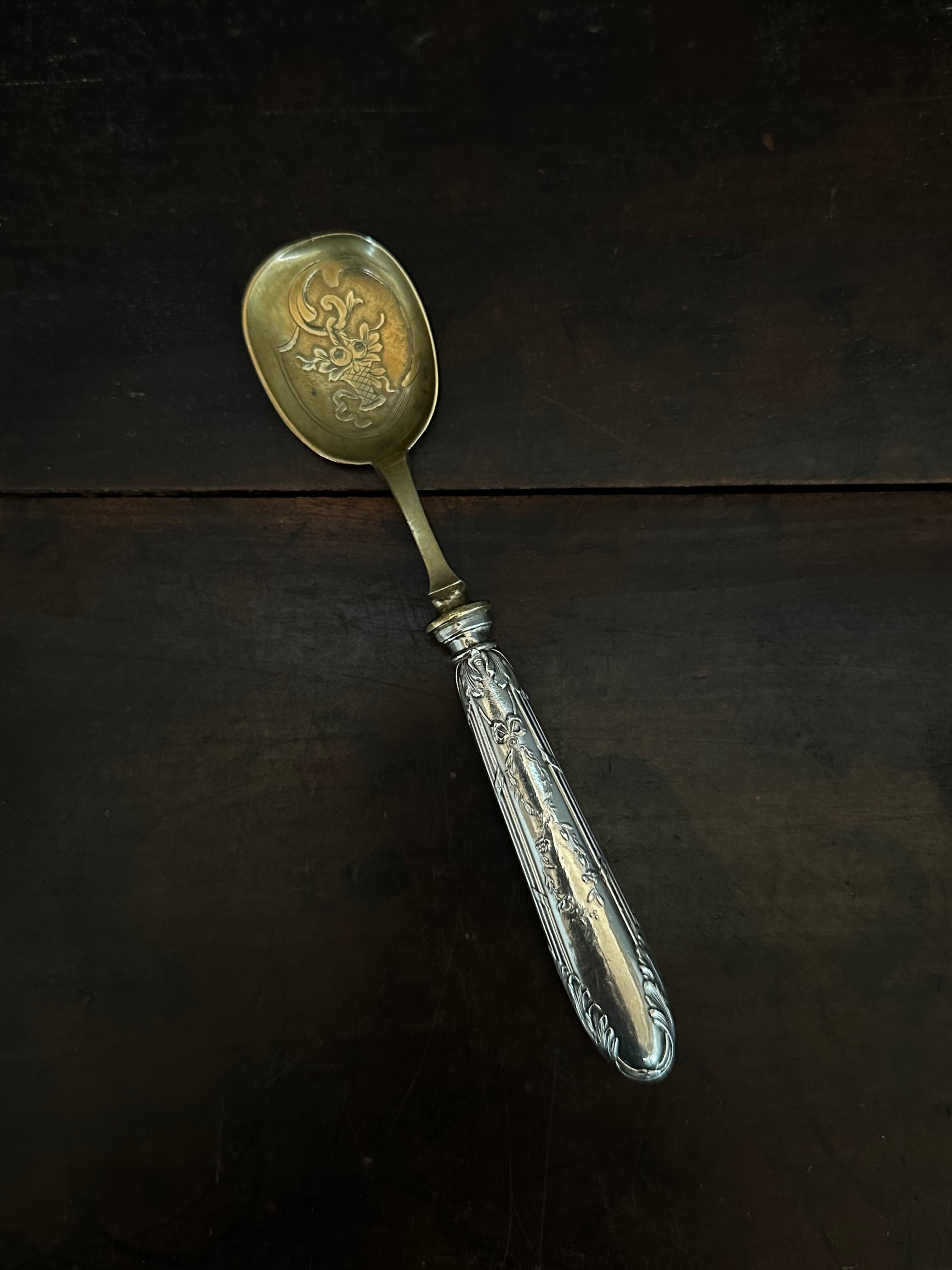 フランスの蚤の市で見つけたハンドルにシルバーの美しい輝きがあるスプーン。