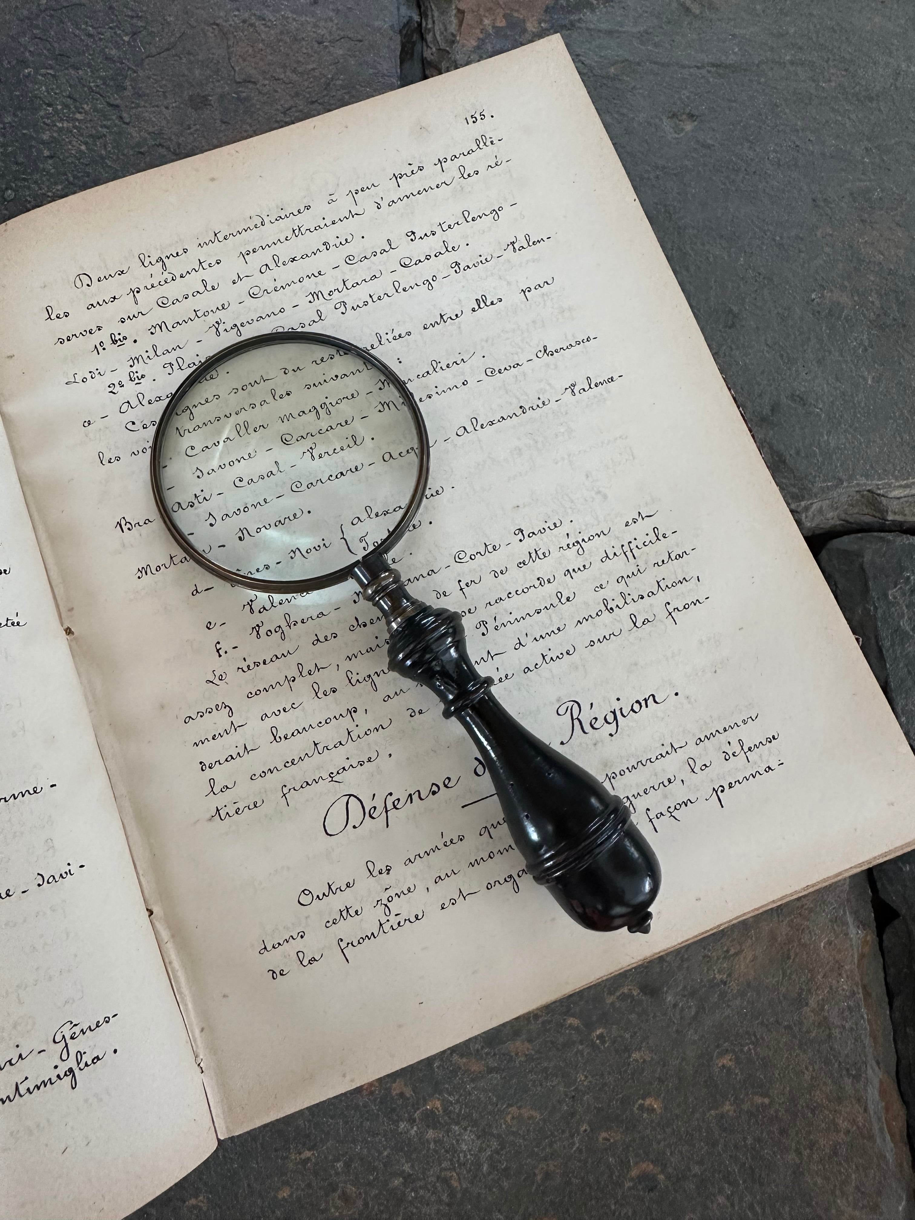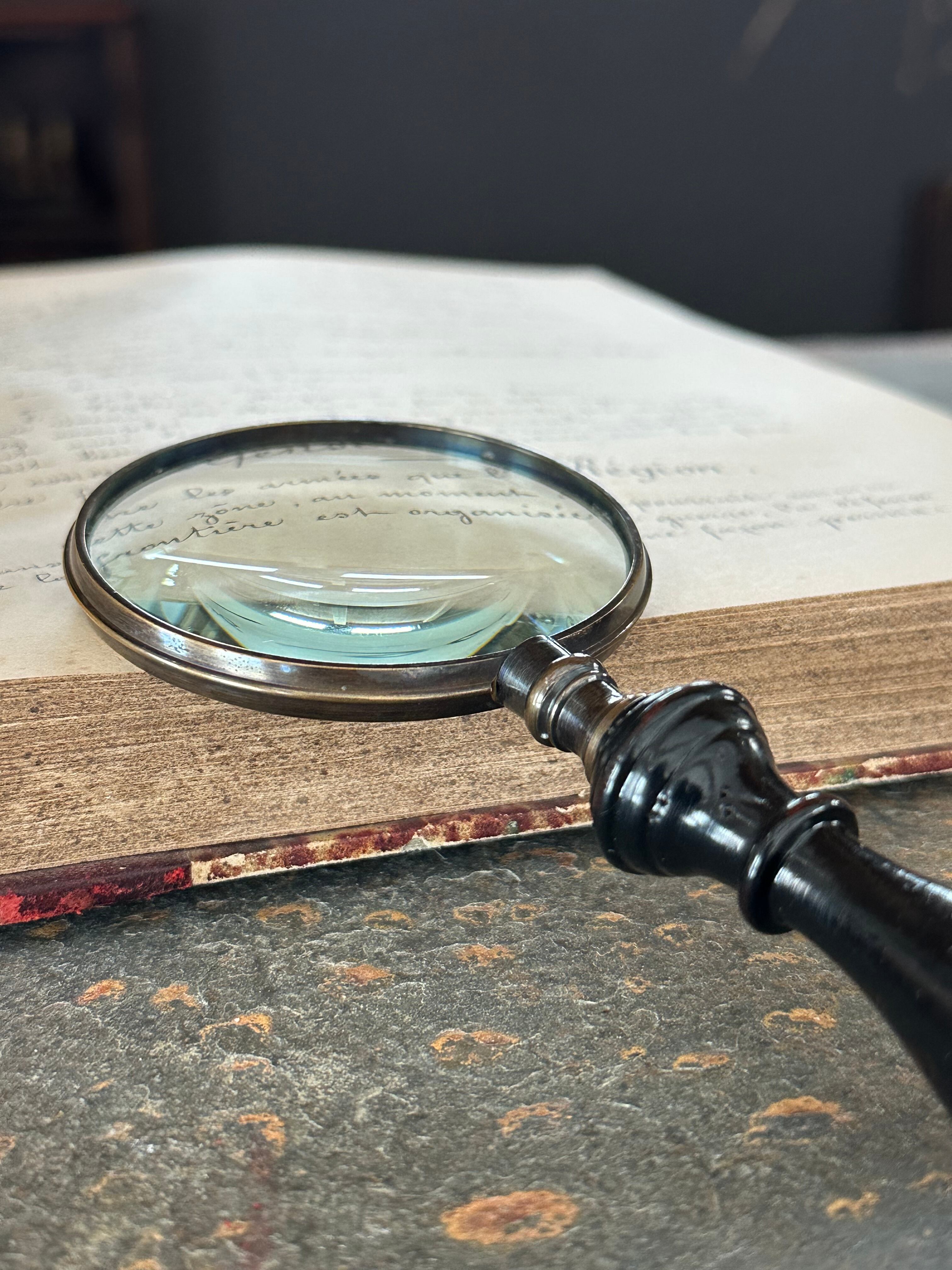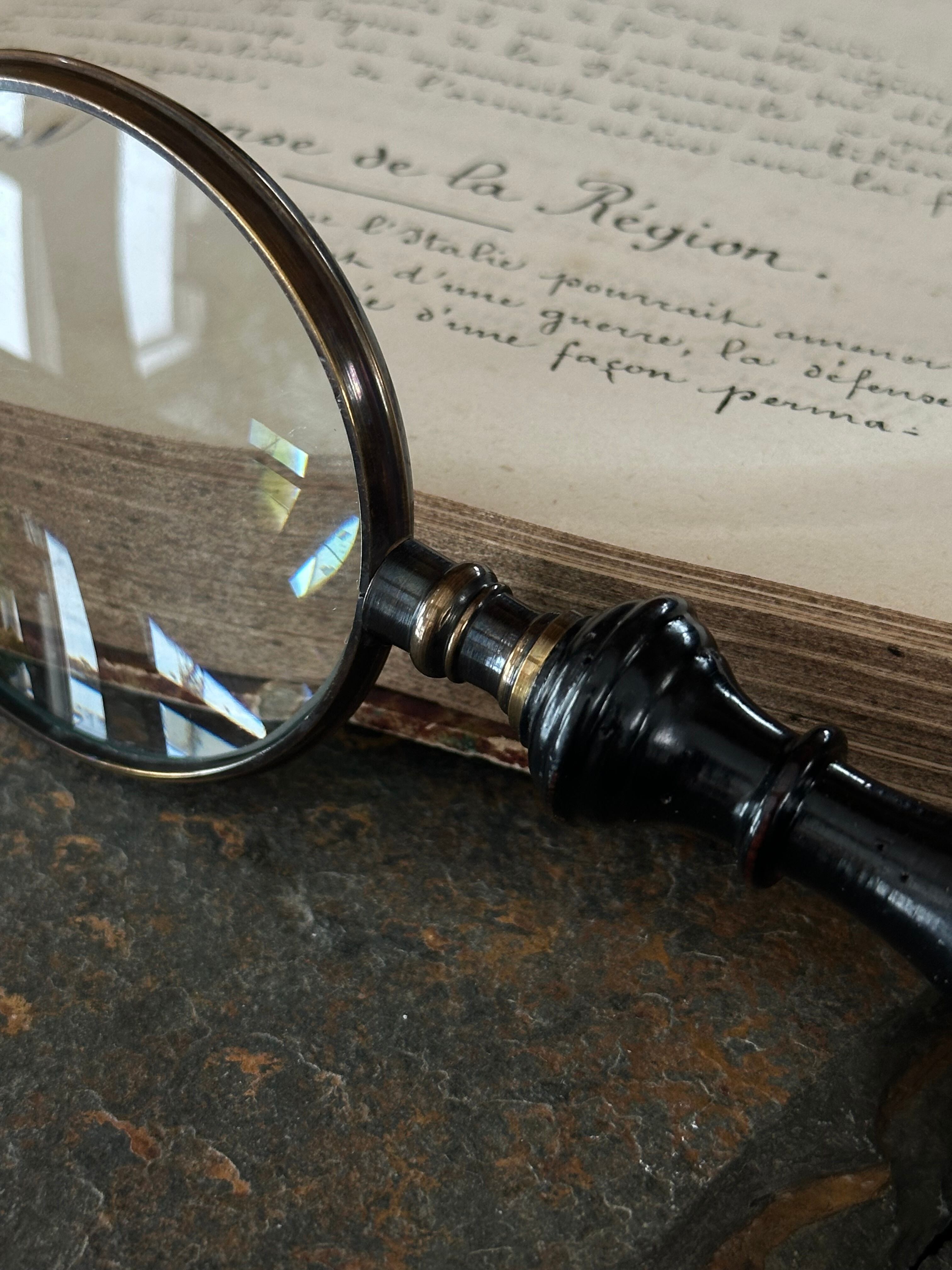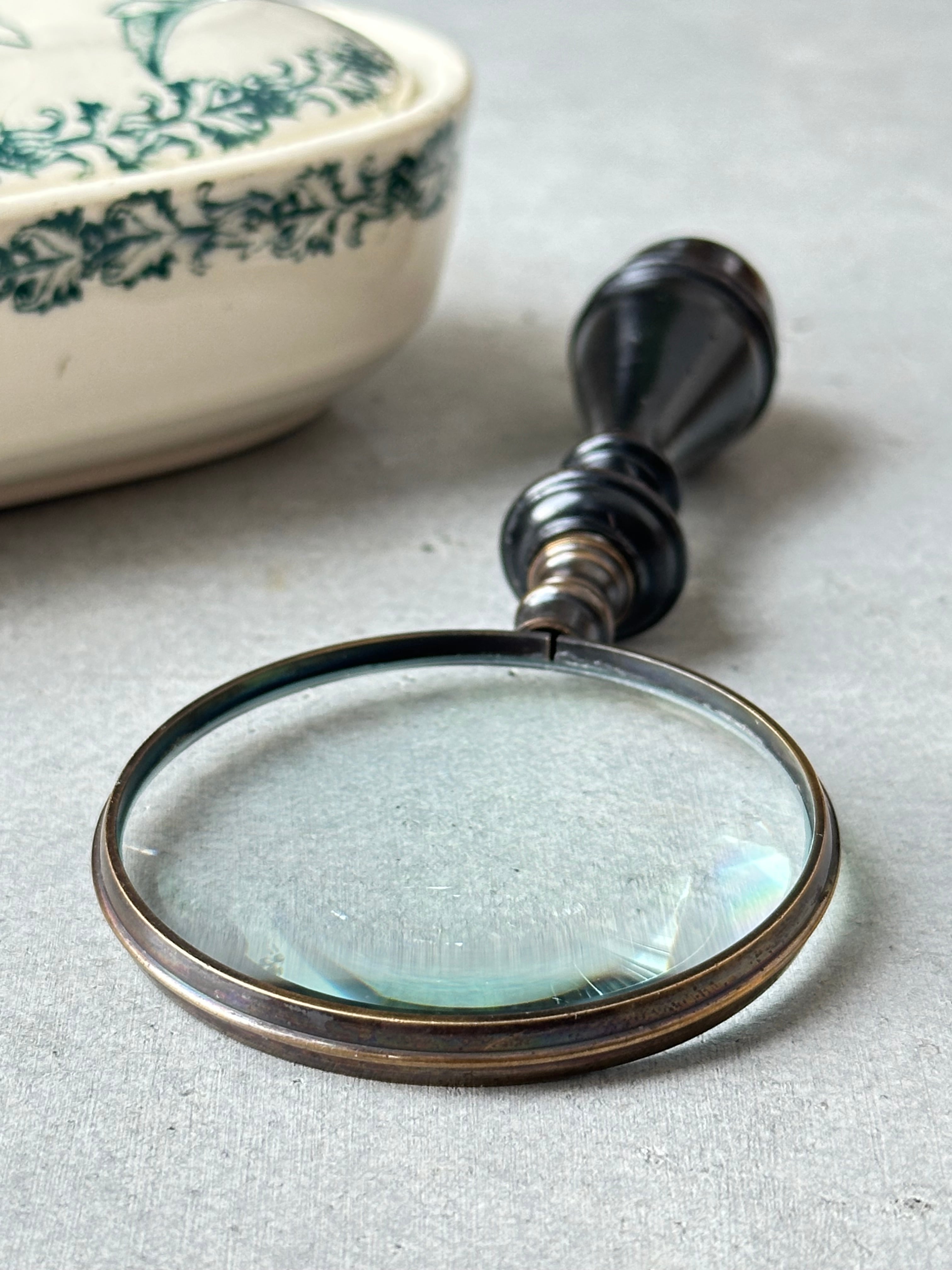 細かな文字や装飾を覗き込むための道具としてはもちろん、デスクや棚にそっと置いておくだけでも、空間に知的で落ち着いた雰囲気を添えてくれる一品。