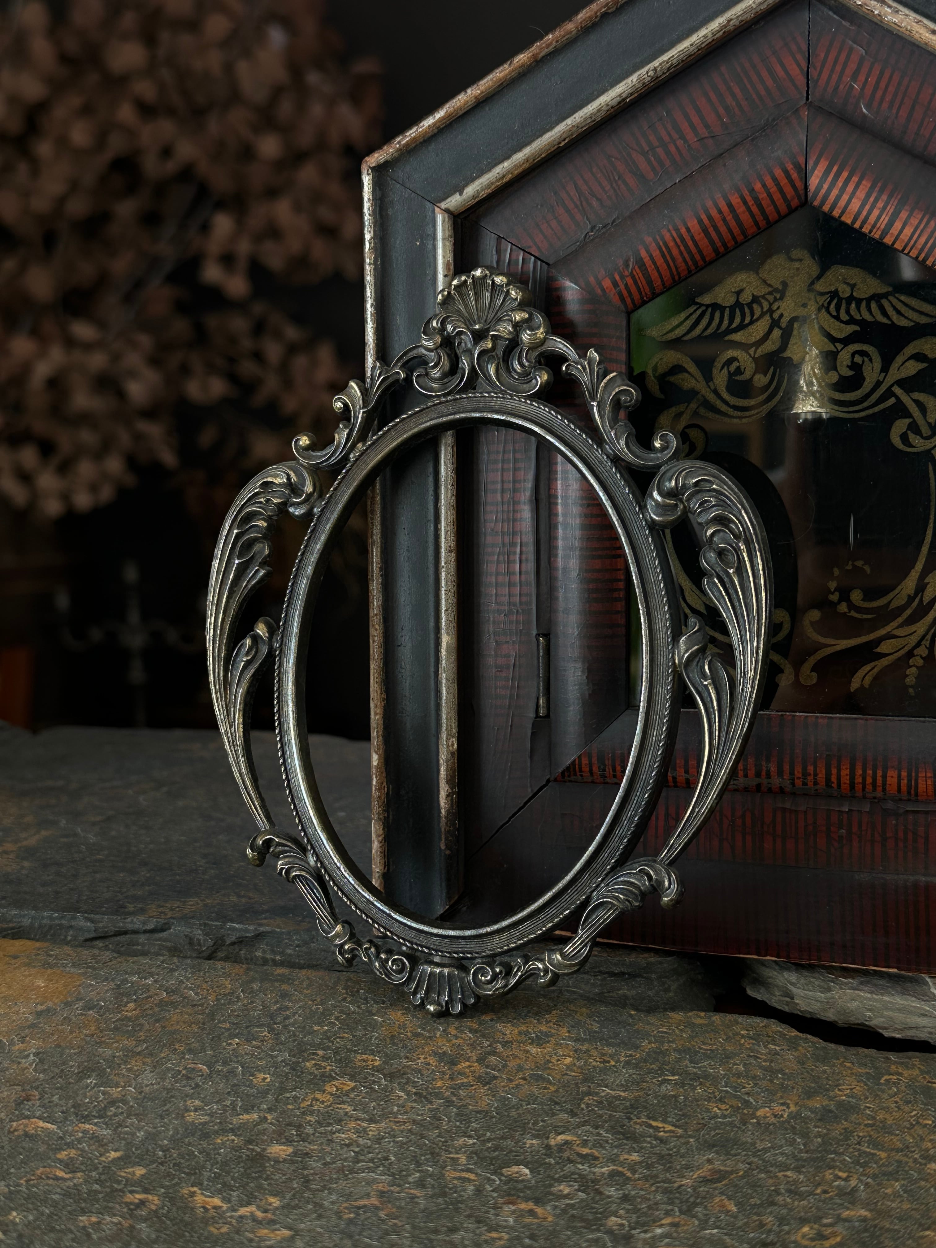 貝殻を思わせるロカイユ装飾と緩やかなカーブが美しいイタリア製のフォトフレーム。