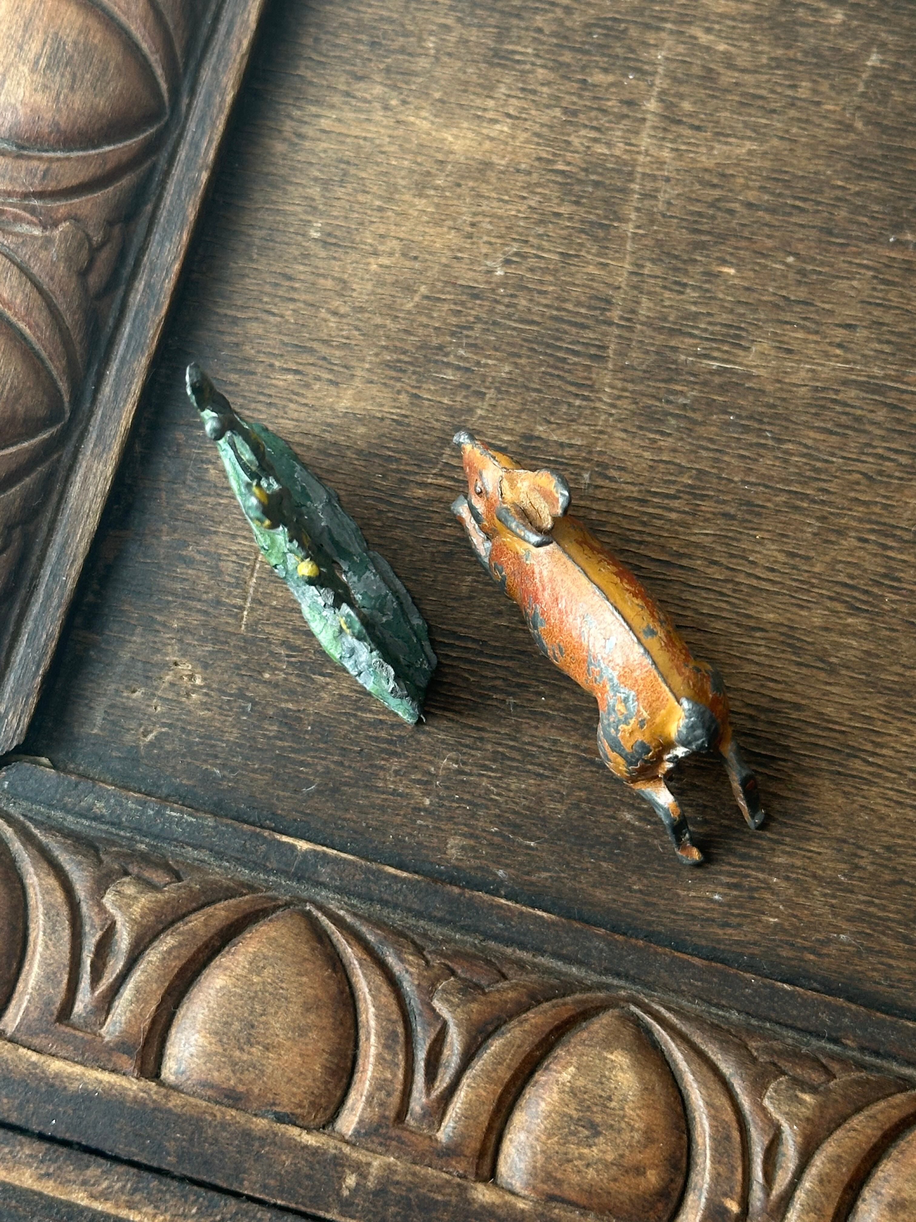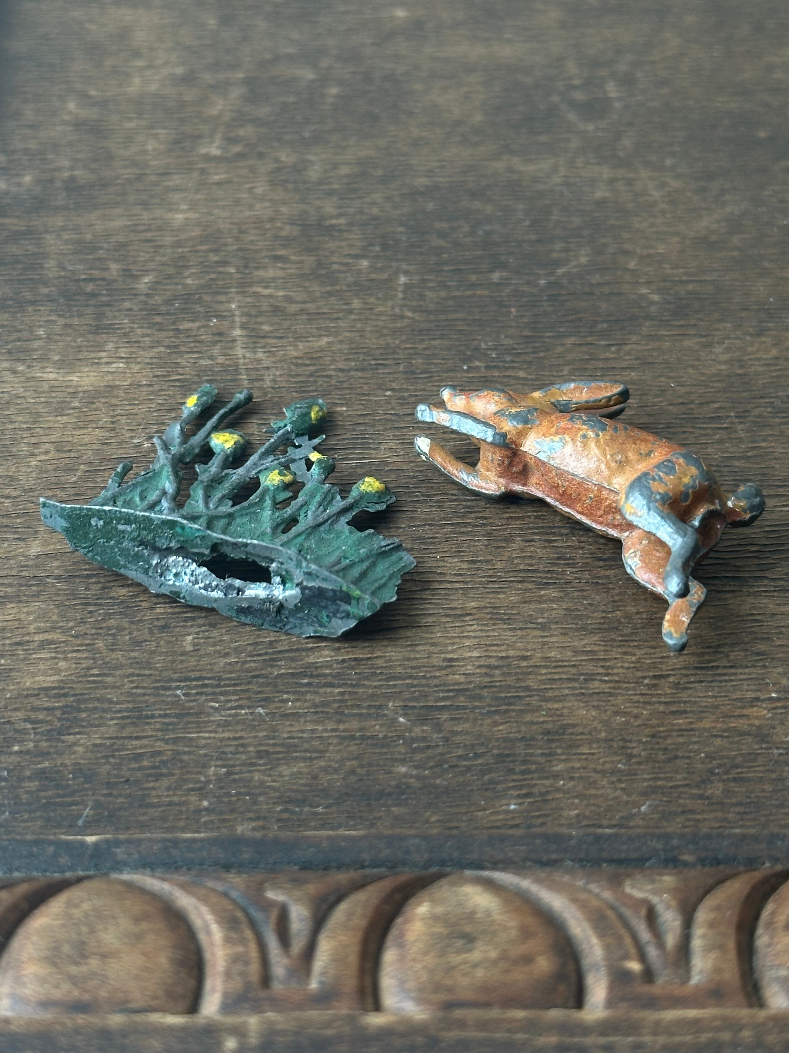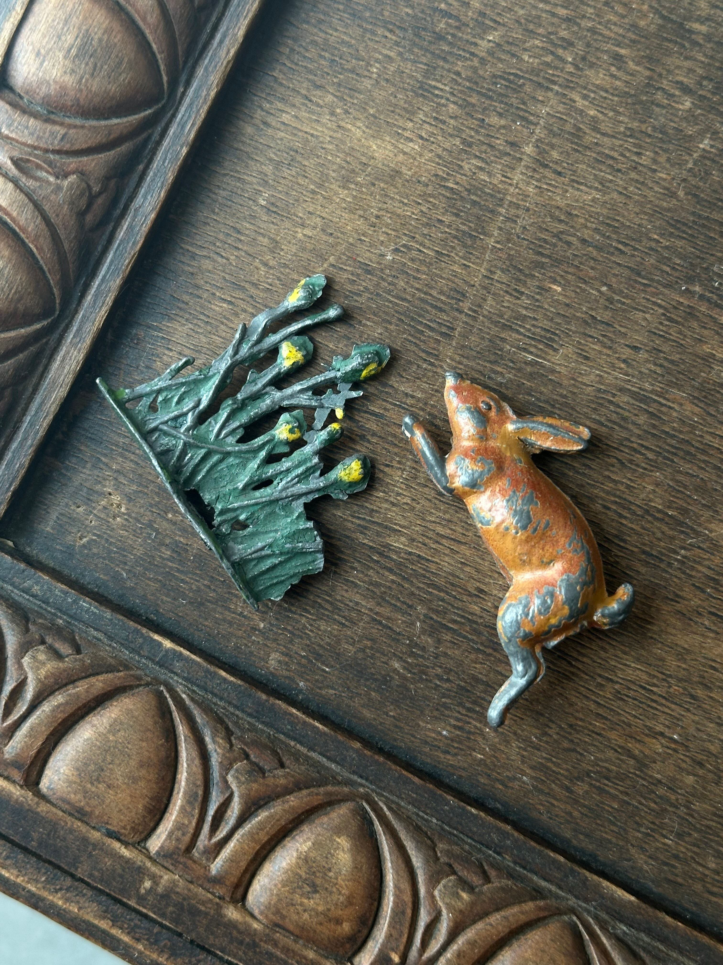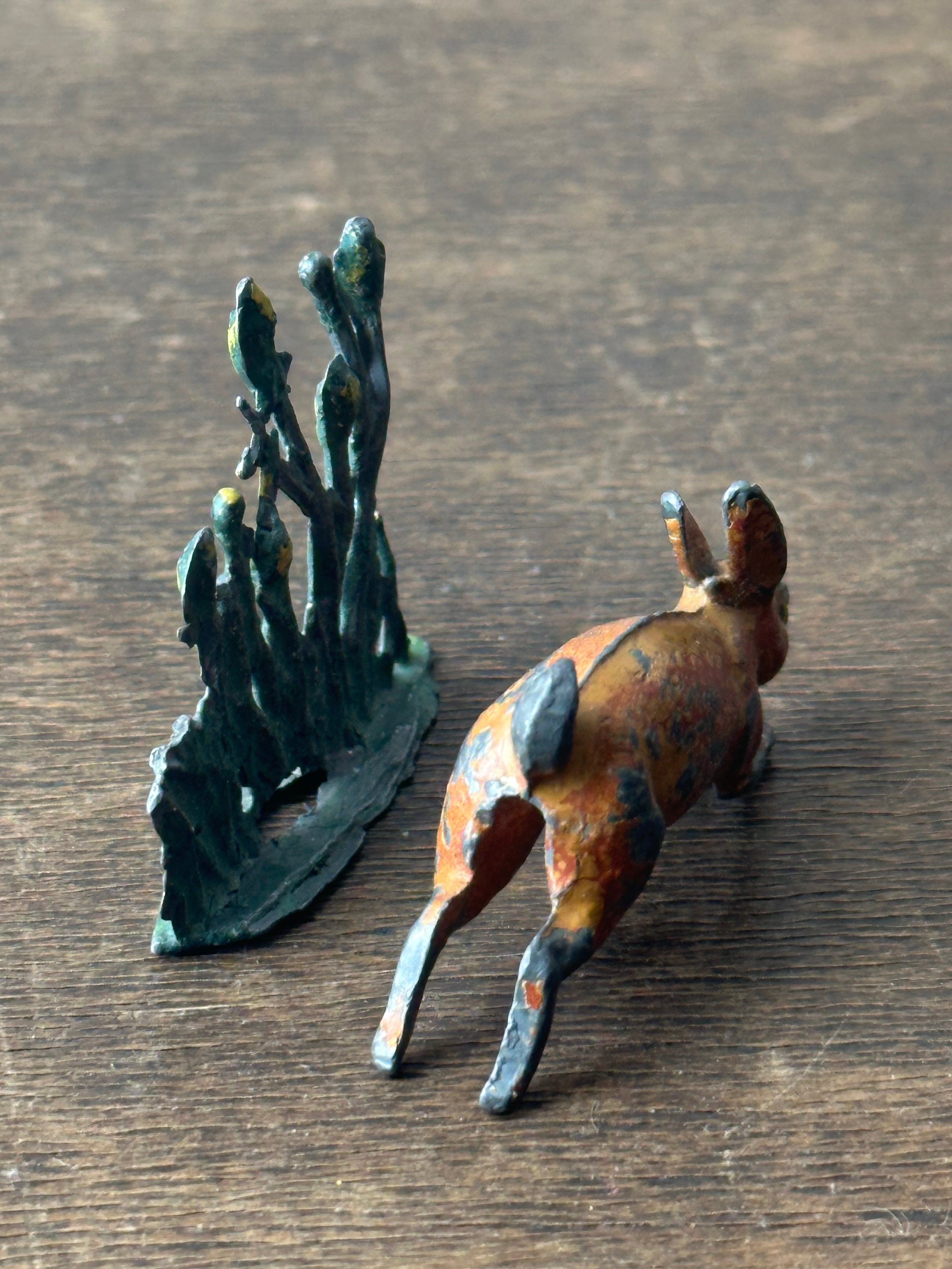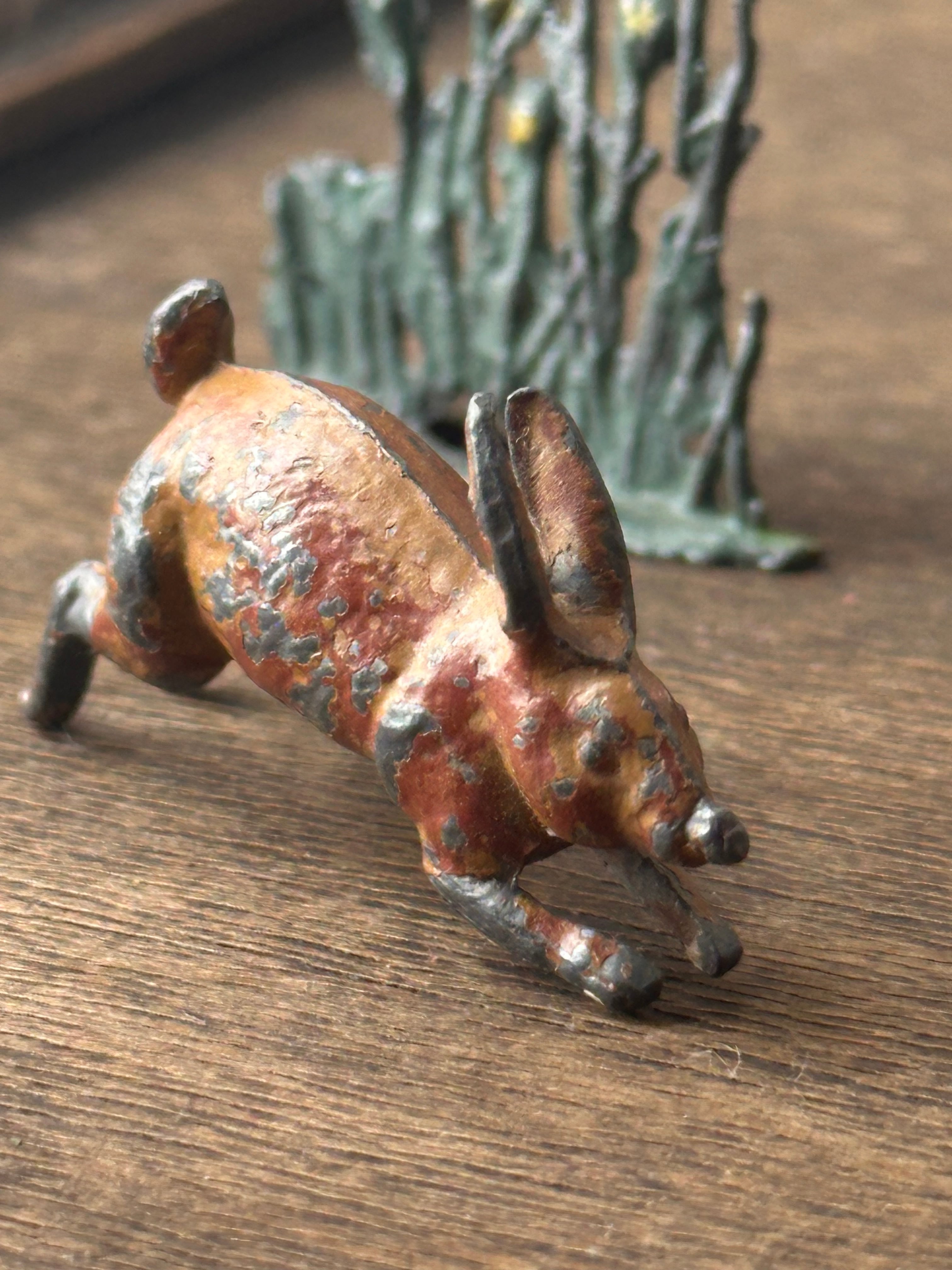 イギリス、ヴィンテージのミニチュア。野を駆けるウサギと草むらのセットです。