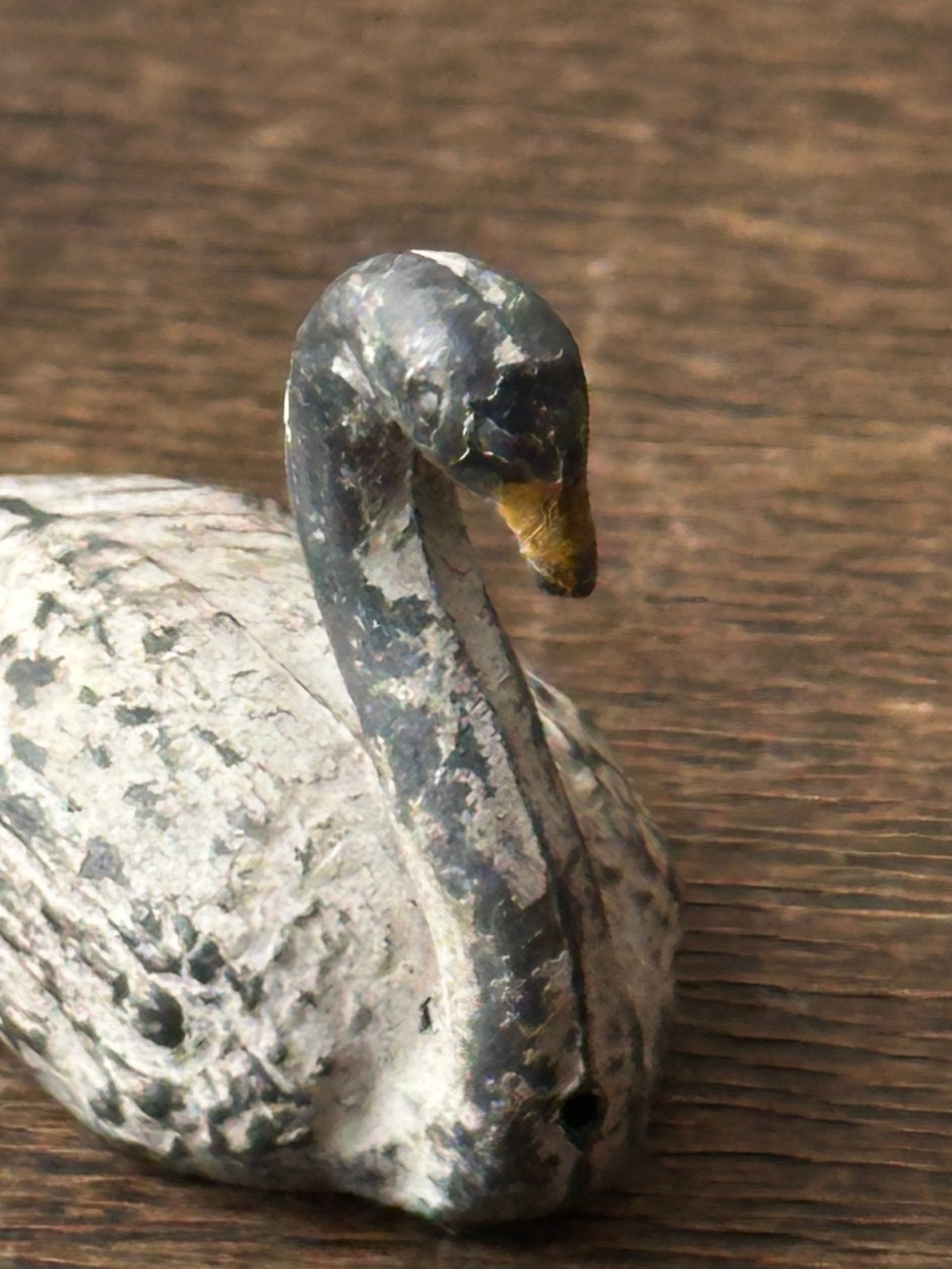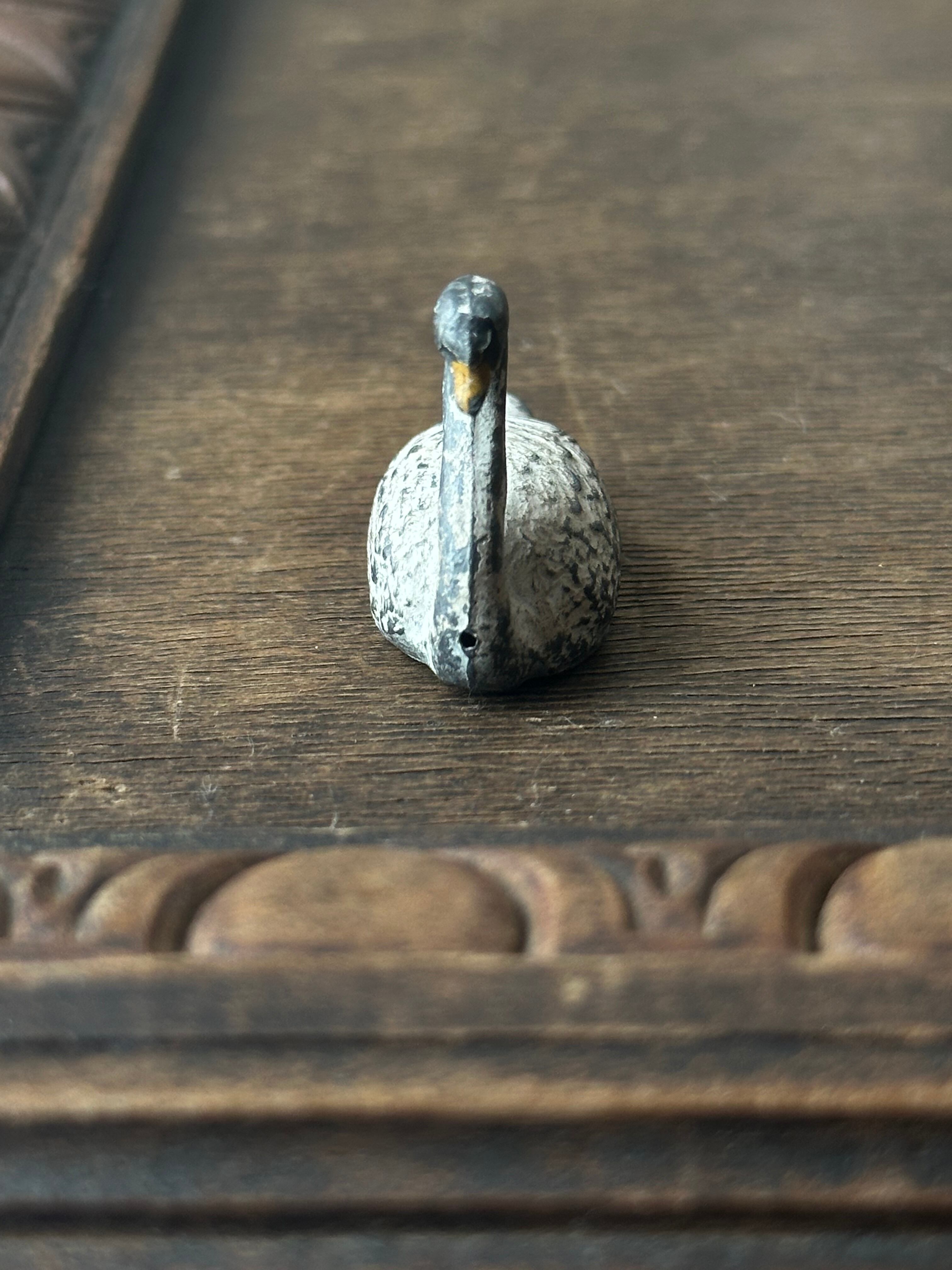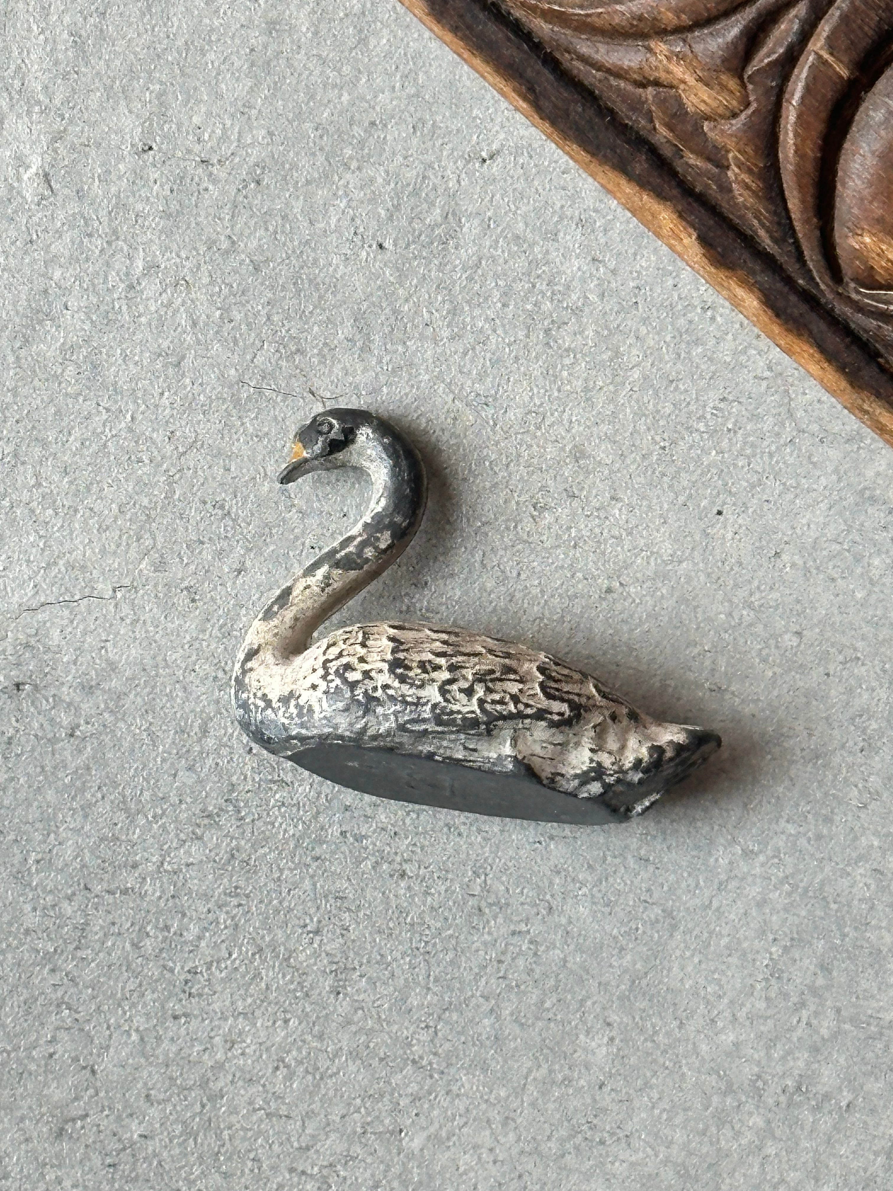スワンの毛並みが繊細に再現されております。素朴な造形と手彩色の風合い、経年による擦れや色の落ち着きが時を重ねた味わいとして感じられます。
