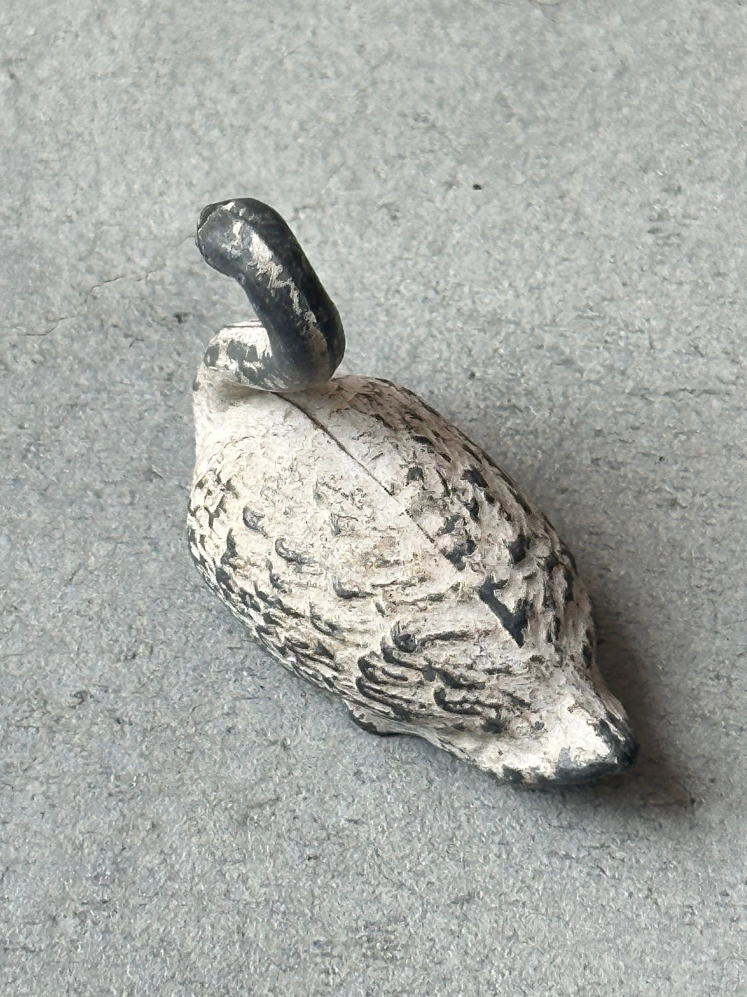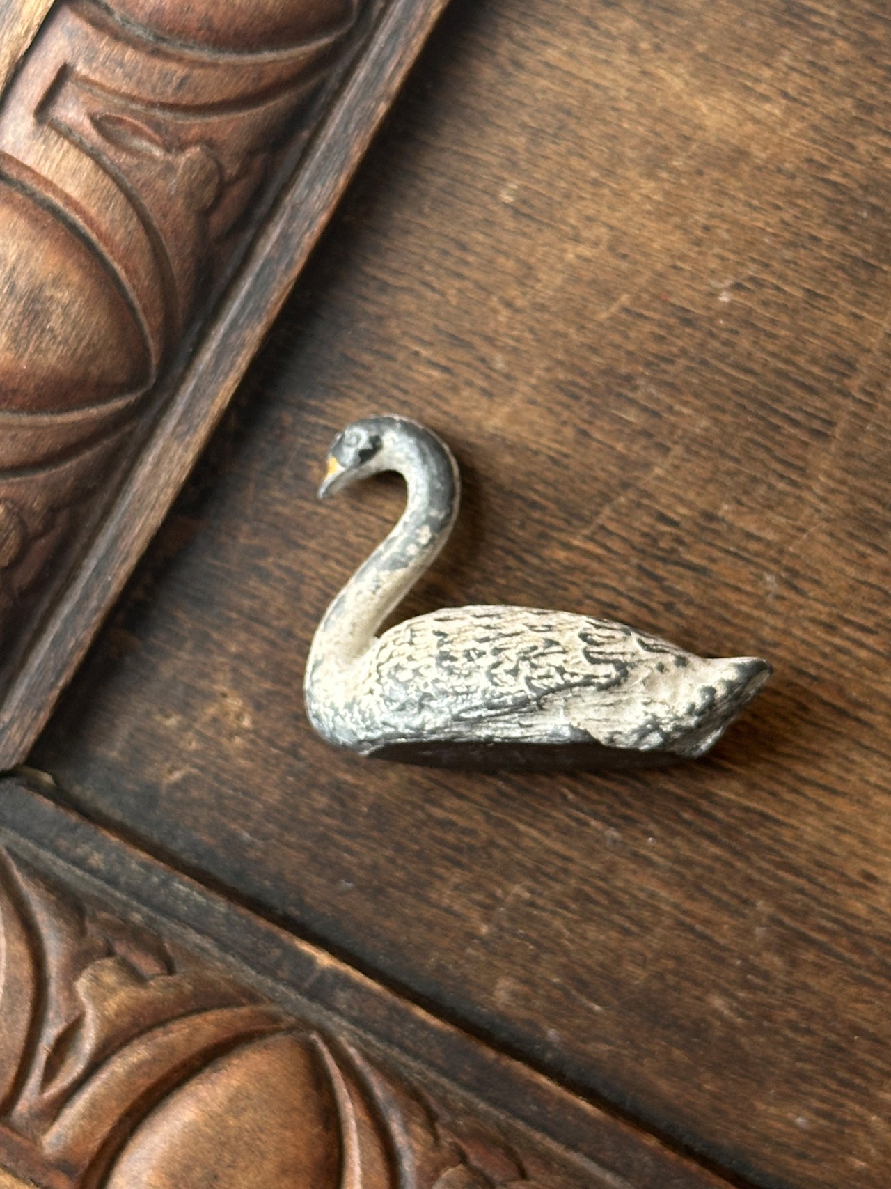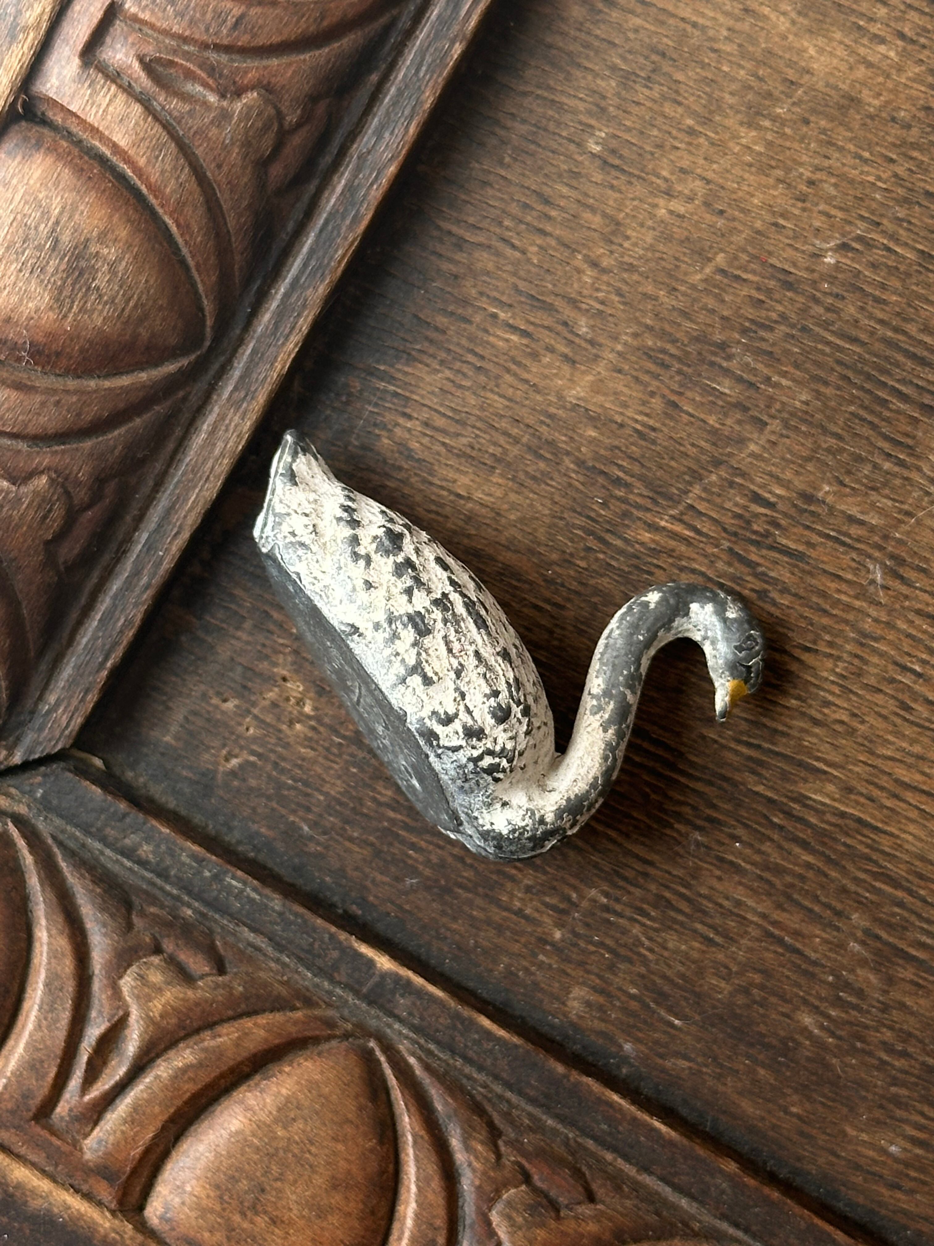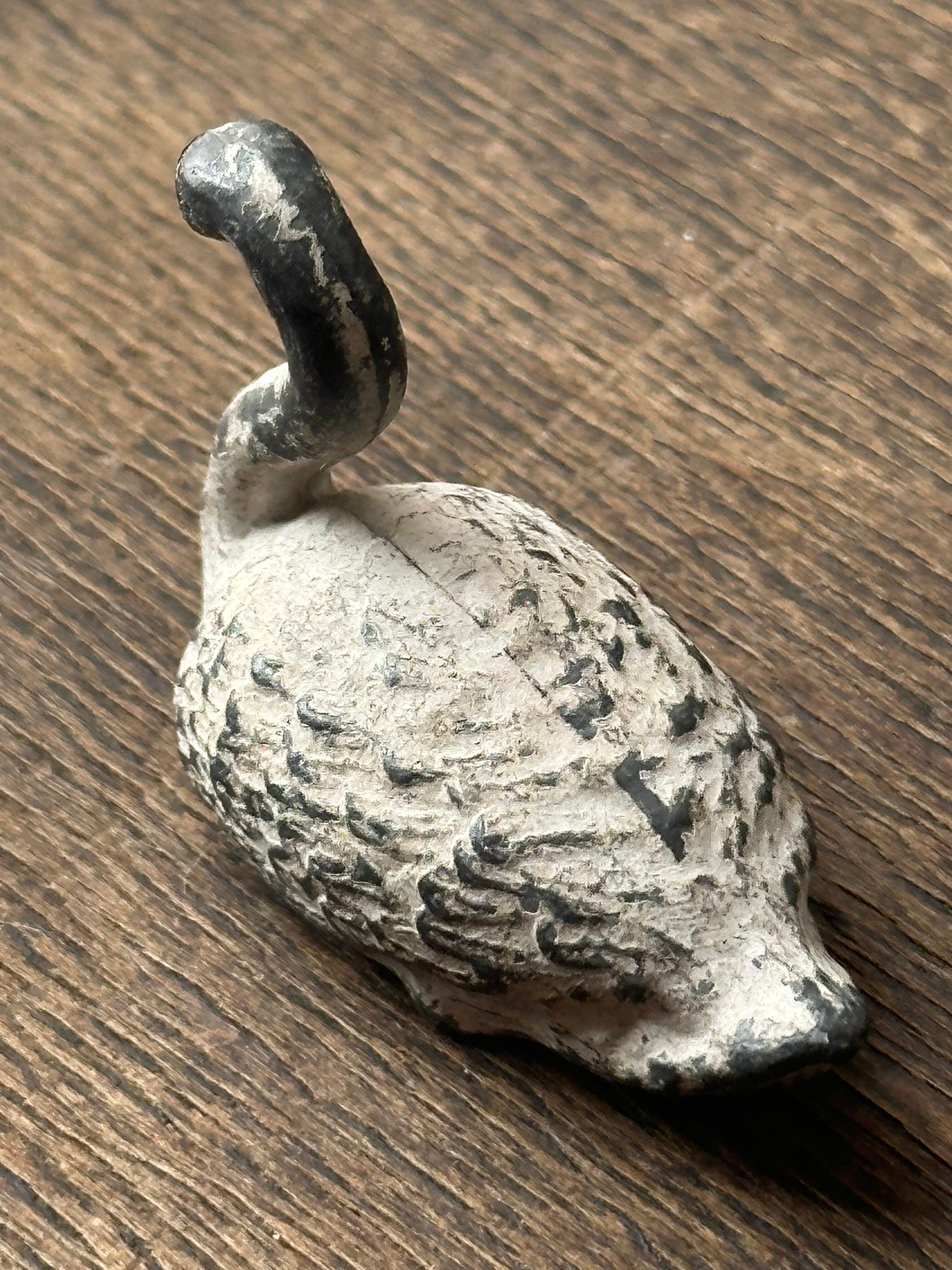 スワンの毛並みが繊細に再現されております。素朴な造形と手彩色の風合い、経年による擦れや色の落ち着きが時を重ねた味わいとして感じられます。