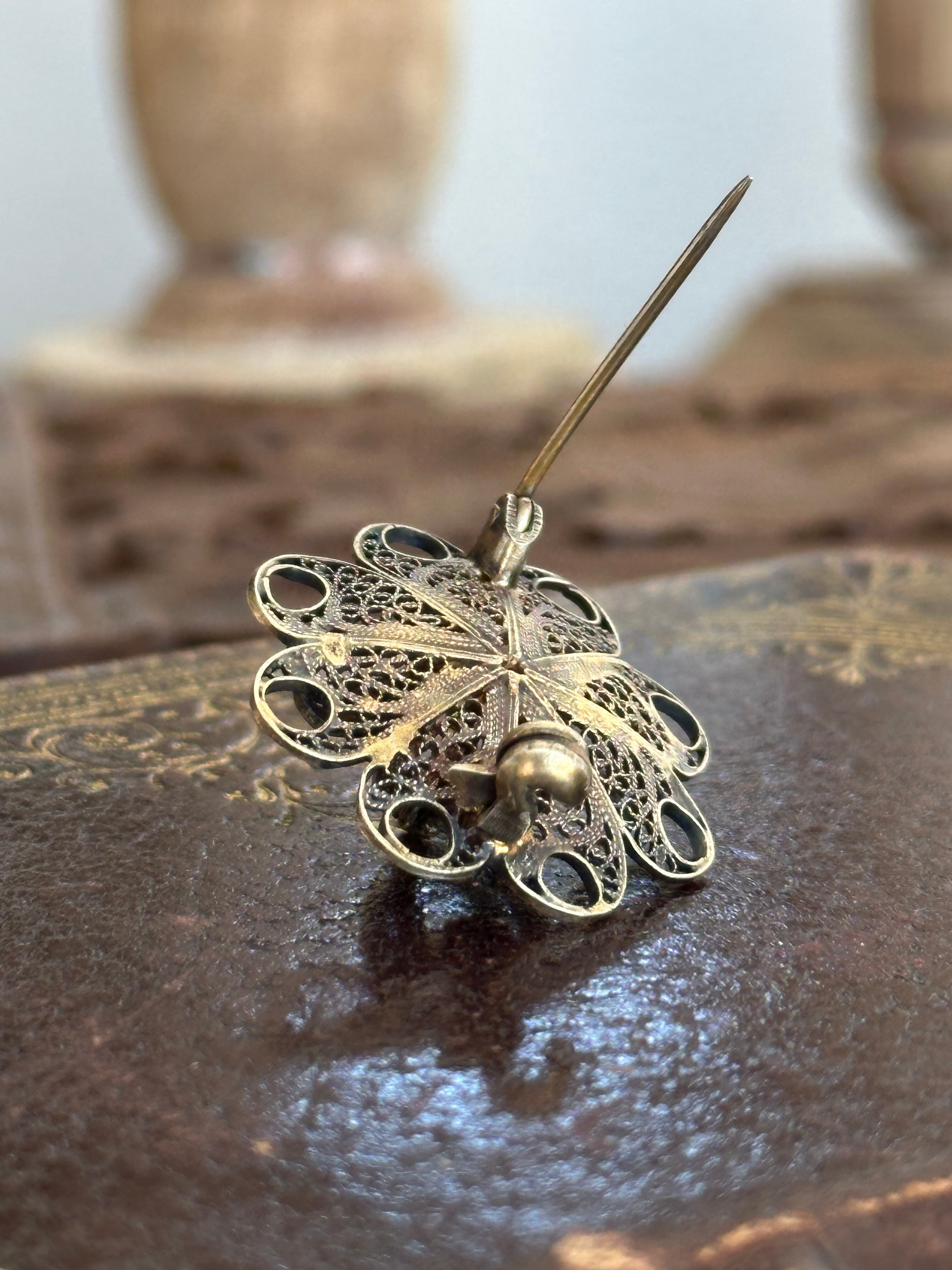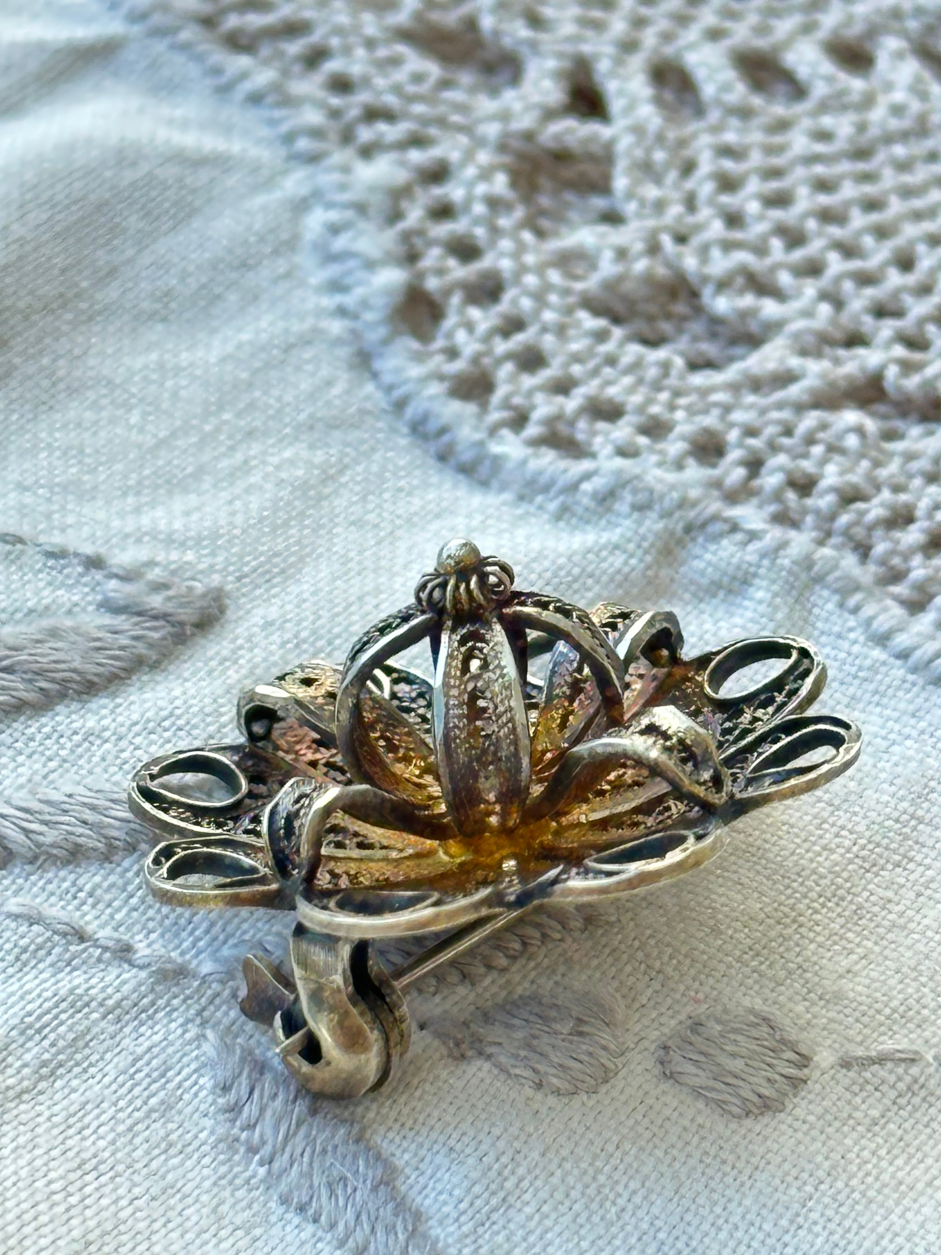 フランス ヴィンテージ フィリグリー 花型ブローチ パリ蚤の市