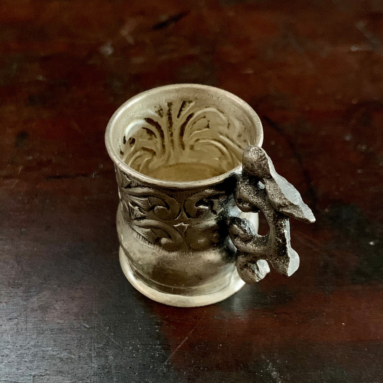 イギリスの蚤の市で見つけた、シルバープレートのカップです。