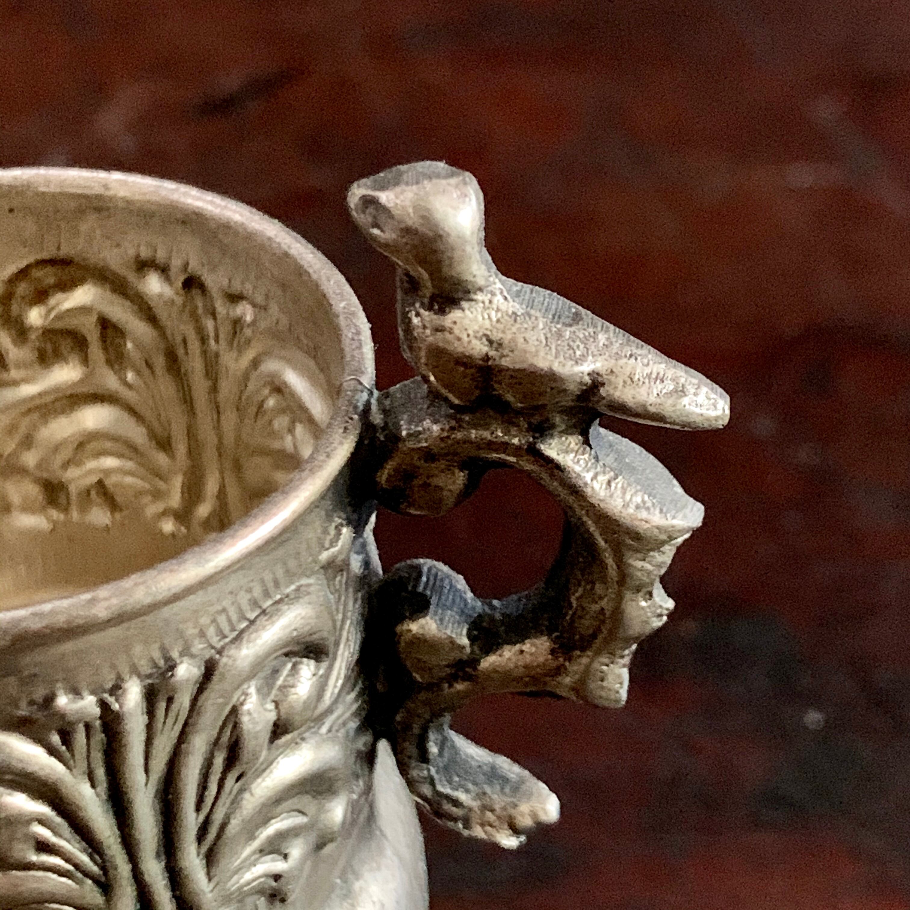 カップ全体に植物模様が綺麗に施されており、表面の経年変化が美しお品です。