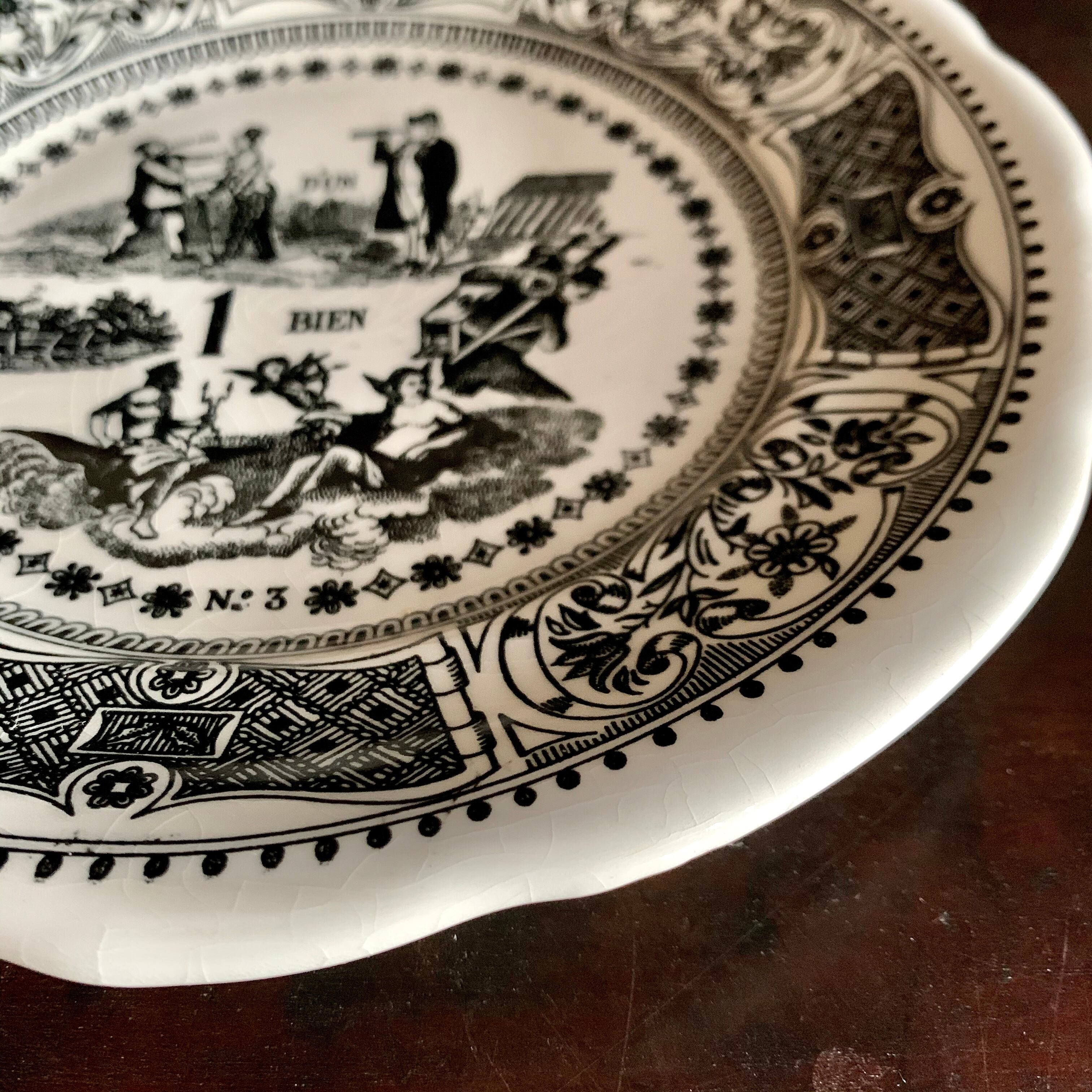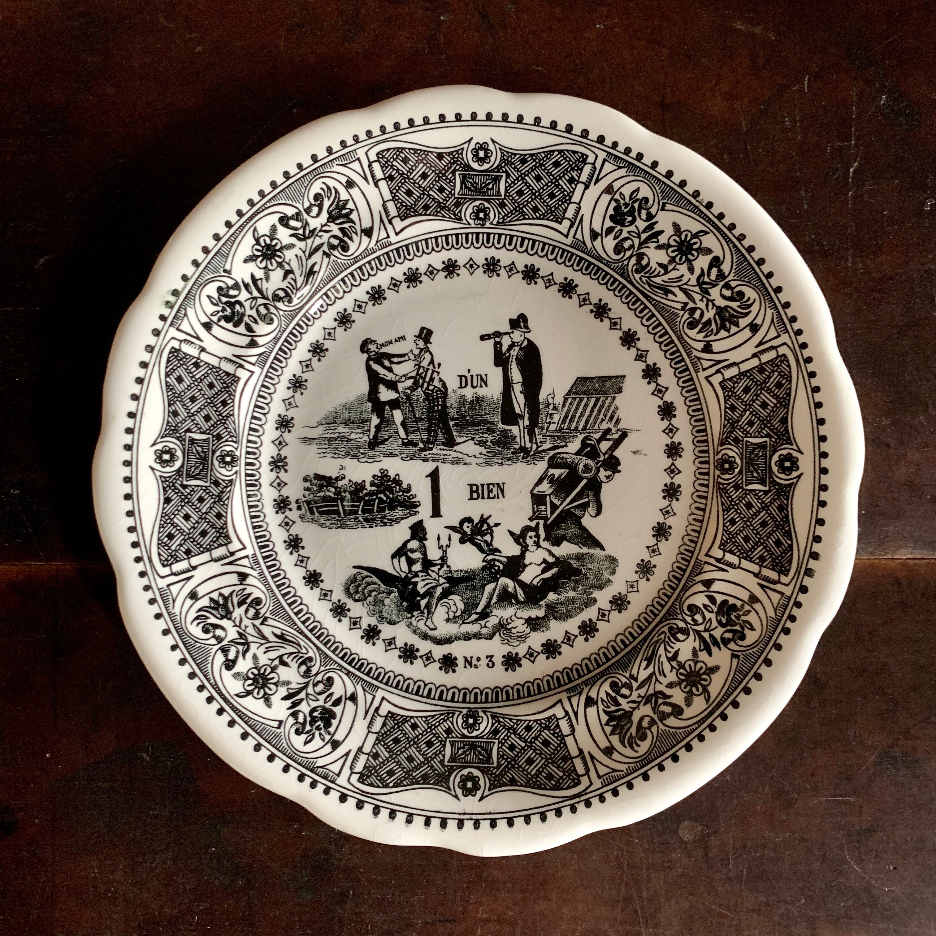 黒色の濃淡で描かれた艶やかで美しいグリザイユプレートです。