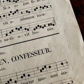 こちらのネウマ譜は大きな聖歌本を切り取ったと思われる両面印刷の紙の楽譜になります。
