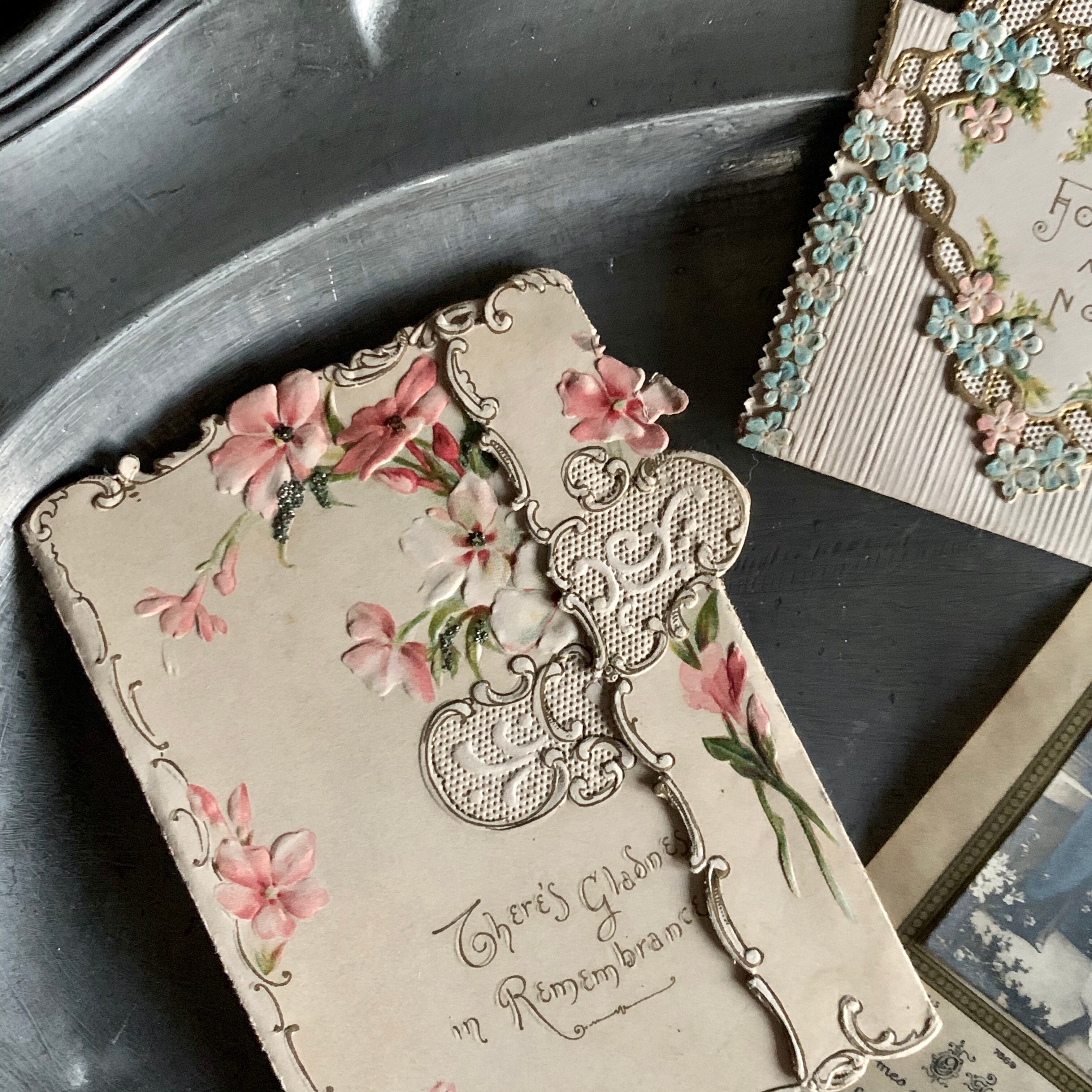 イギリスの蚤の市で出会った花柄が素敵なグリーティングカードとフランスのホーリーカードのセットです。