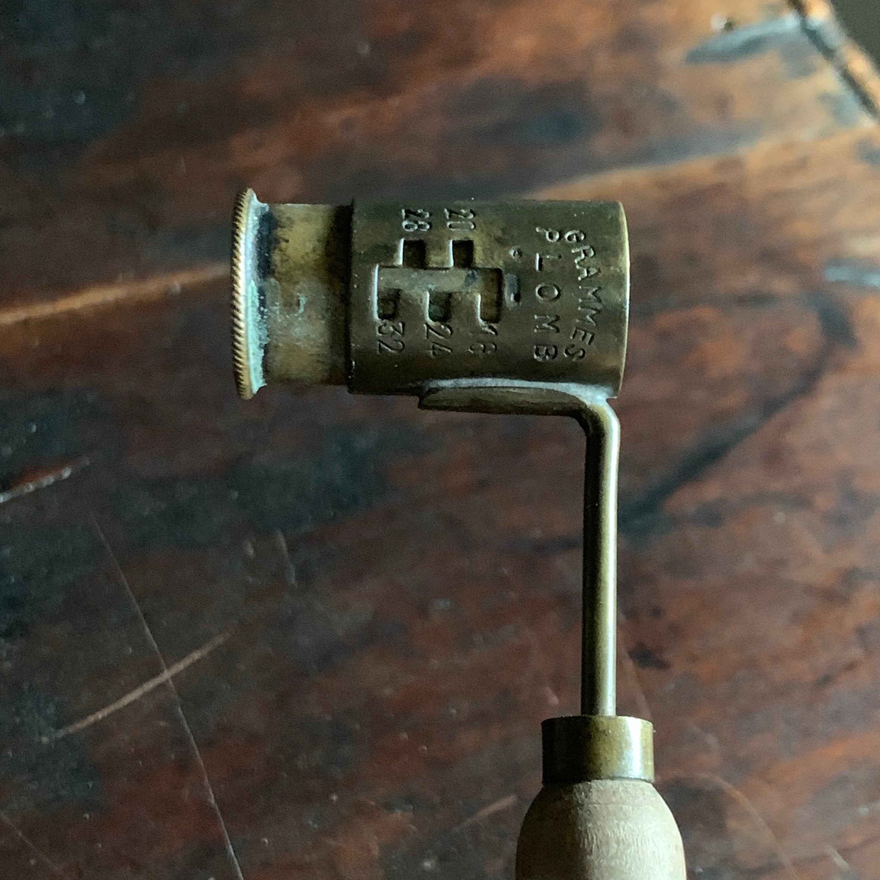 真鋳部分にはGRAMMES PLOMS POUDRE と刻印されており、測る量を変えれるように可動します。
