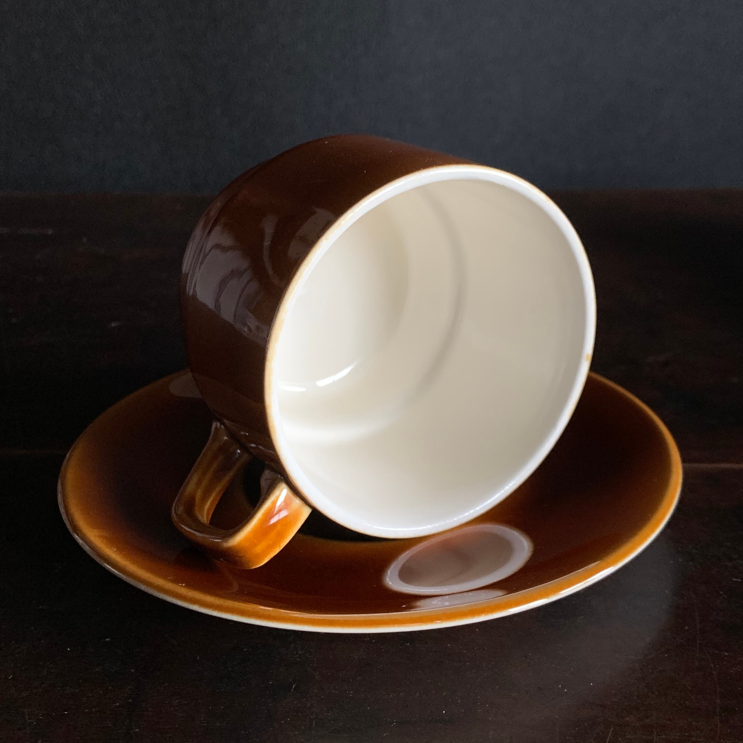 優しい飴色とカップ内の乳白色の色合いがとても美しく、カップ内側は乳白色なので、紅茶やコーヒーの色がきれいに見えますね。