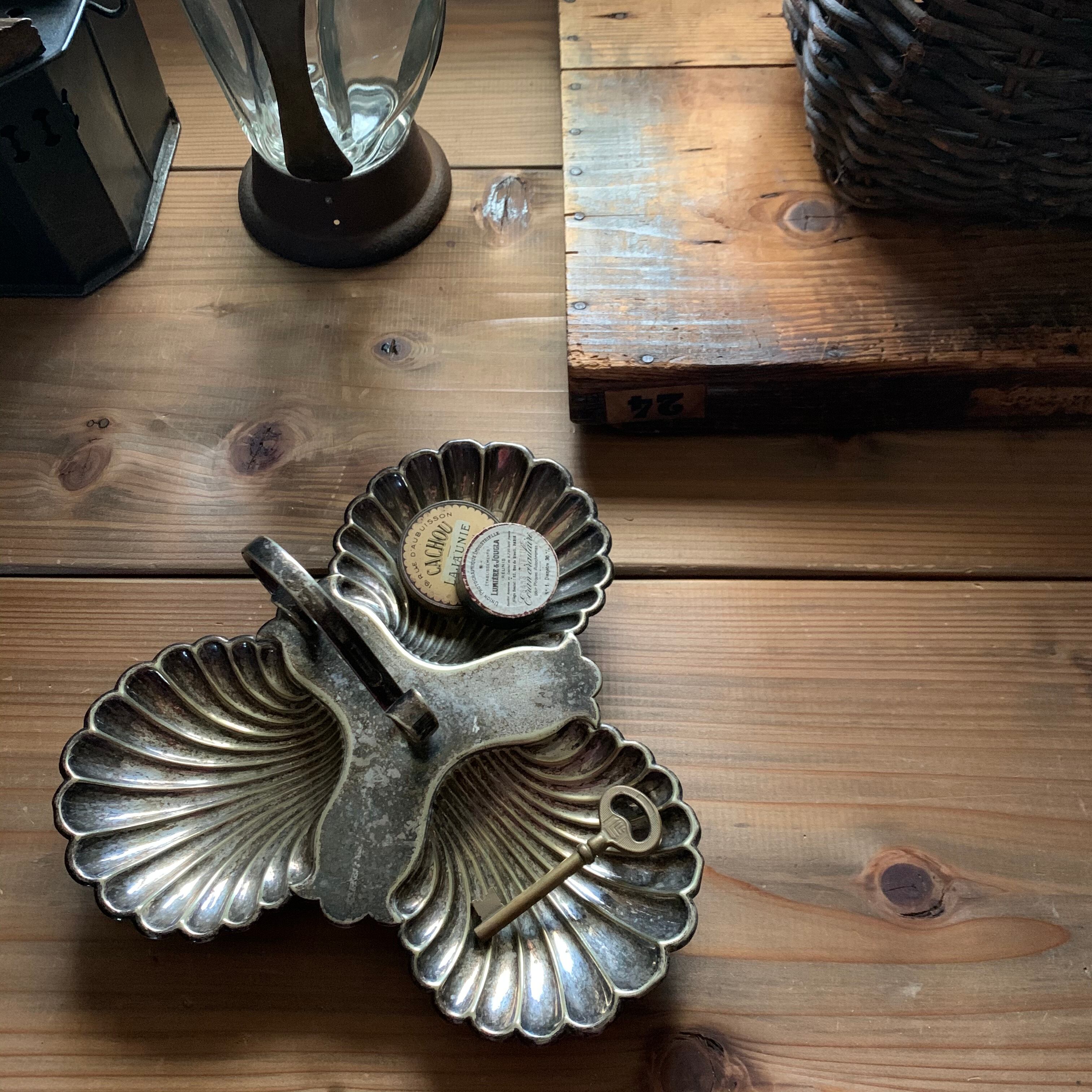 シェルモチーフのシルバープレートのトレイです。