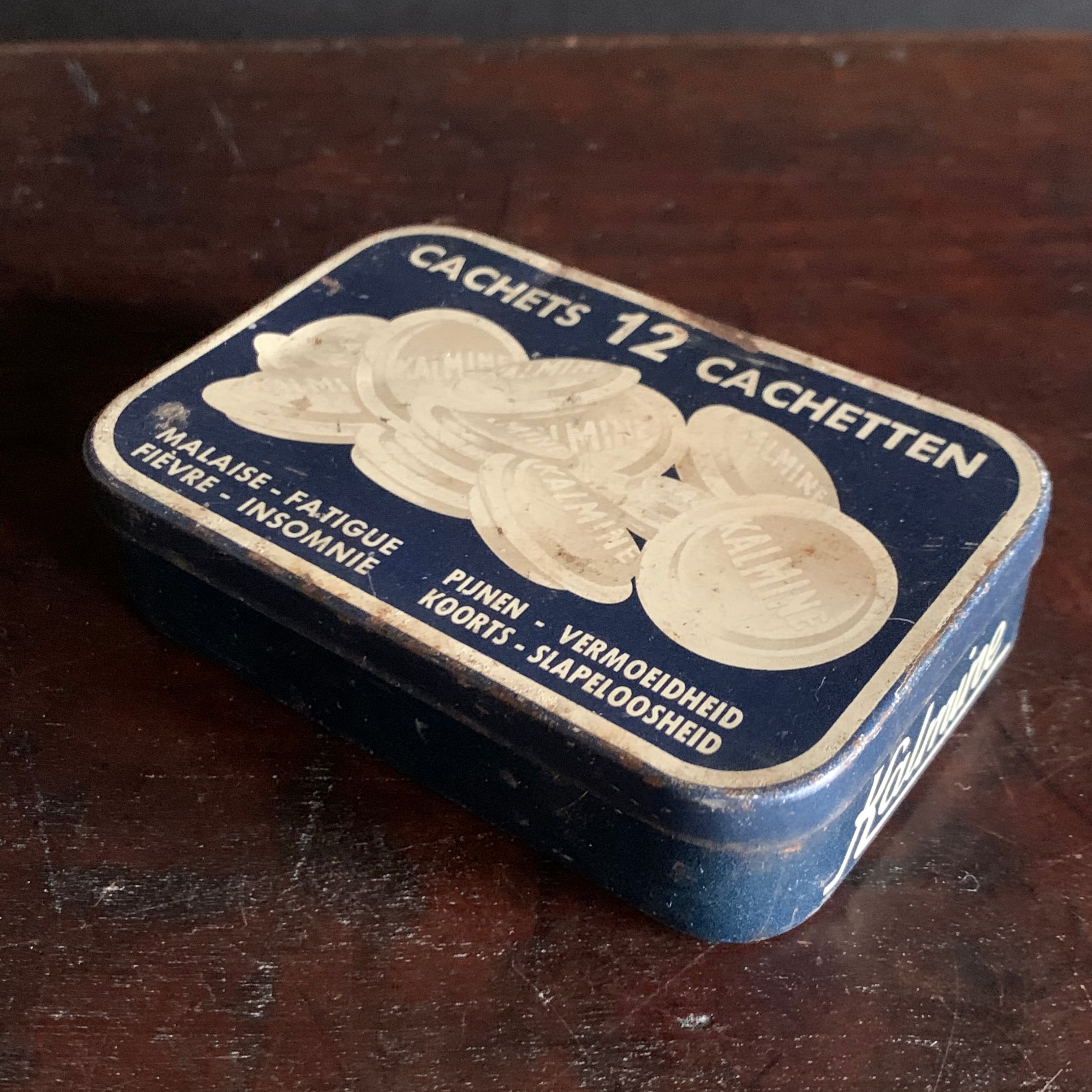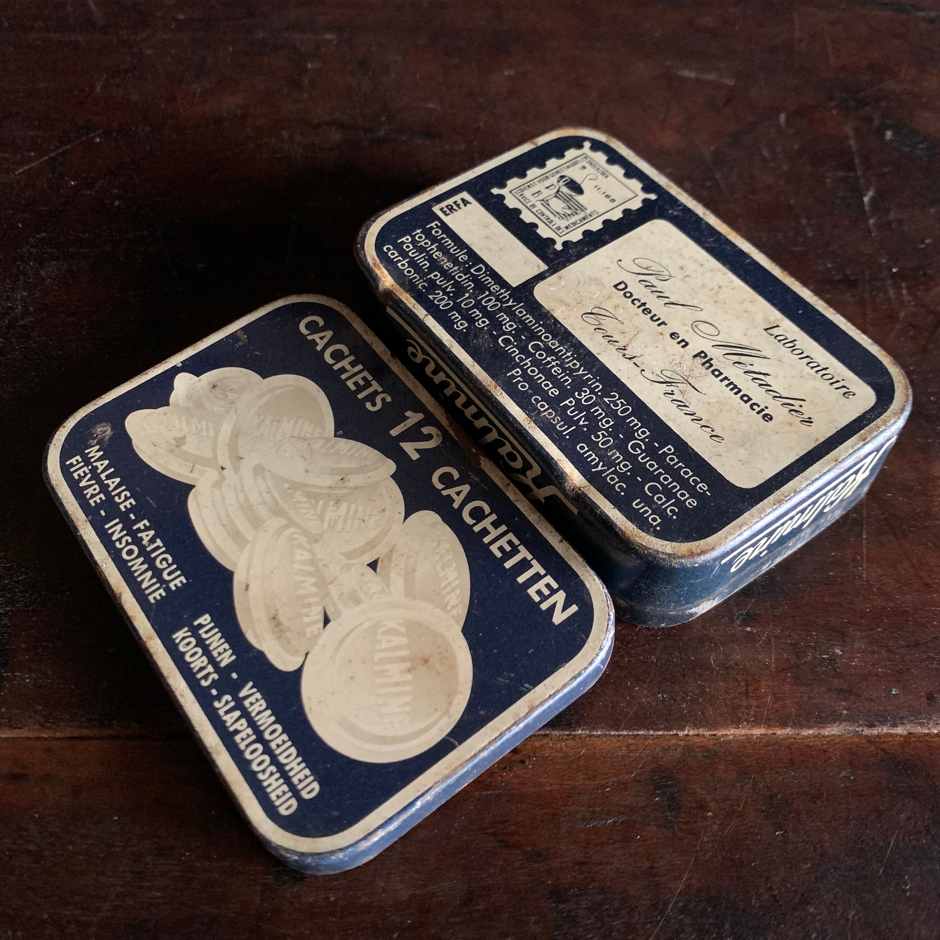 フランスの蚤の市で見つけたヴィンテージの薬のティン缶です。
