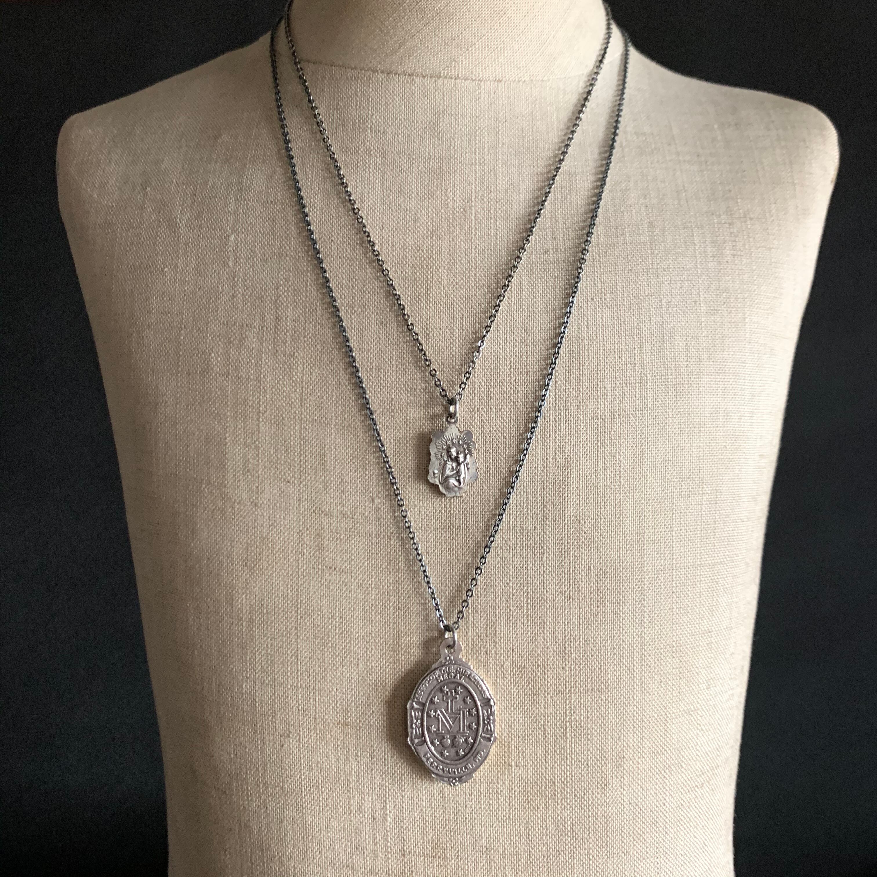 ヴィンテージの大小2つのメダイネックレスセットです。