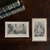 こちらはカニヴェ (canivet) と言われるレース状の透かし模様が入ったカードで、縁取りに緻密な透かしが施され、モノトーンの繊細なイラストが美しく描かれております。