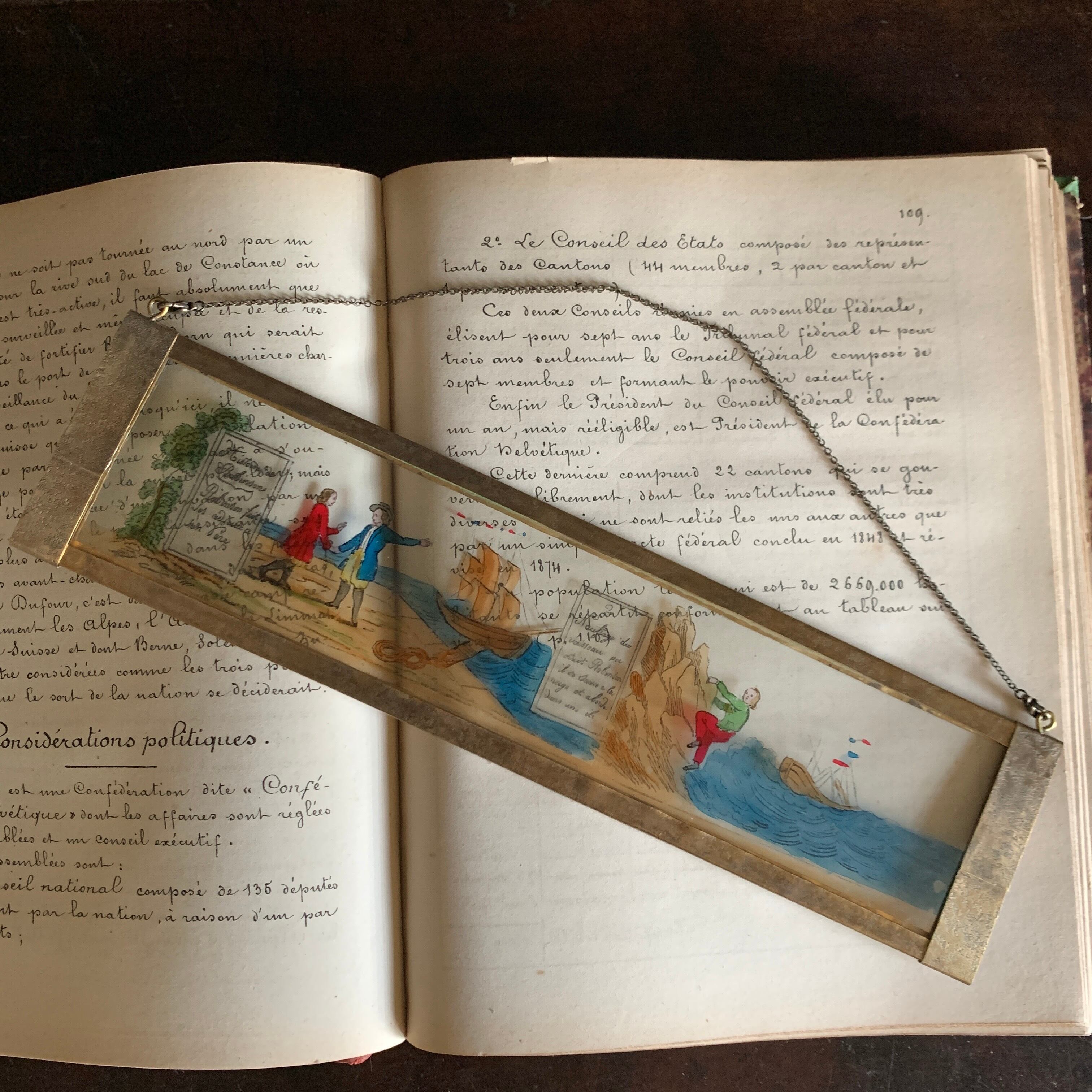 こちらはフランスの蚤の市で見つけた幻灯機の古いガラス絵です。