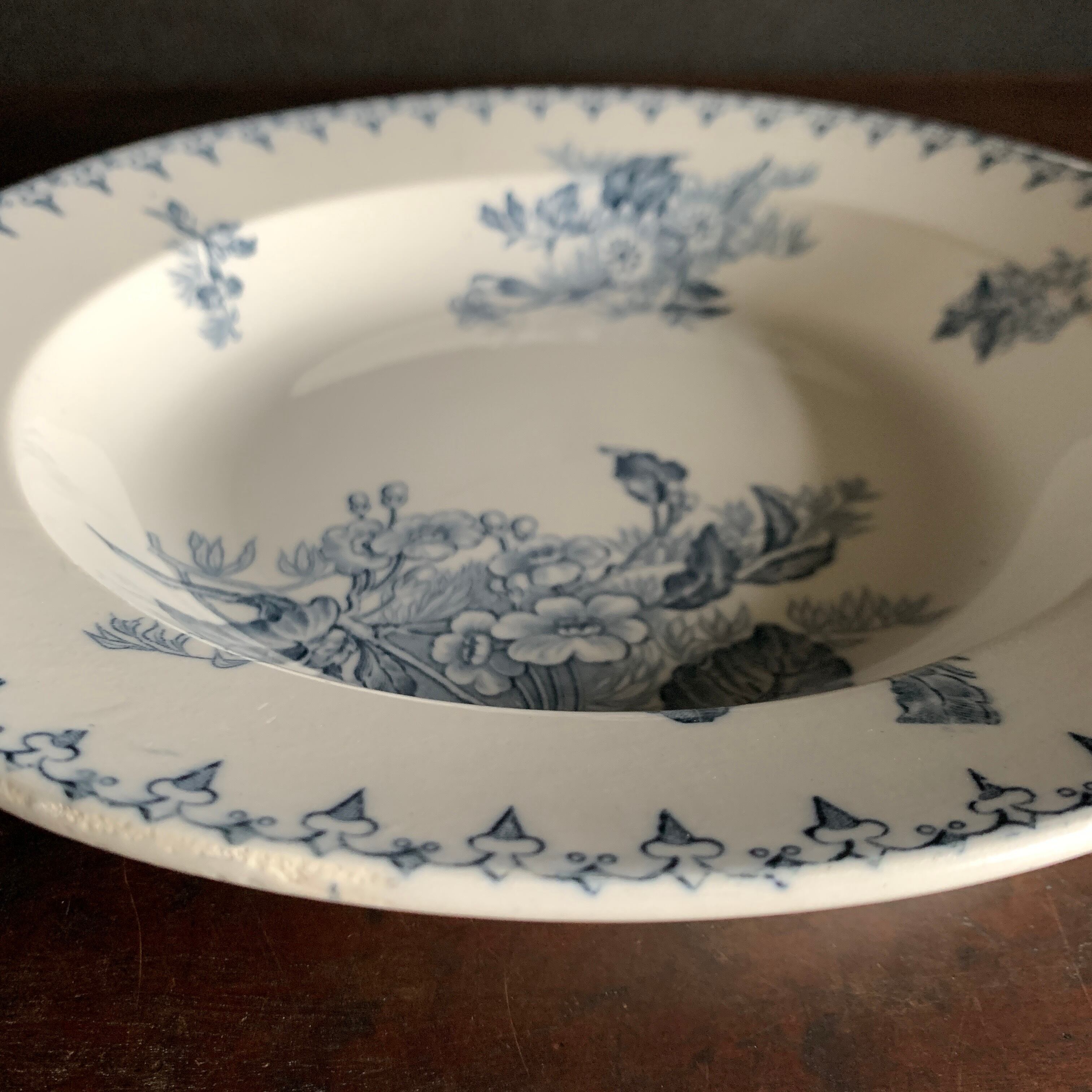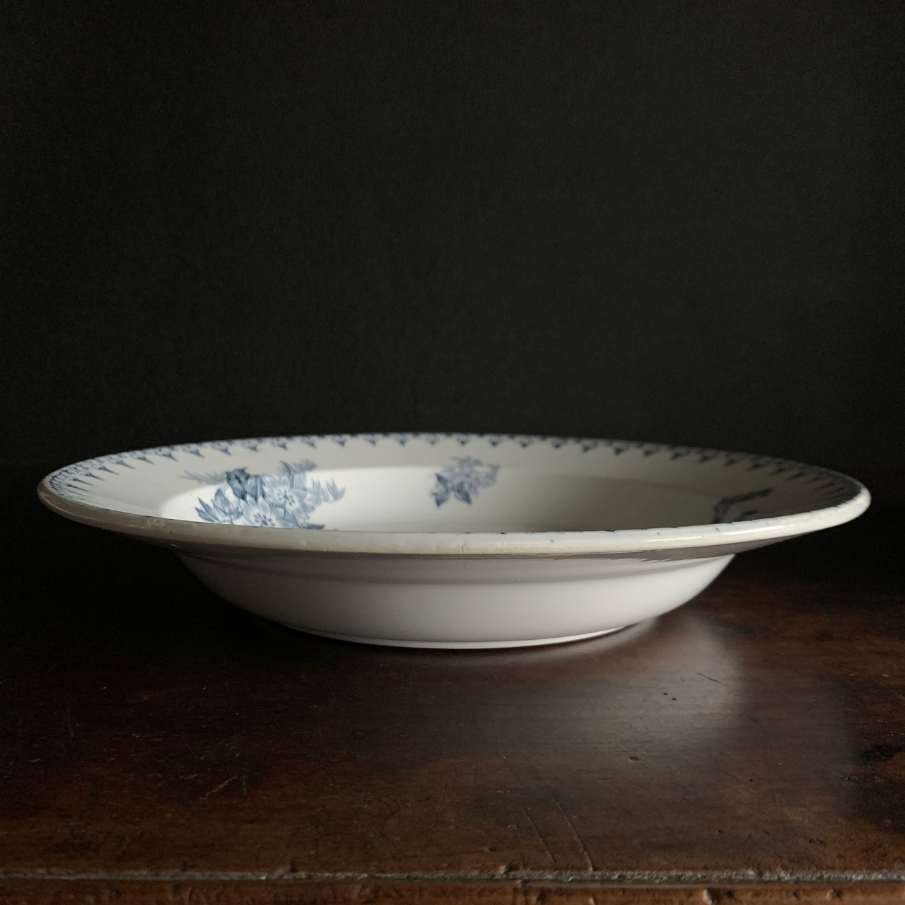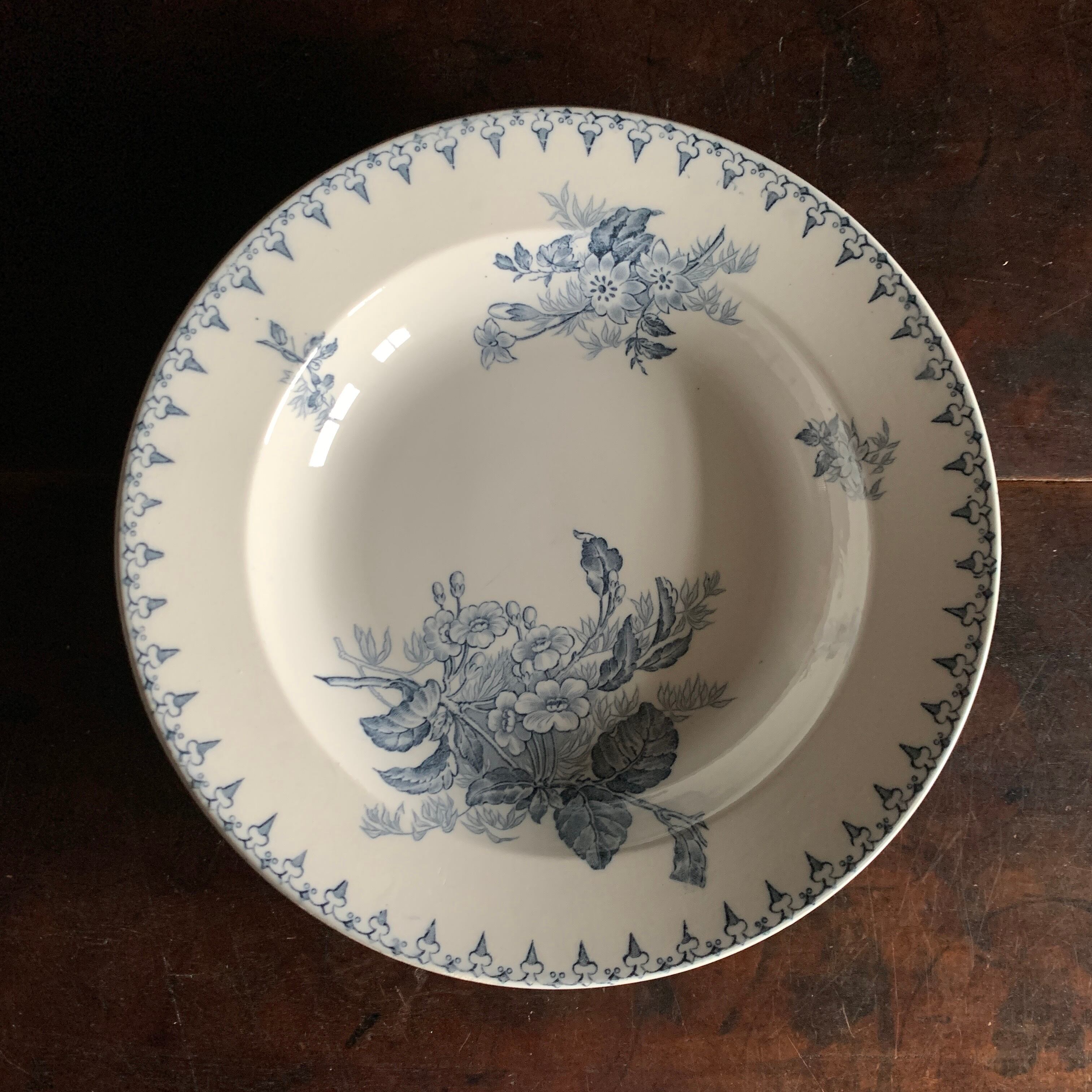 1890~1920年頃のもので透明感のある白いプレートにブルーのお花が描かれております。