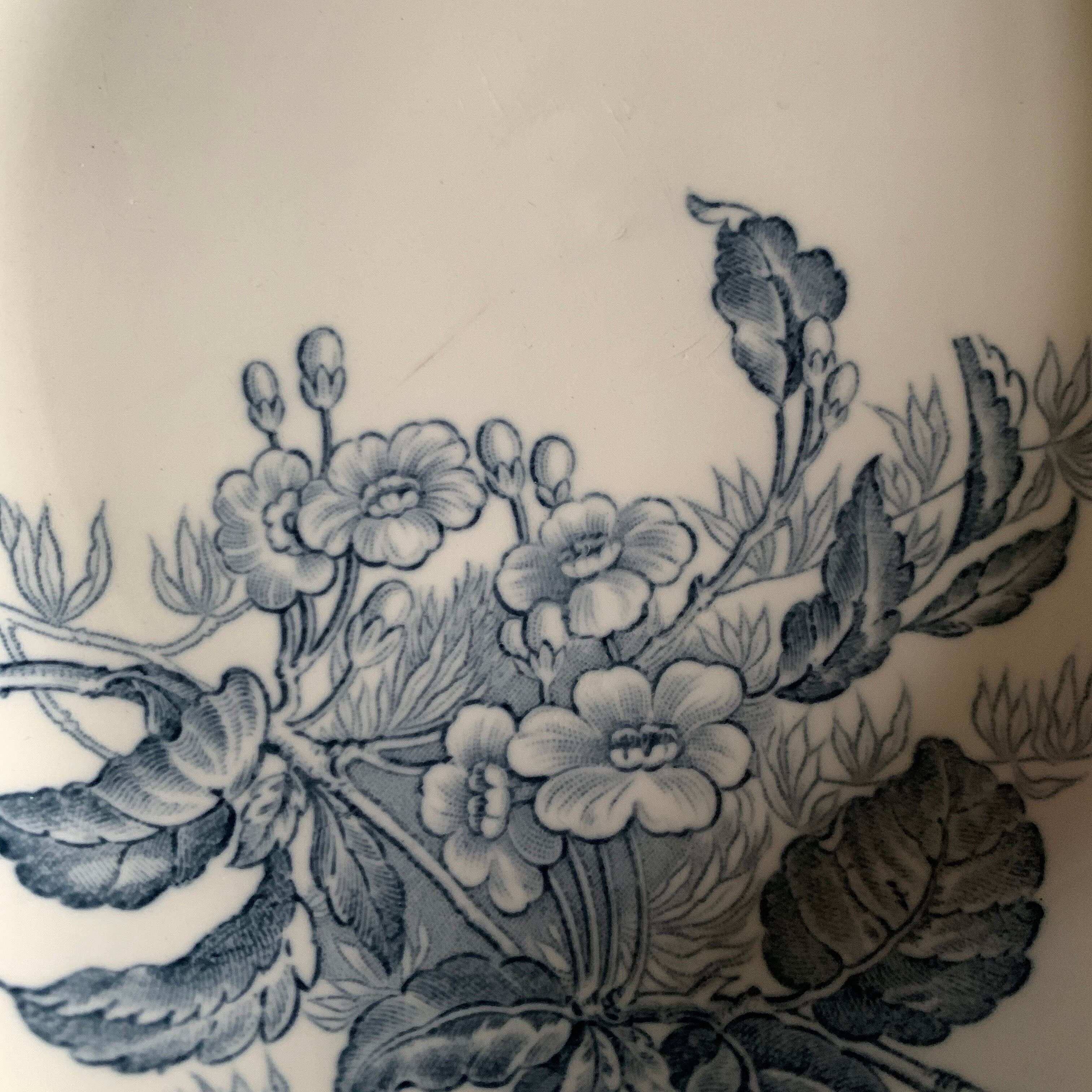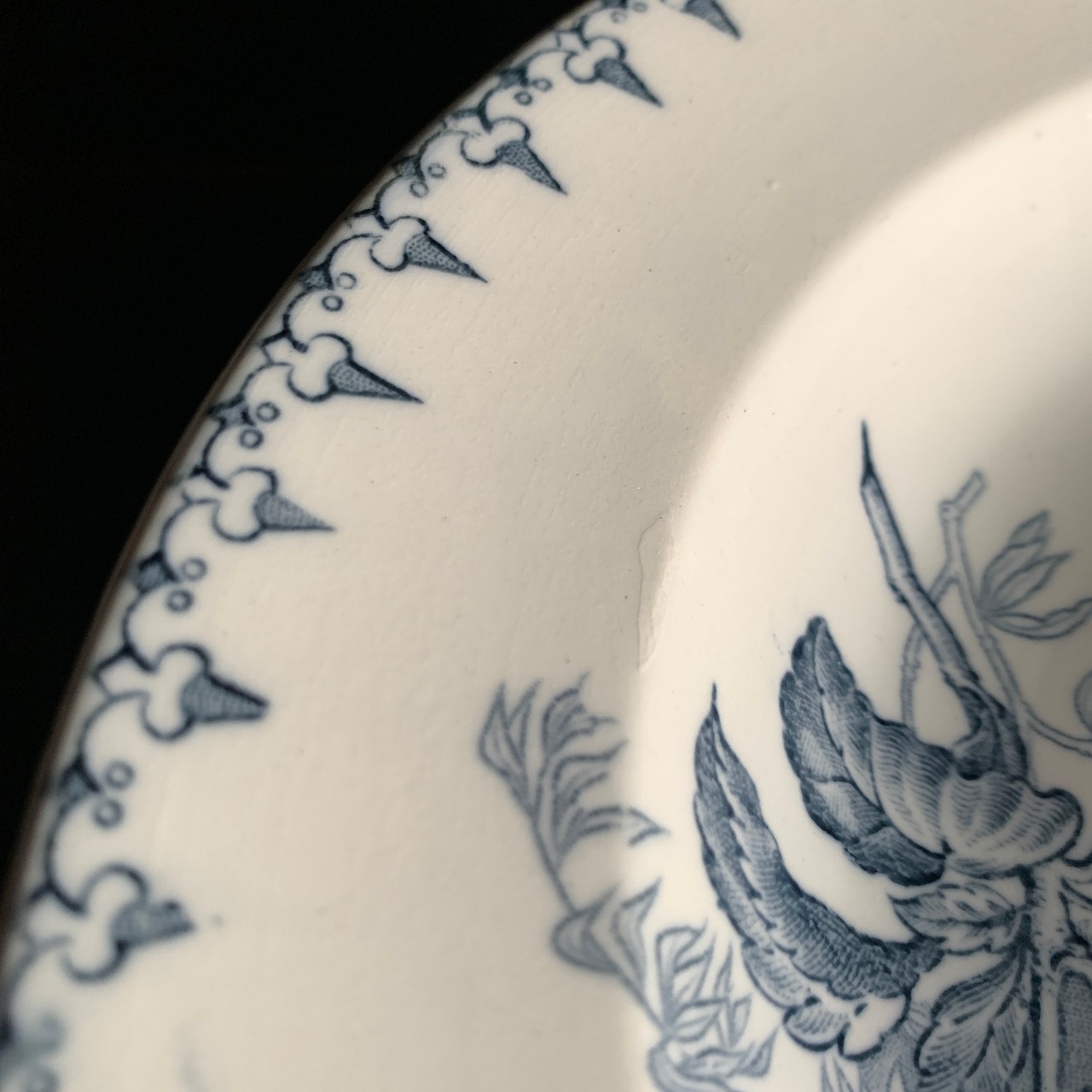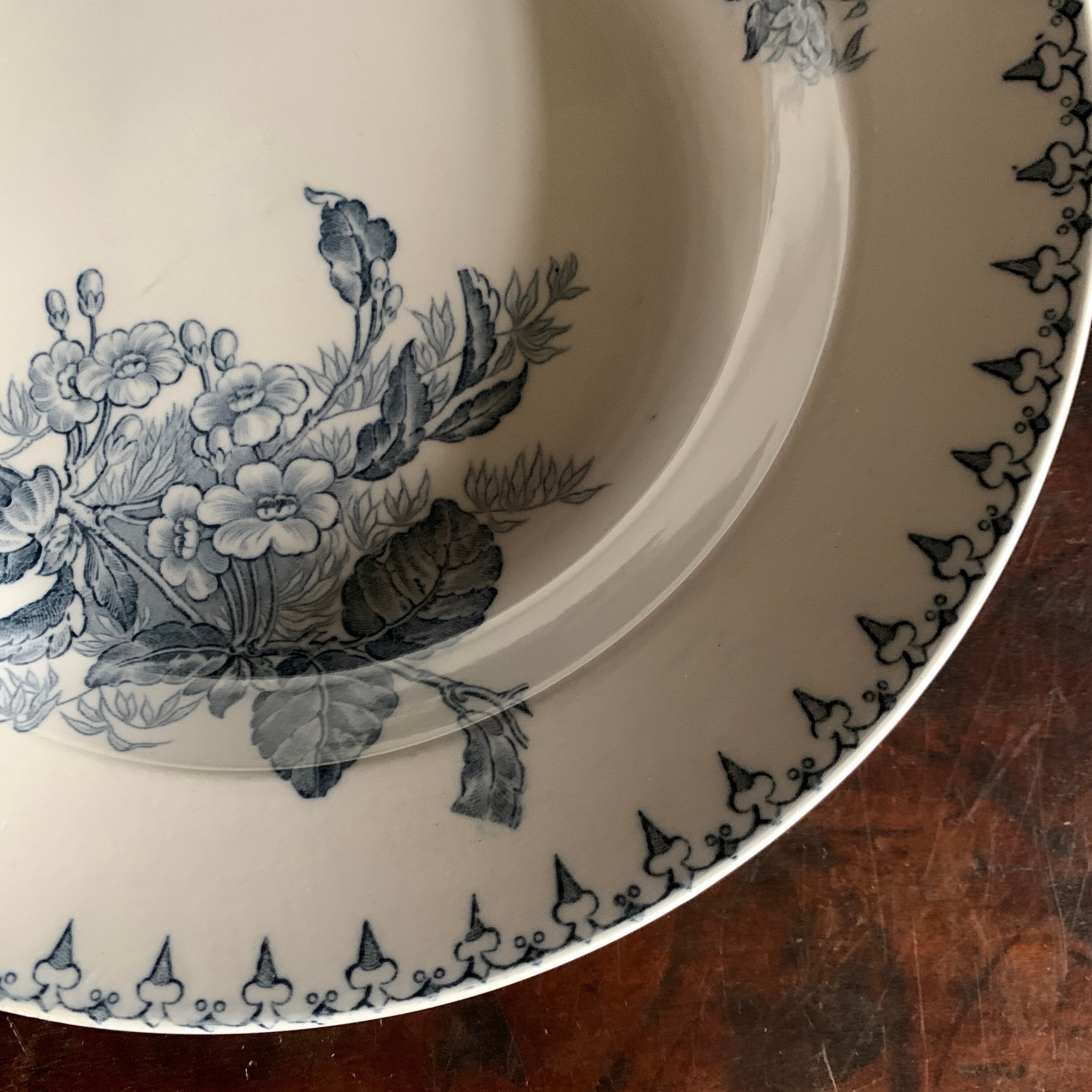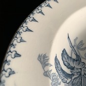 1890~1920年頃のもので透明感のある白いプレートにブルーのお花が描かれております。