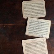 経年により古びた紙の色合いが味わい深い楽譜です。厚紙の両面に楽譜が貼られており、楽団で使われていたものと思われます。