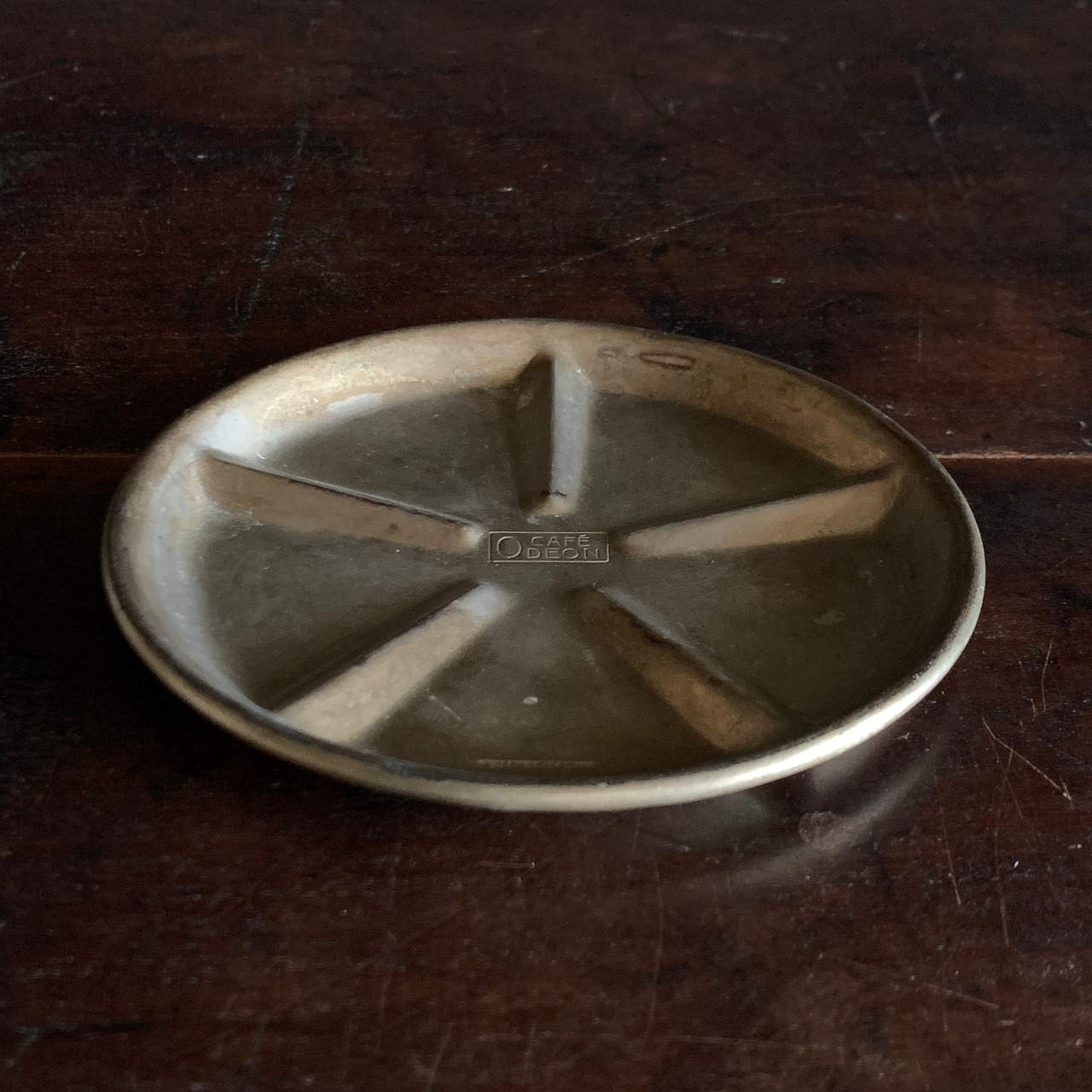 経年によるくすみで真鍮の渋い雰囲気が感じられる小ぶりなコースターです。
