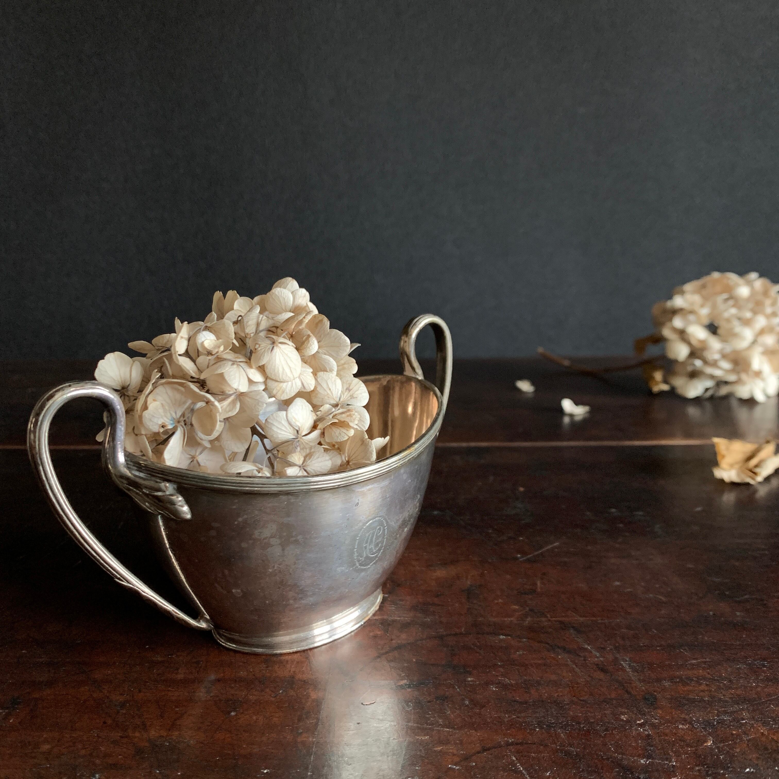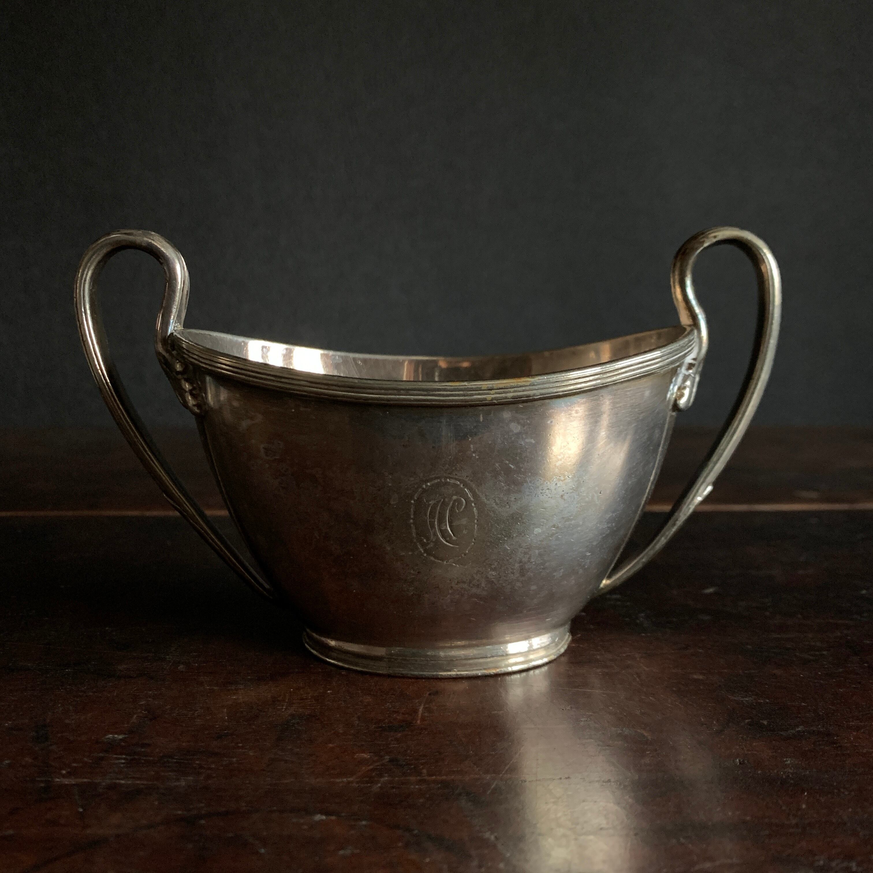 こちらには底に「ELKINGTON PLATE」「E&Co」の文字と、前面には「 AC 」イニシャルのモノグラムが刻印されています。