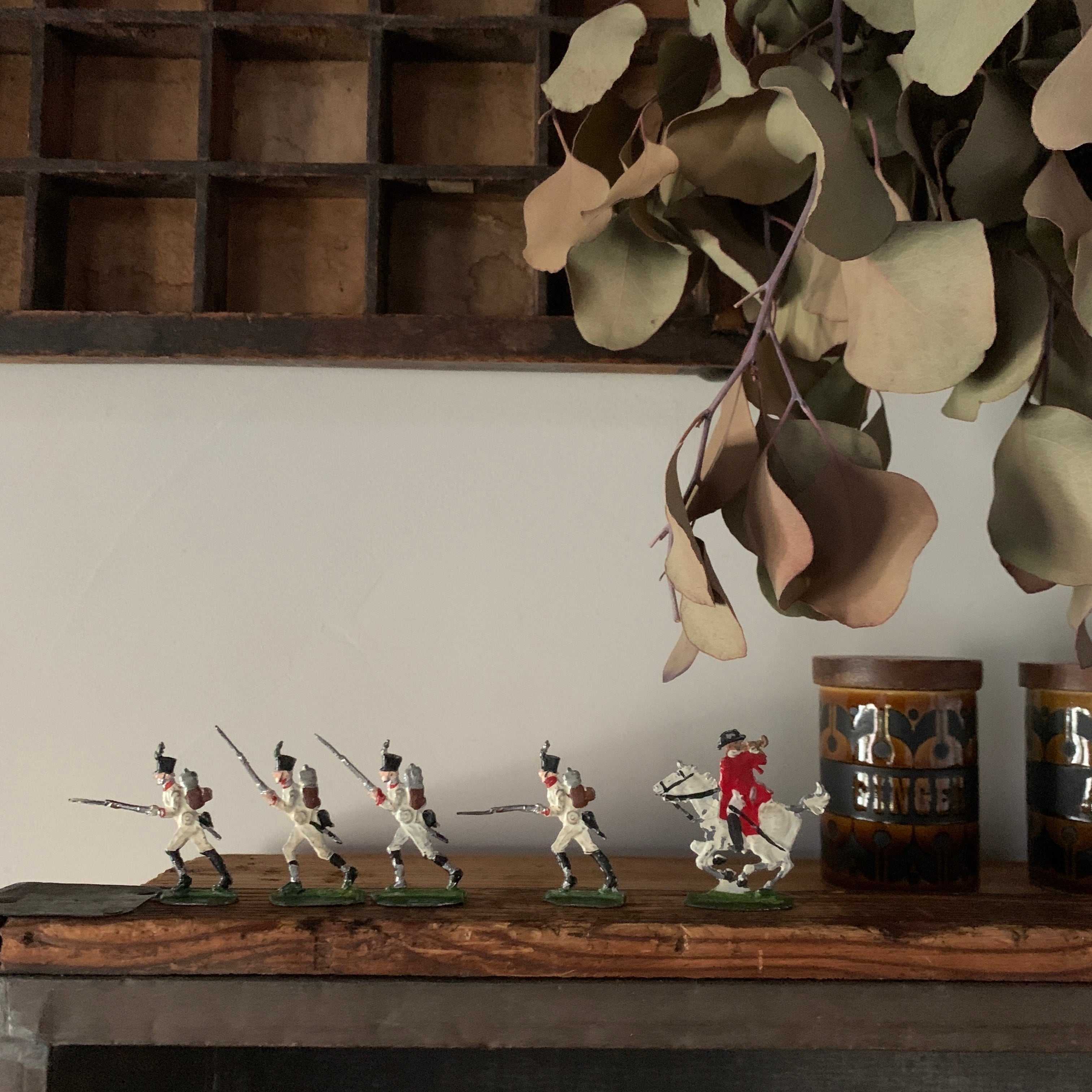 イギリスの蚤の市で出会った、ミニチュアの兵隊5個セットです。