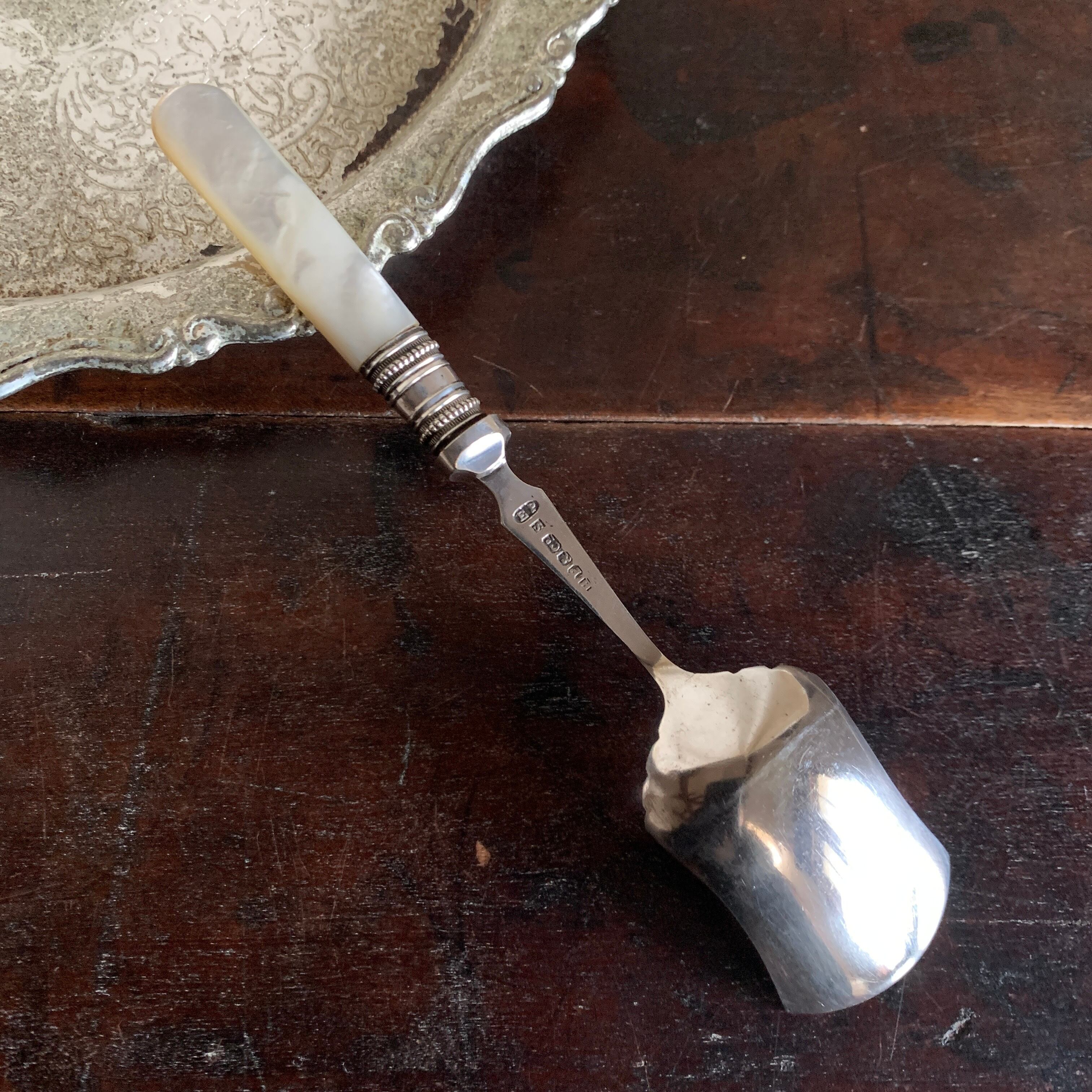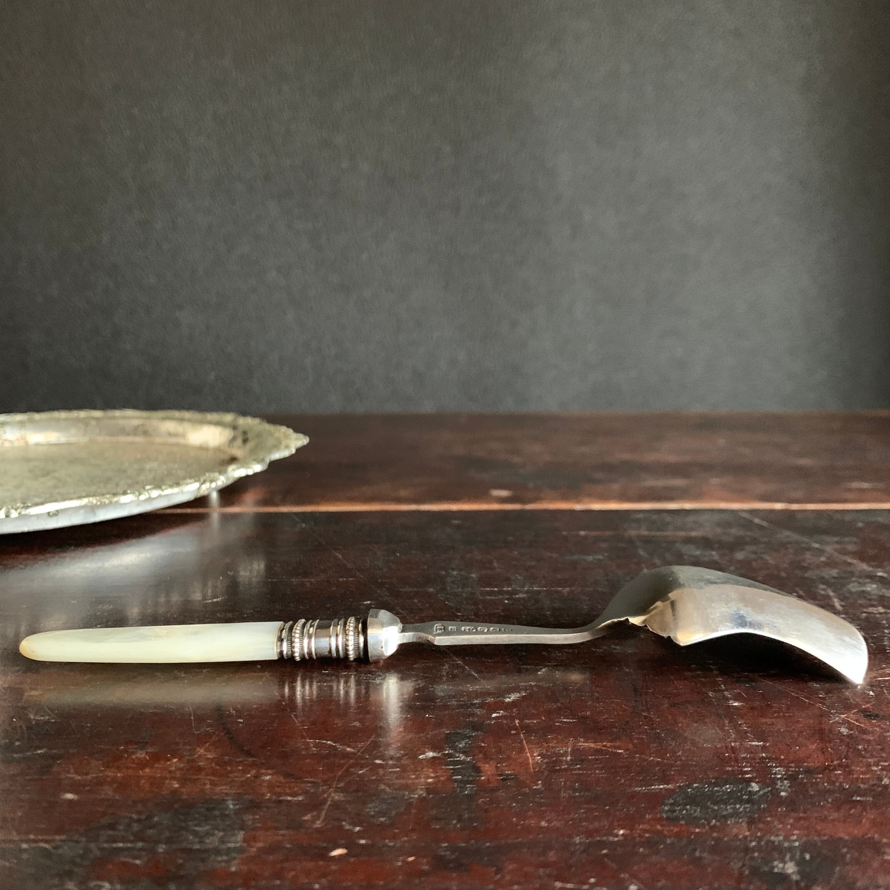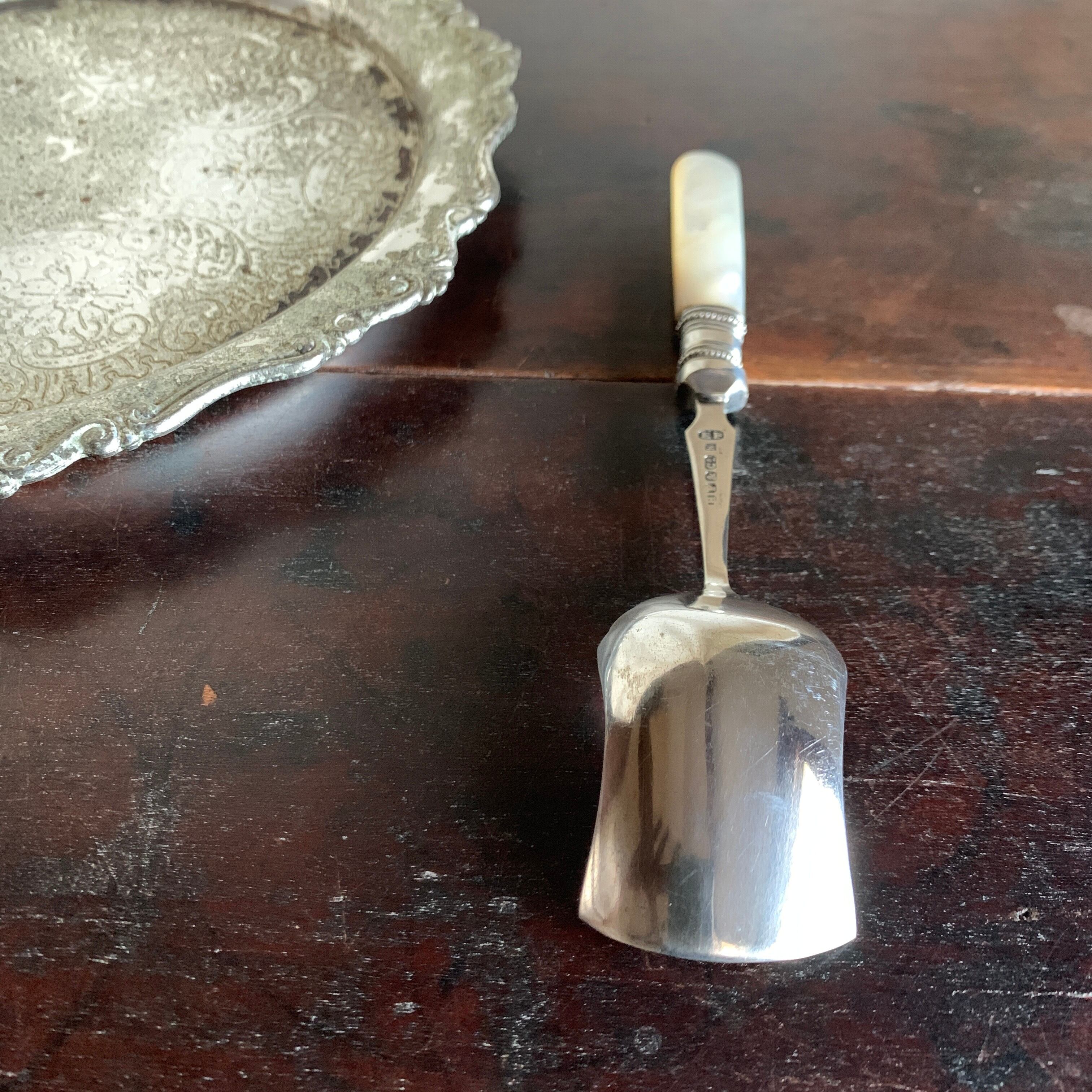 シルバープレートとマザーオブパール・白蝶貝がハンドルのヴィンテージのアイスクリームスプーンです。