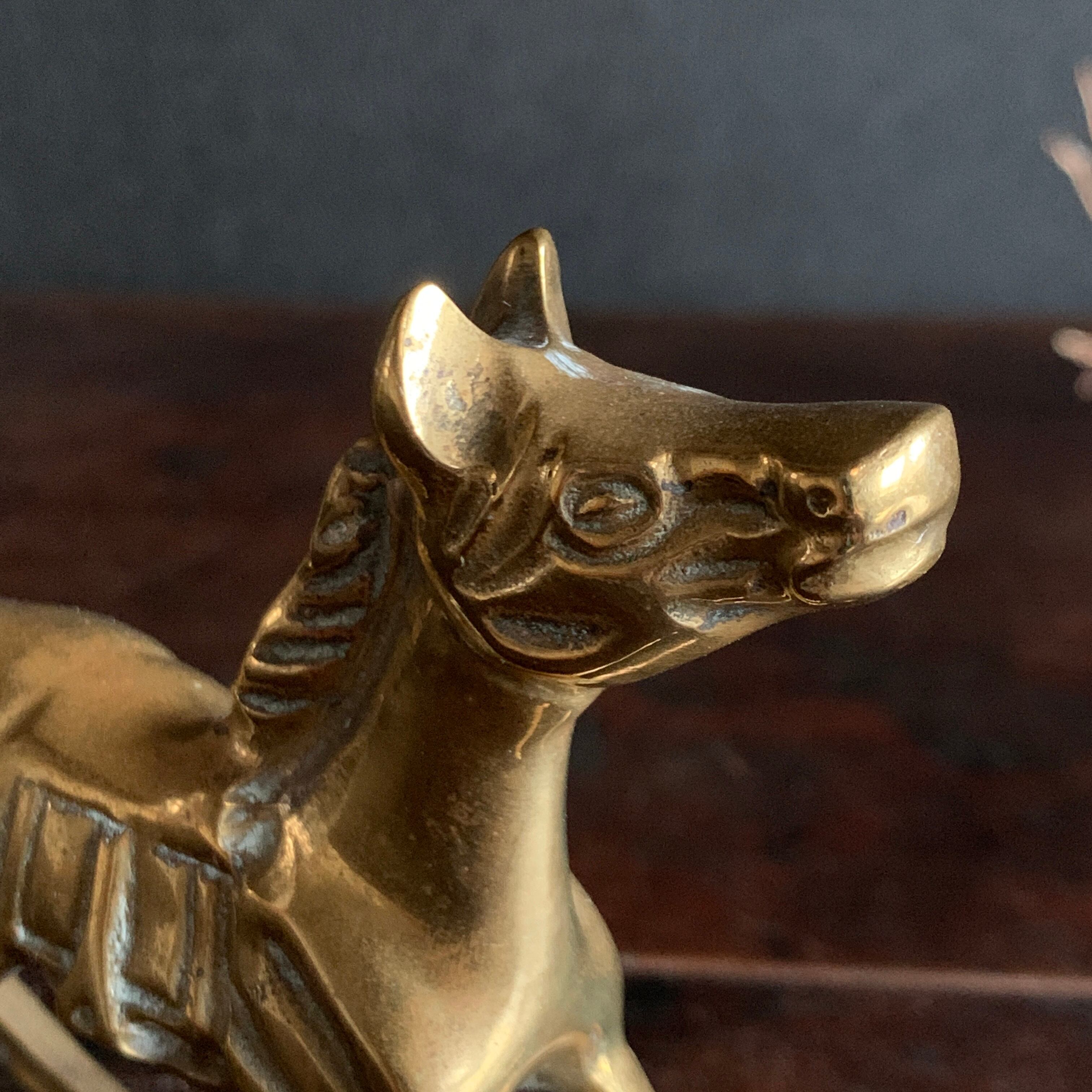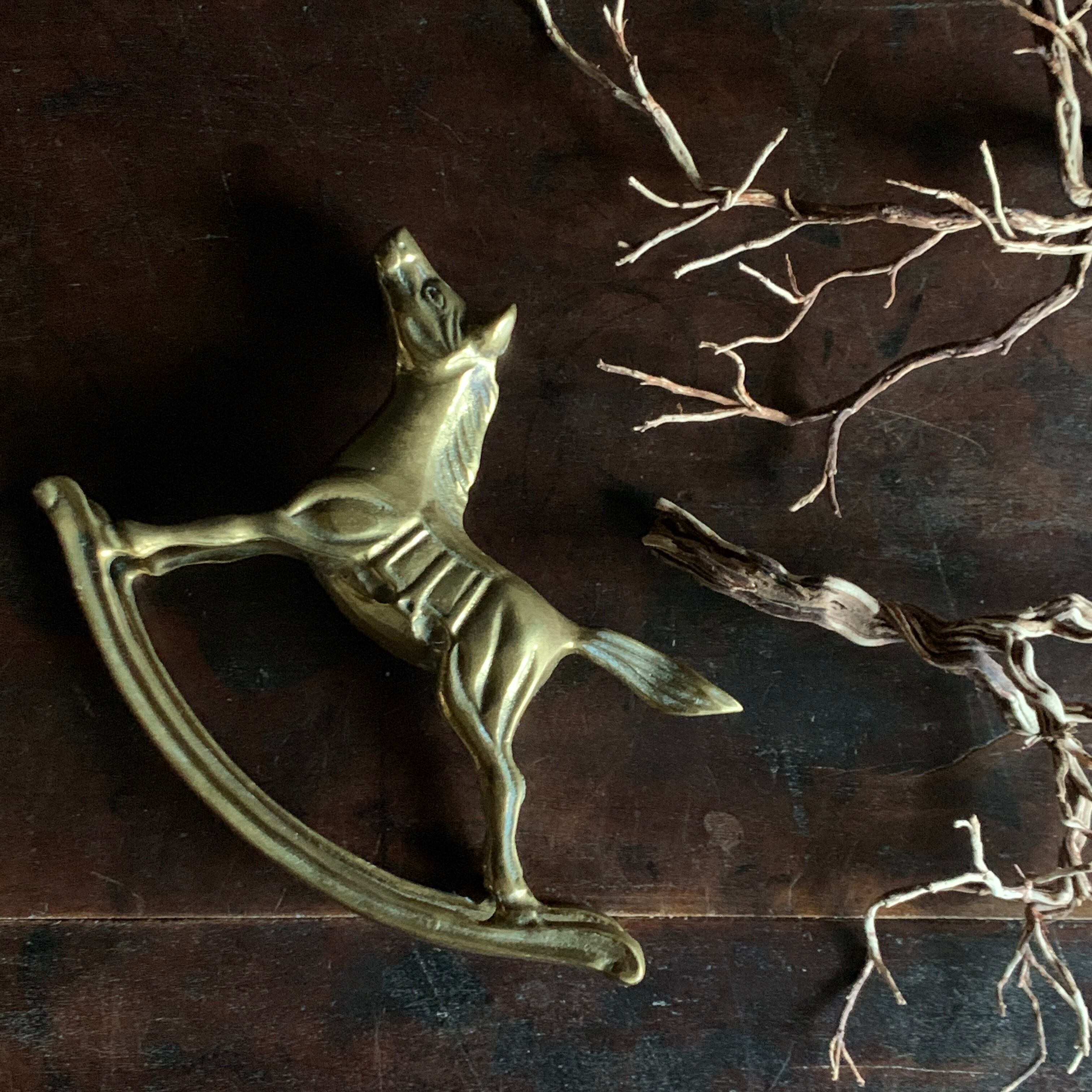 真鍮製でずっしりとした重厚感と存在感があり、ゆらゆら揺れる木馬のような可愛らしさも合わせ持ち、とても素敵な一品です。