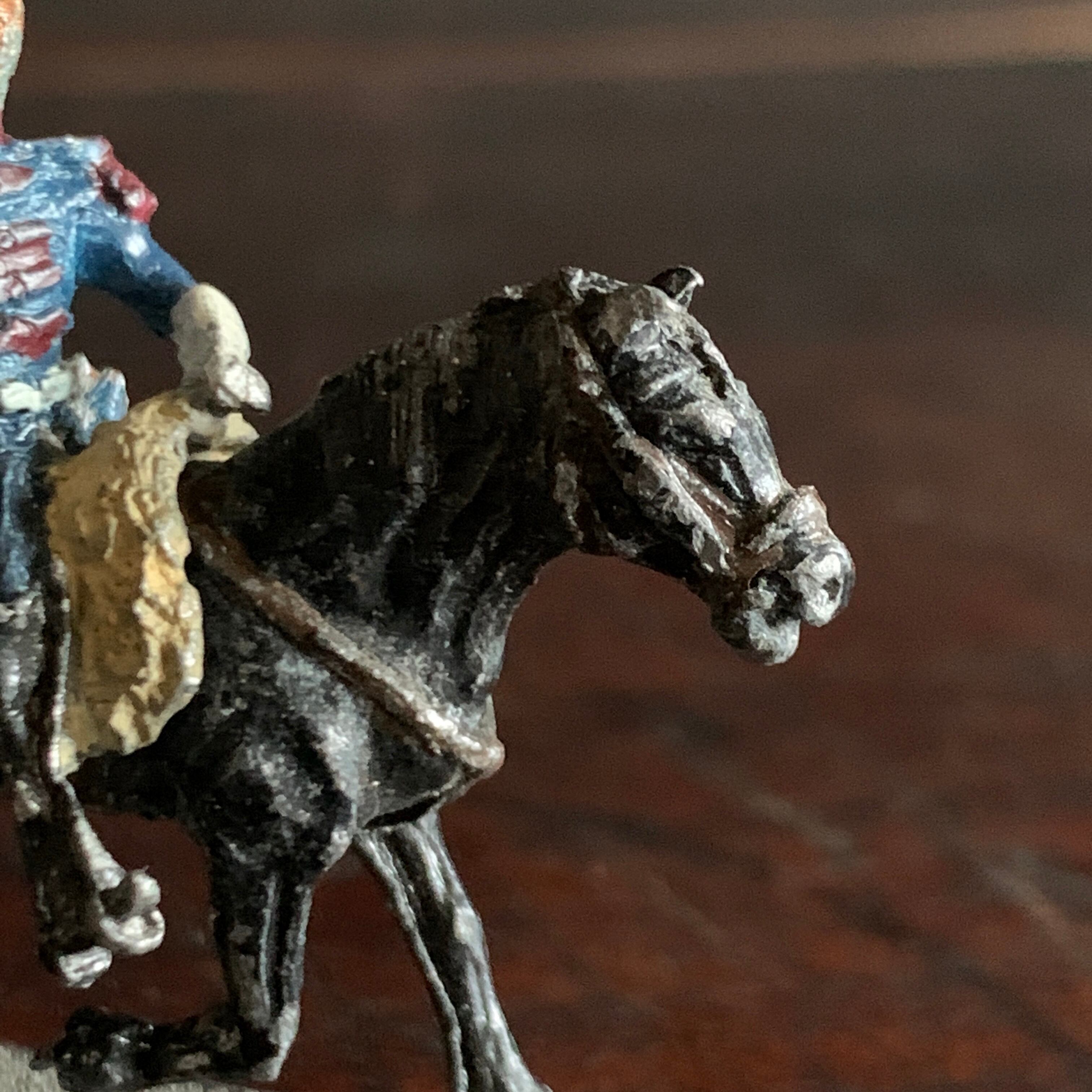 イギリスの蚤の市で出会った、馬にまたがる騎士のミニチュアです。