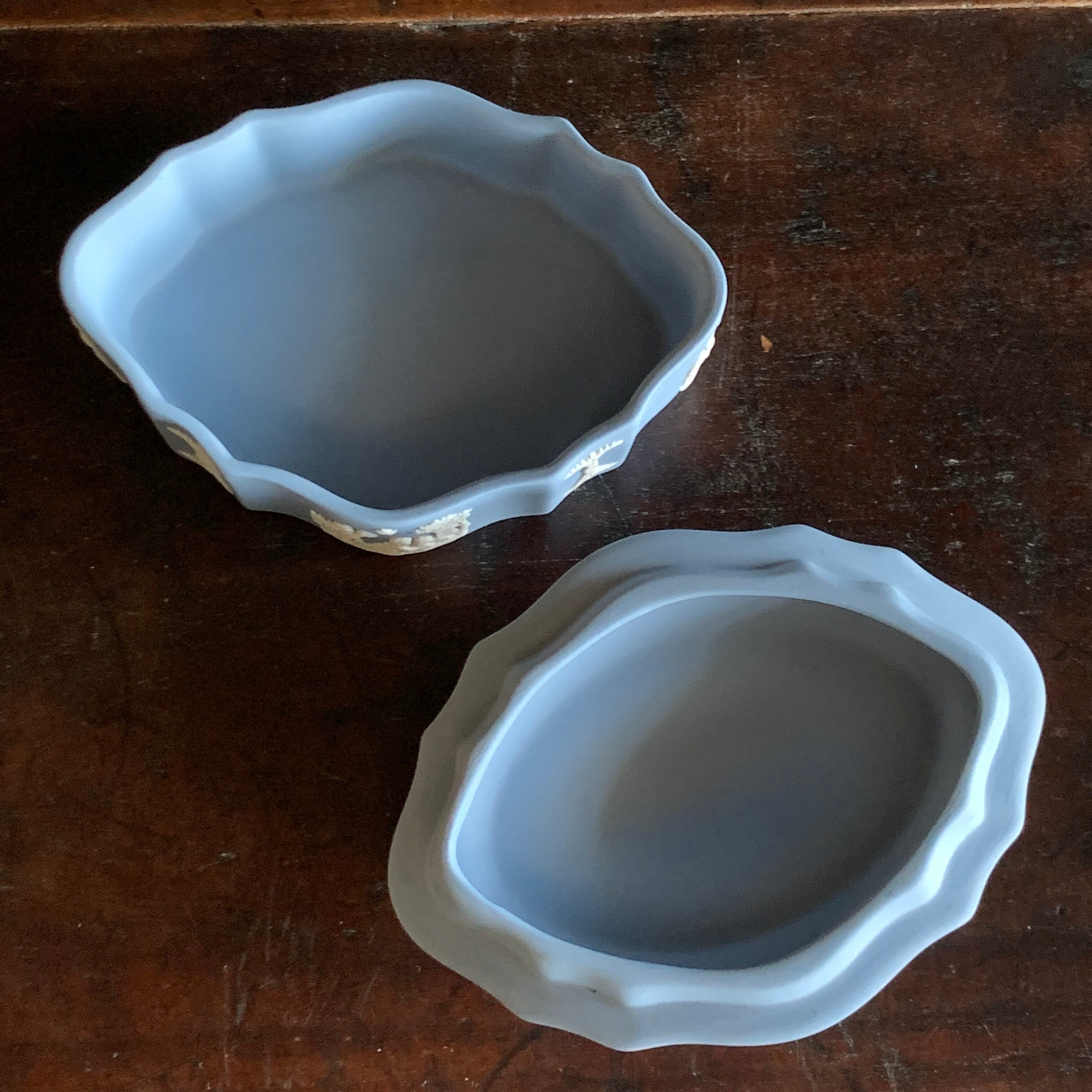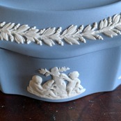 こちらは、ウェッジウッドブルーとも呼ばれている独特のペールブルー。マットな質感が上品でカメオのように立体的に表現されたレリーフの模様は繊細で美術品のように素敵なアクセサリーケースですね。