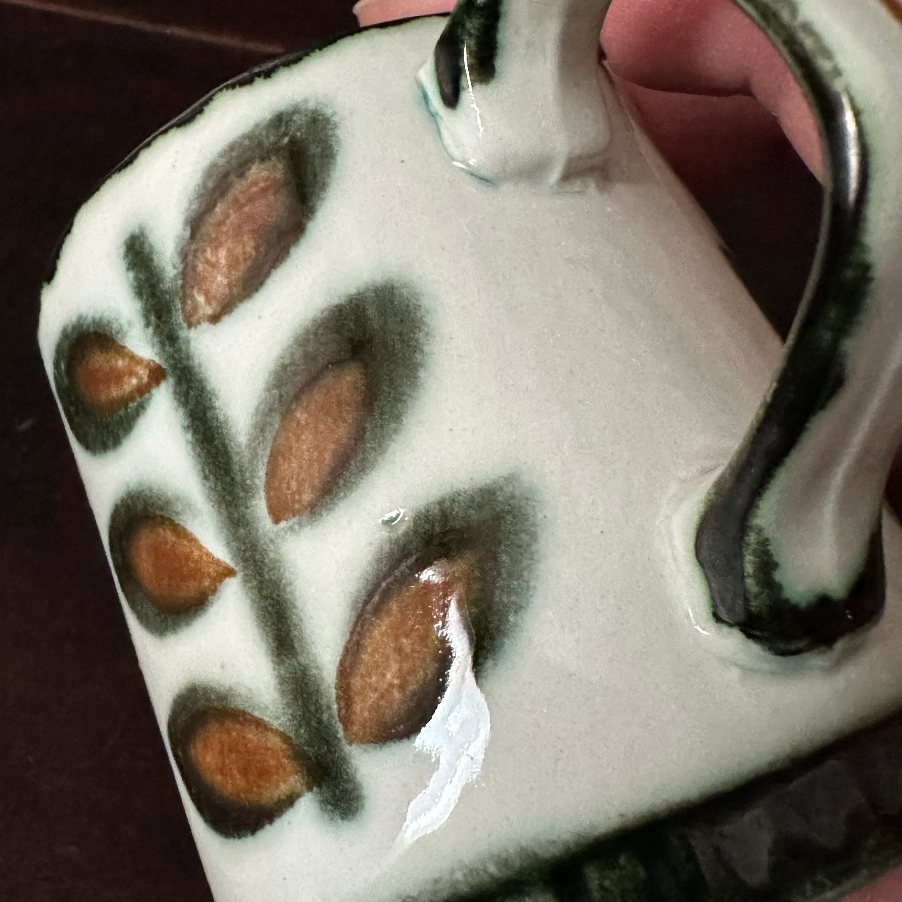 また、取手横に小さなキズがありますが(13枚目画像)、釉薬が上塗りされていることから、制作時に出来た凹凸と思われます。