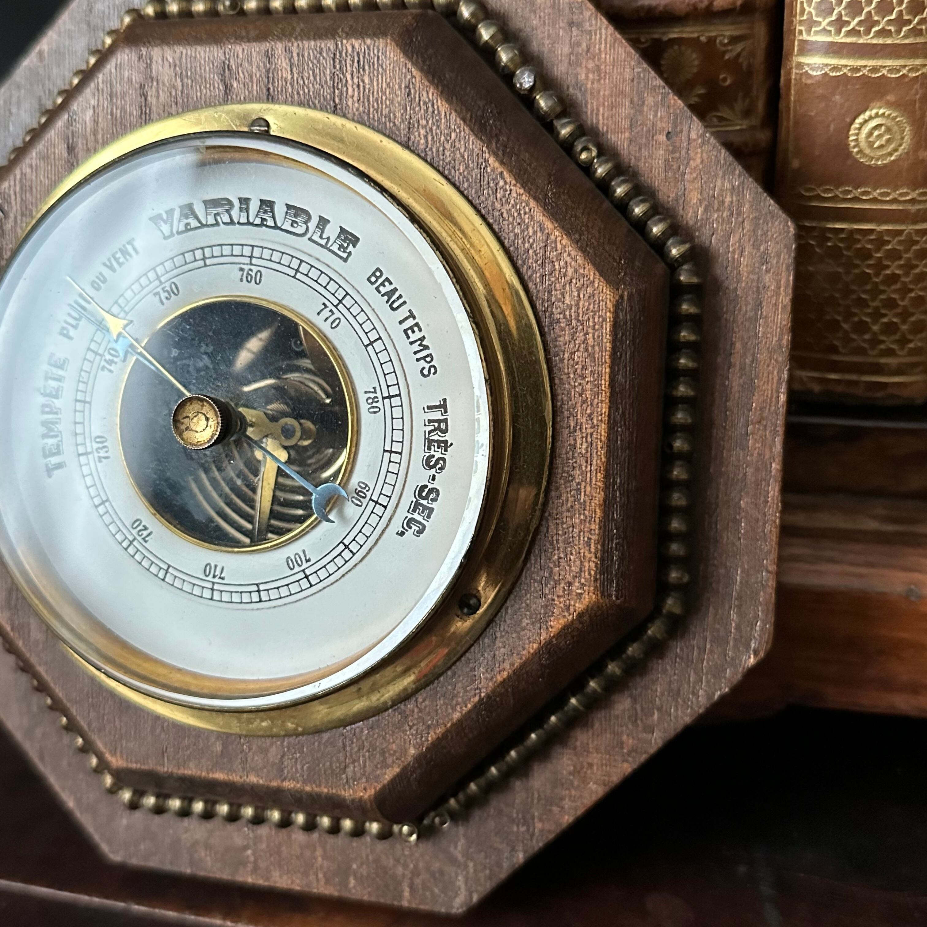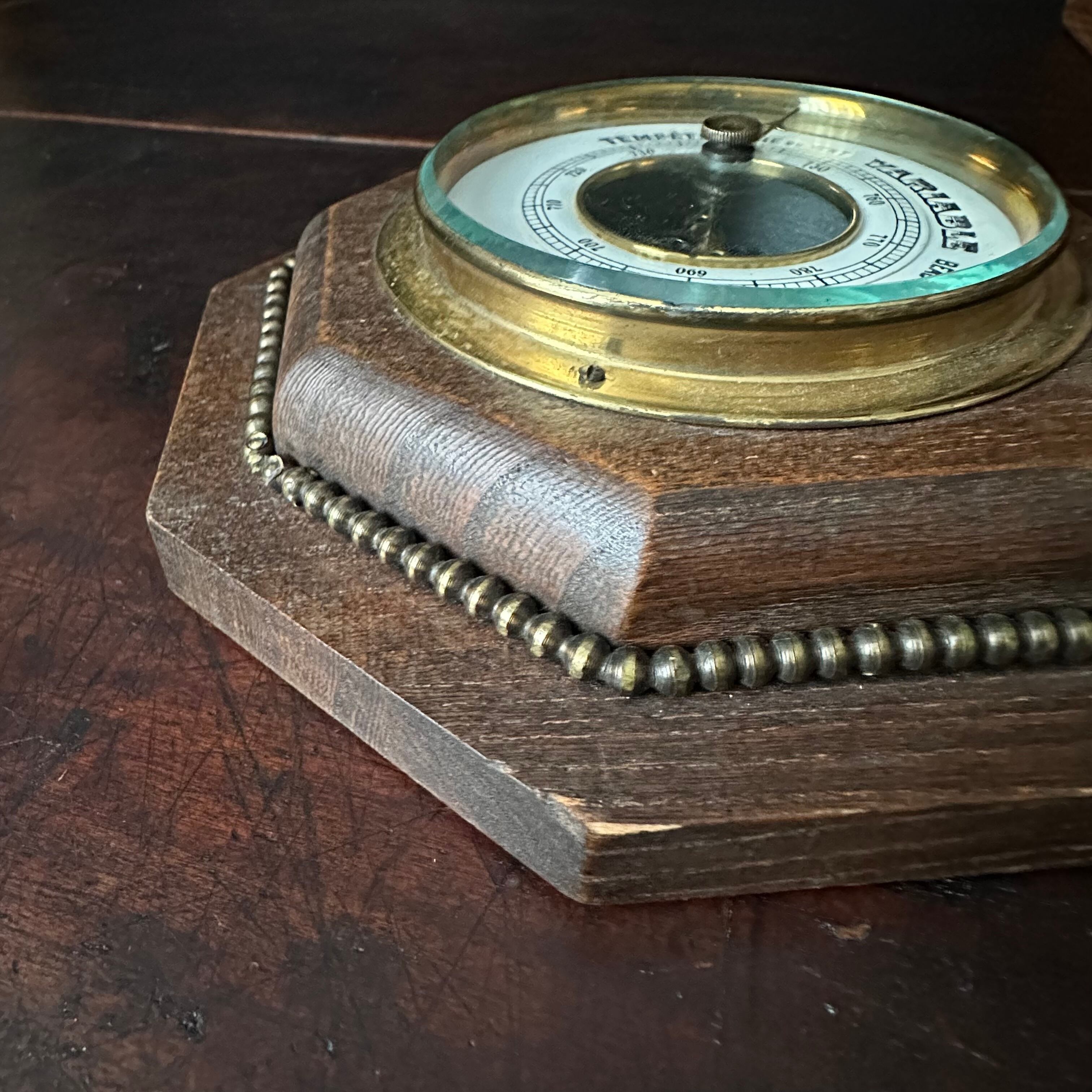 八角形に形どられた木枠とそれを縁取る真鍮の装飾、中央に文字盤が埋め込まれた船舶の雰囲気漂う気圧計。