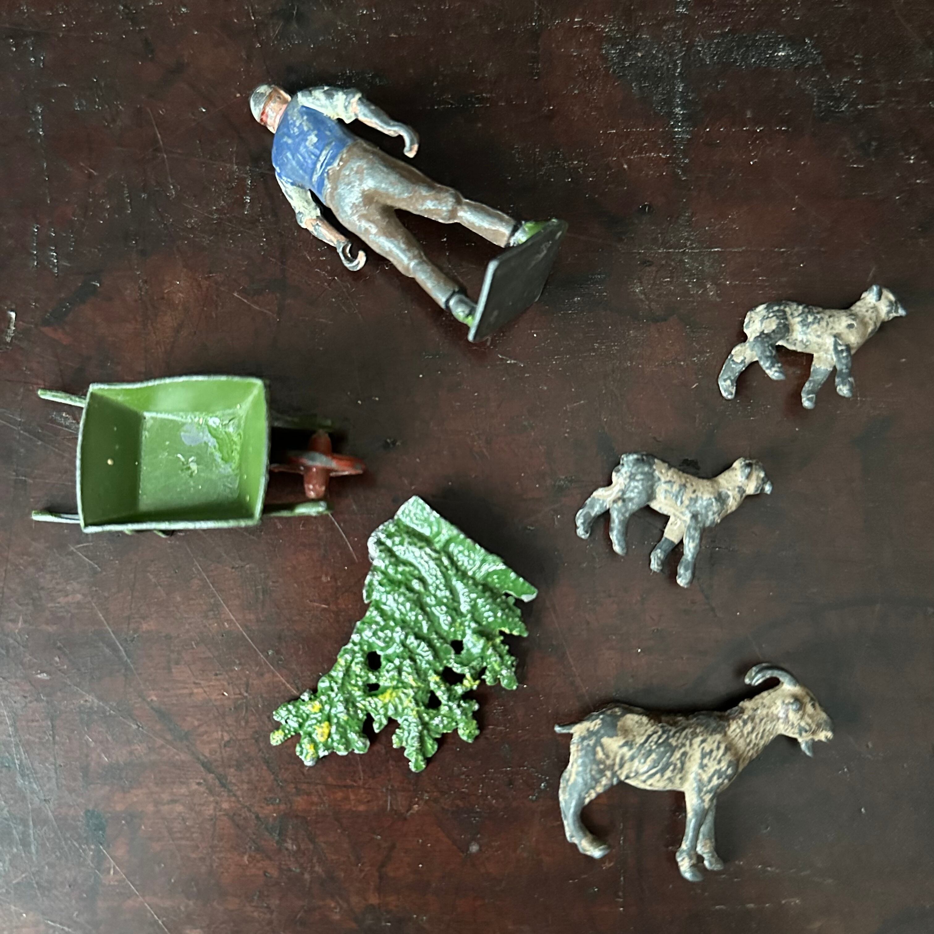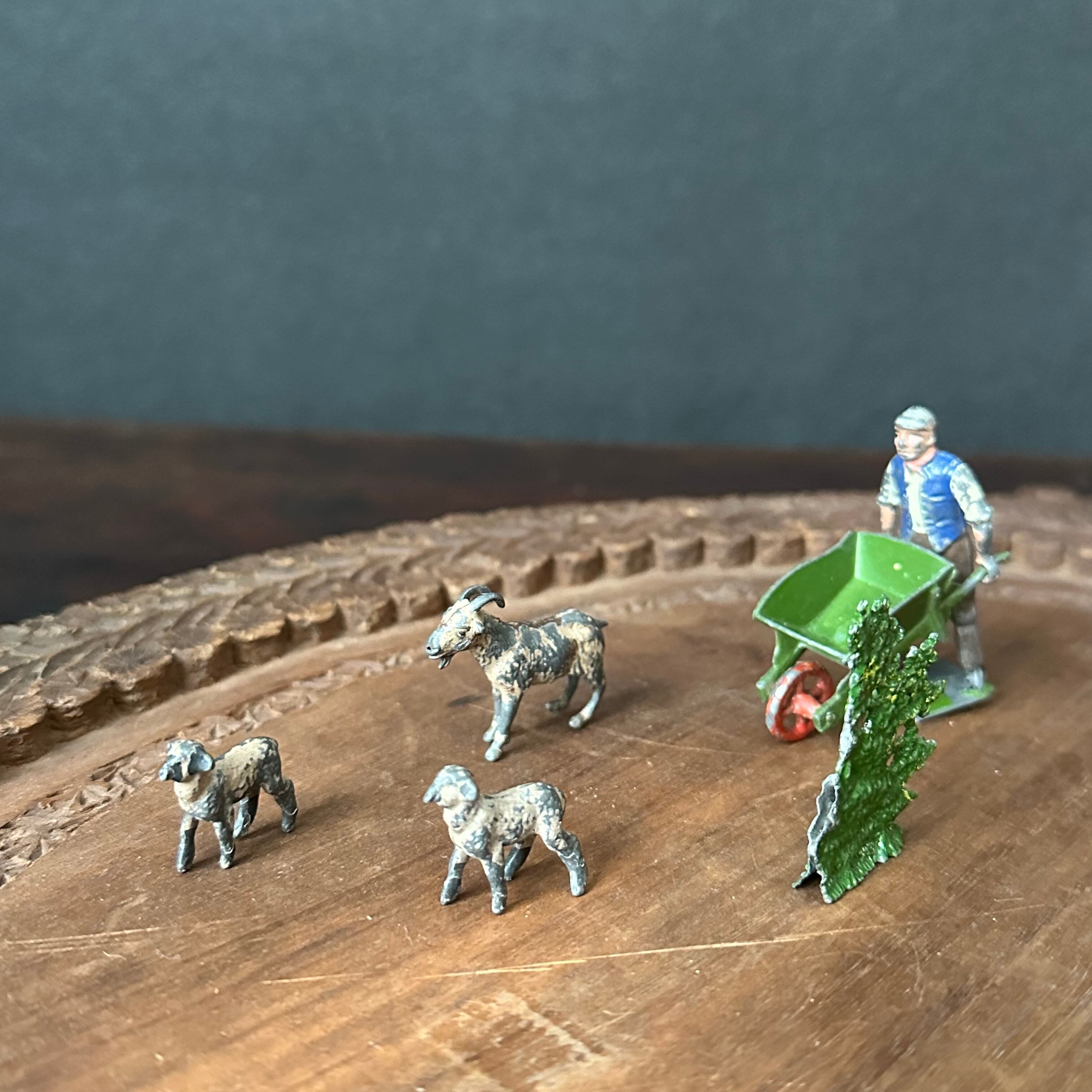 Vintage ミニチュア 農夫とヤギの親子set England