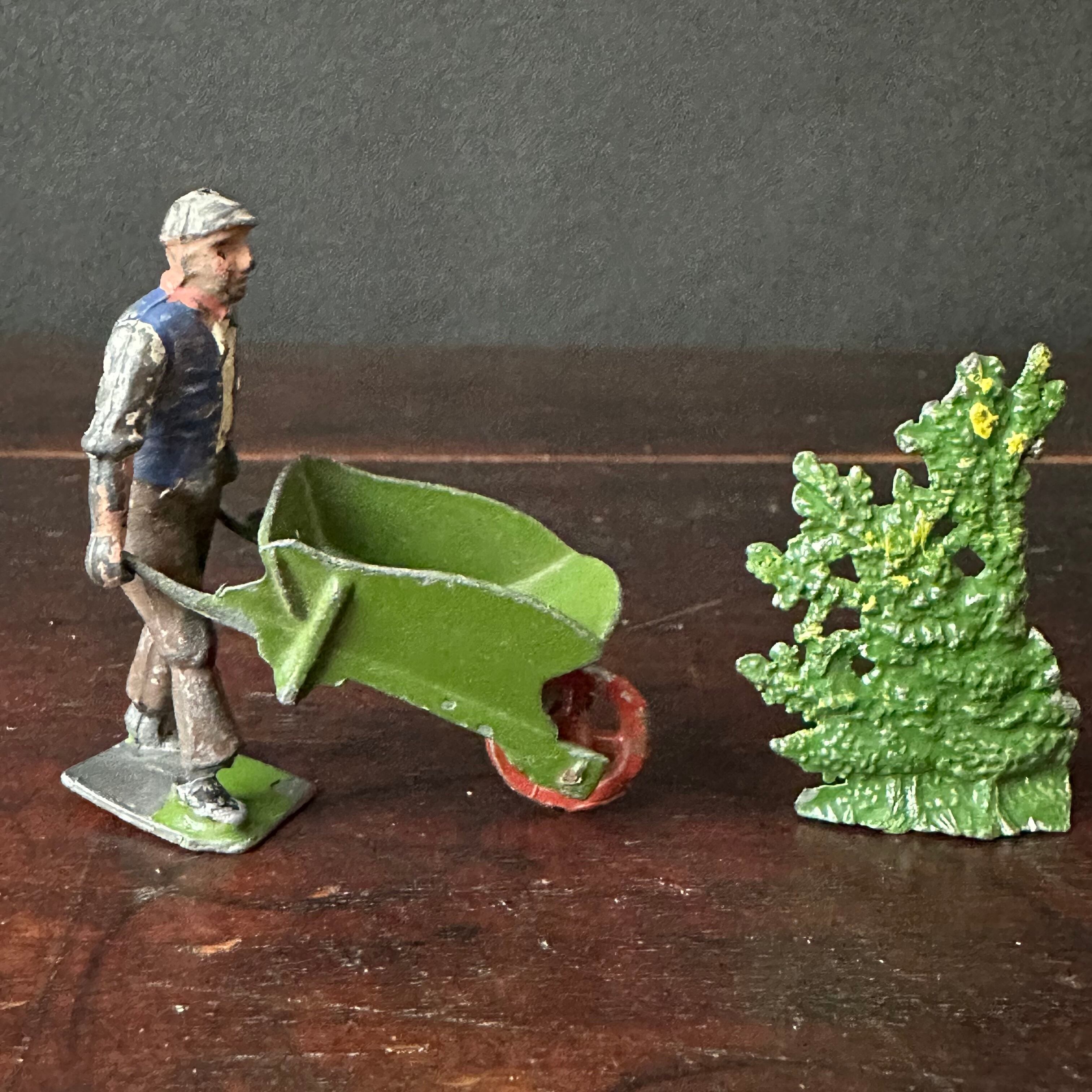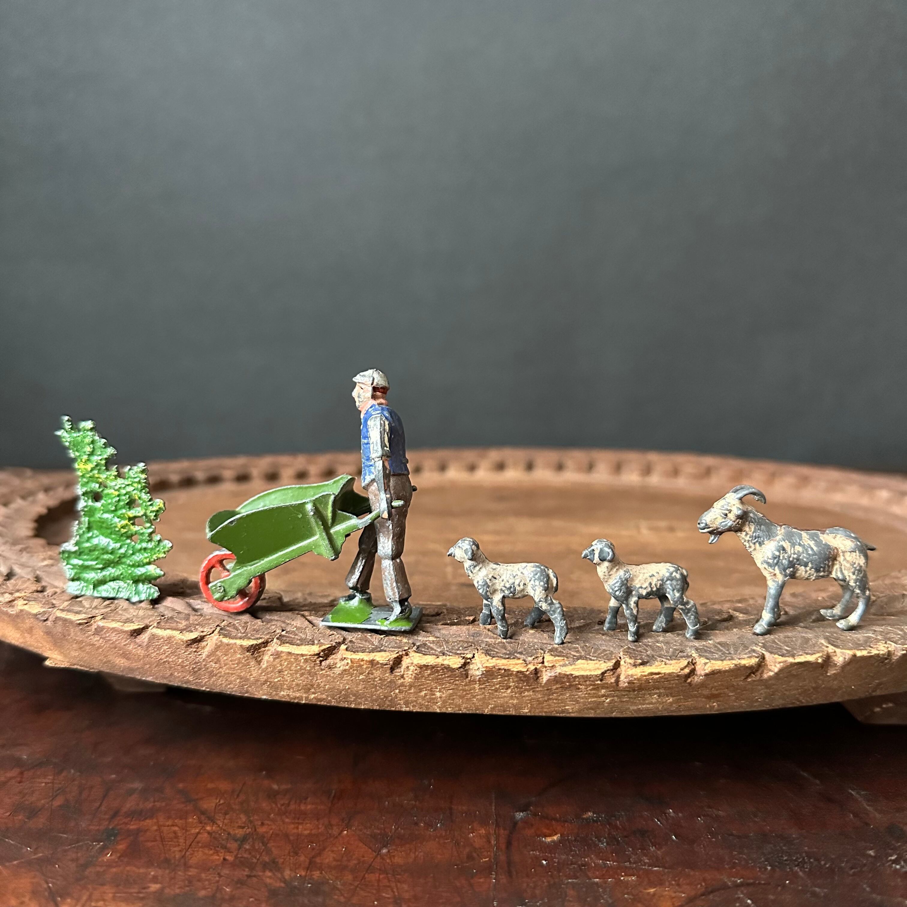 台車を押す農夫と草木とヤギの親子の6個セットです。