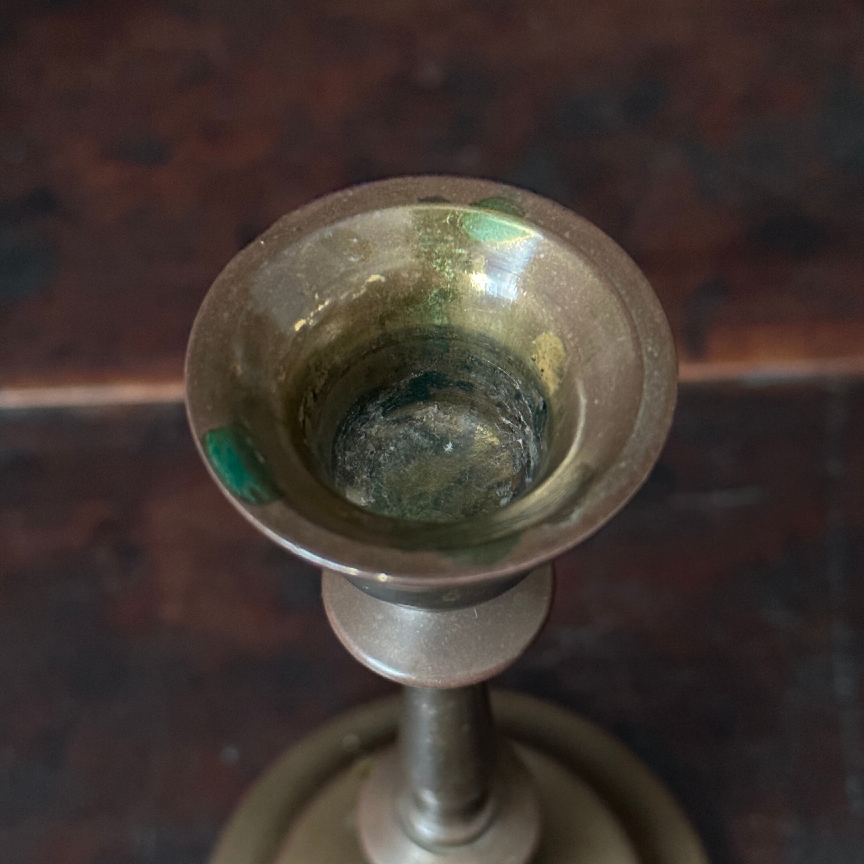 キャンドルの受け皿や土台には真鍮独特の緑青と呼ばれるサビがあり、経年によるくすみや汚れキズなども見受けられますが、古いものの風合いとして感じていただけると幸いです。
