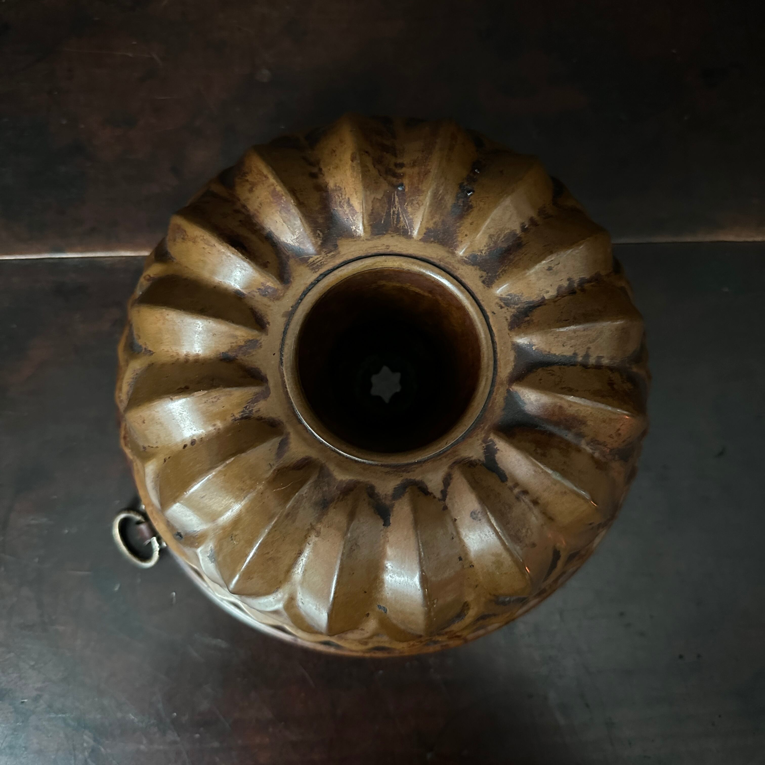 こちらの型は、何度も何度も焼き上げて出来たこんがりとした焼き色が印象的で、銅の色が深い味のある色合いへと変化したモールドとなっています。