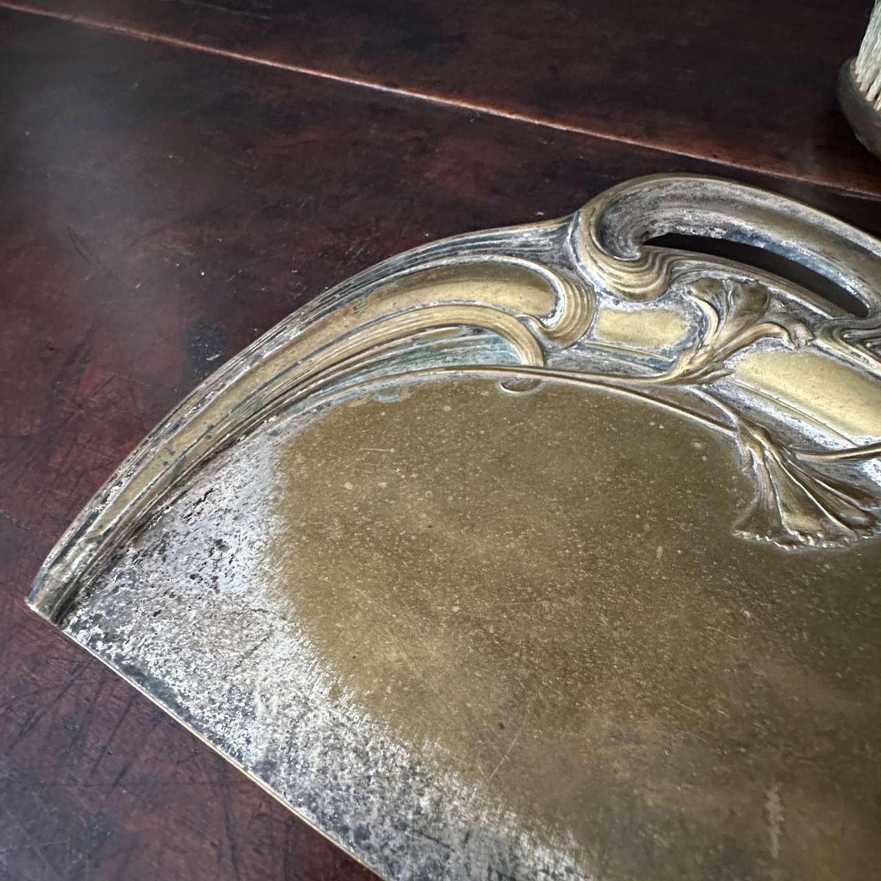 真鍮製でアールヌーボー調の植物の曲線が美しく優雅に施されており、柔らかな印象のダストパン&ダストブラシです。