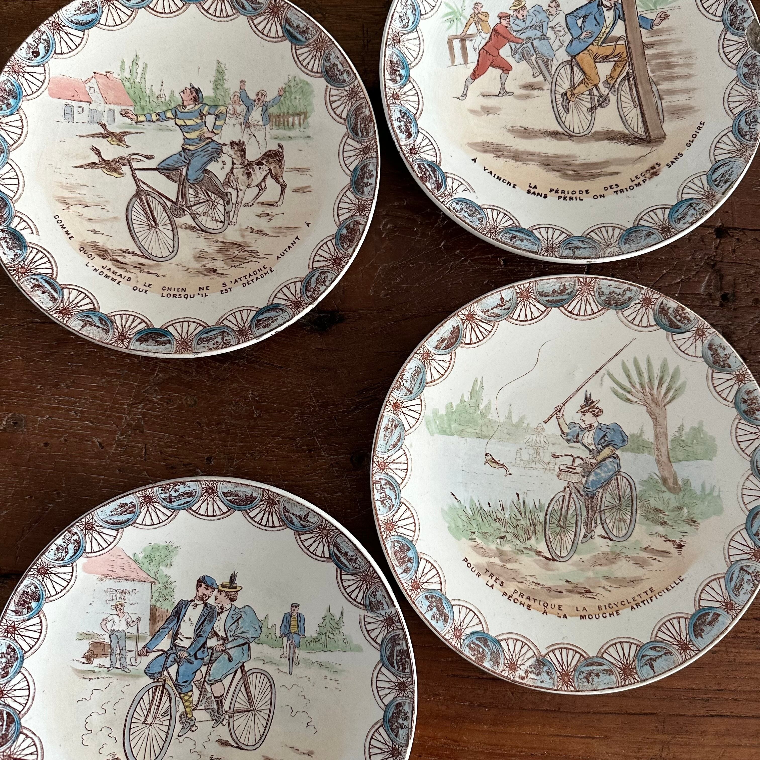全体的に優しい色合いで、プレートのリムには自転車の車輪とのどかな風景模様が縁取のデザインとされていることもユーモア感があり素敵です。