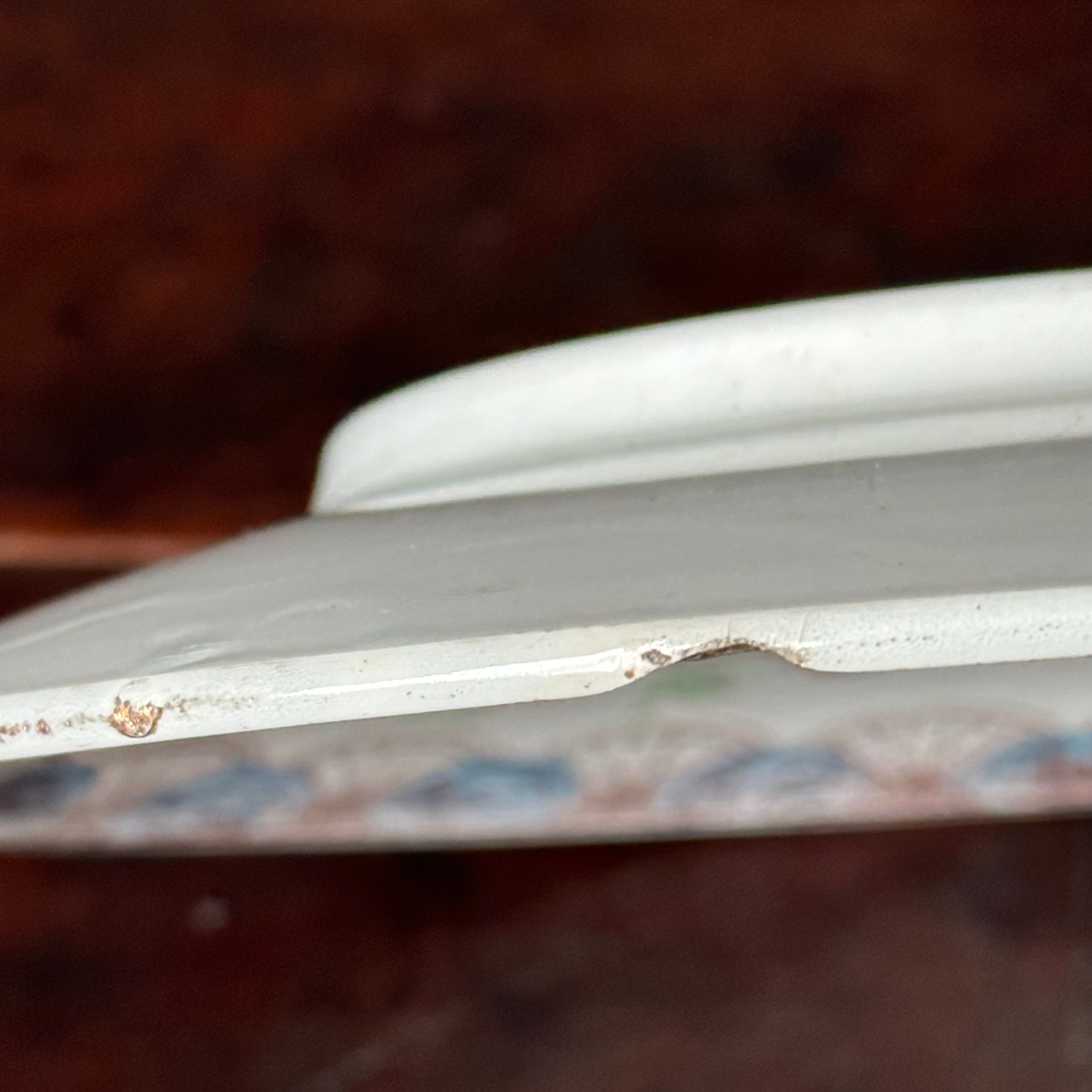 ※古いもののため経年によるスレや汚れ、小さなキズが多くあります。縁や裏面には小さな欠けや表面の縁に大きめの欠けがあります。制作時に付いたと思われる色の滲みと凹凸があり、貫入も見られます。ヴィンテージならではの風合いとして感じていただけると幸いです。