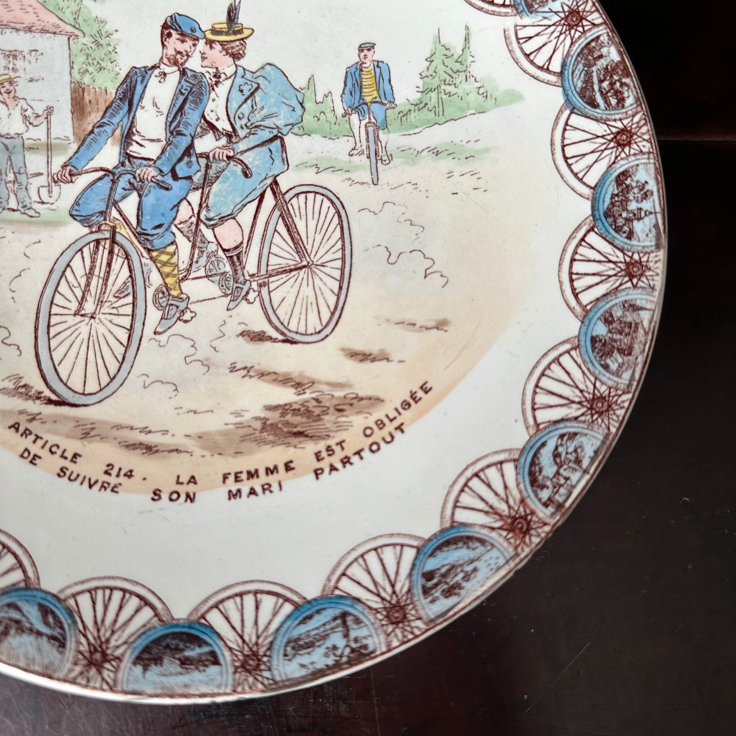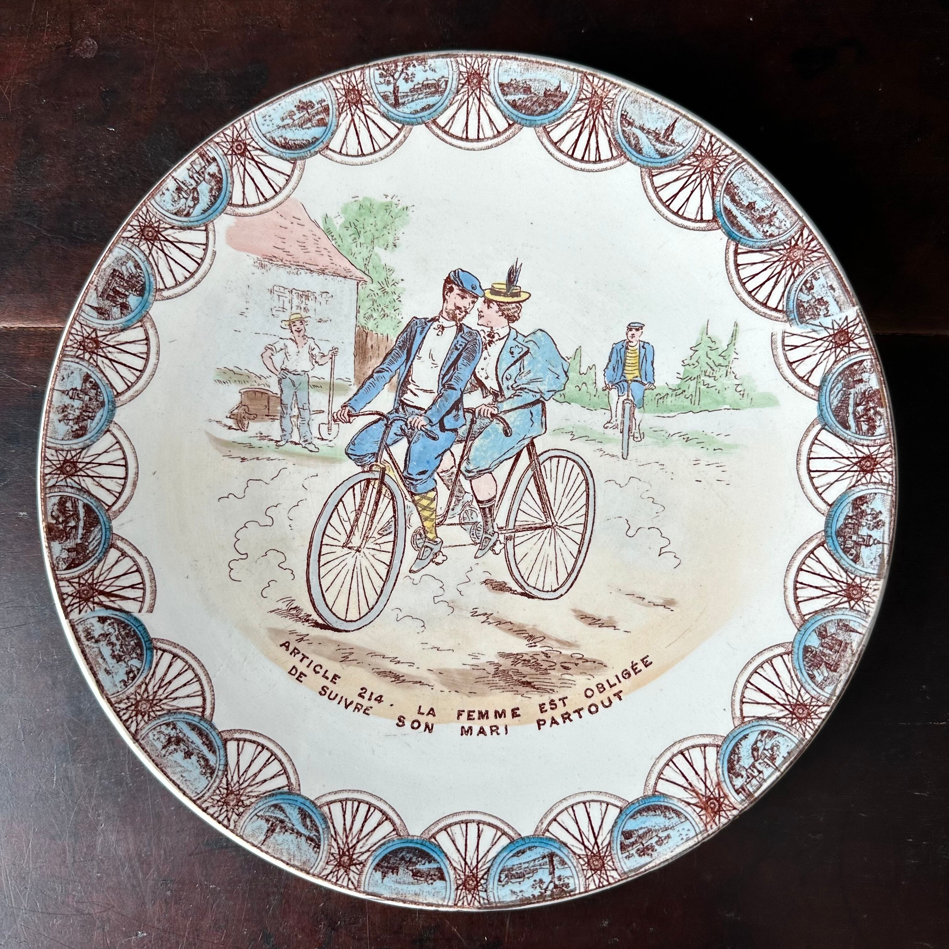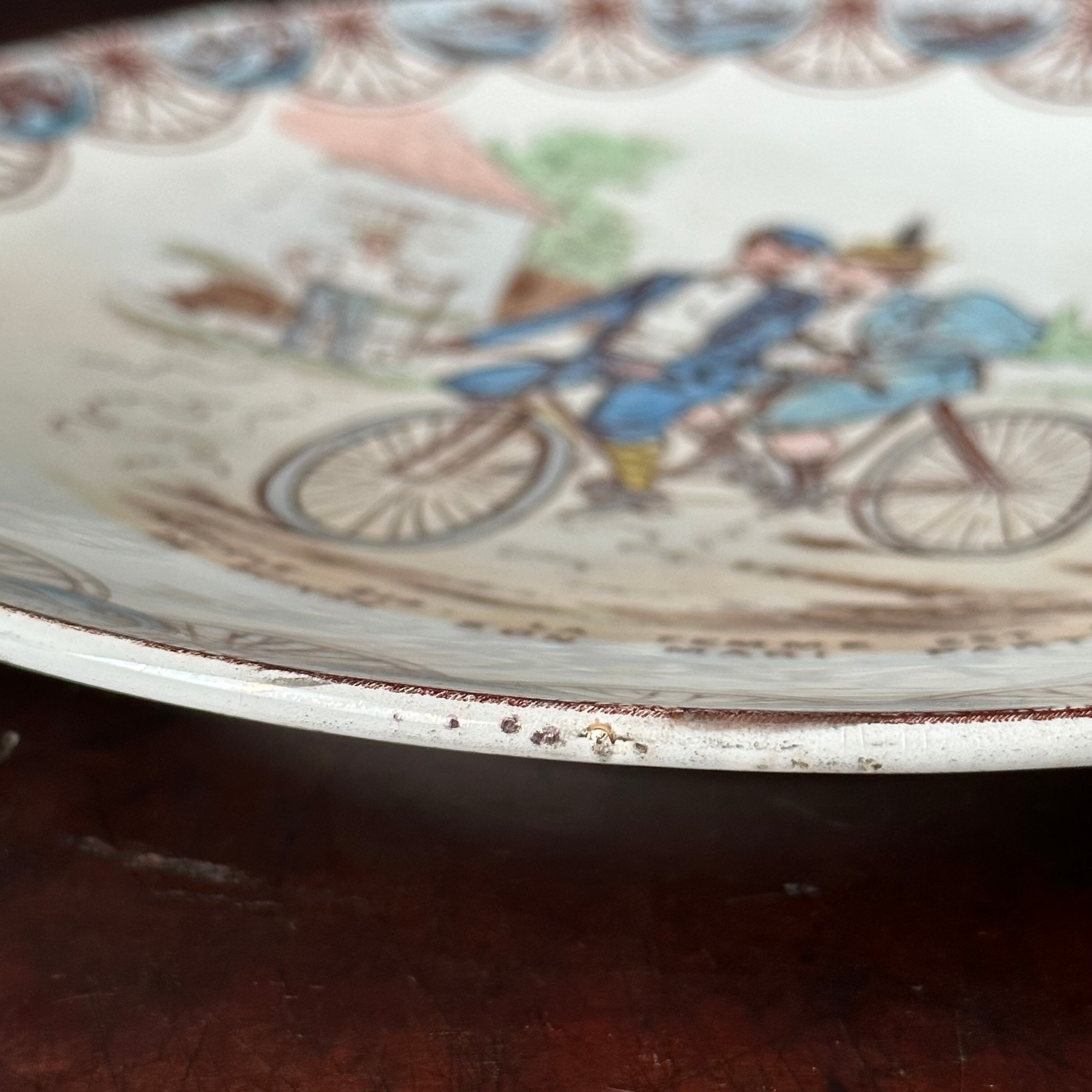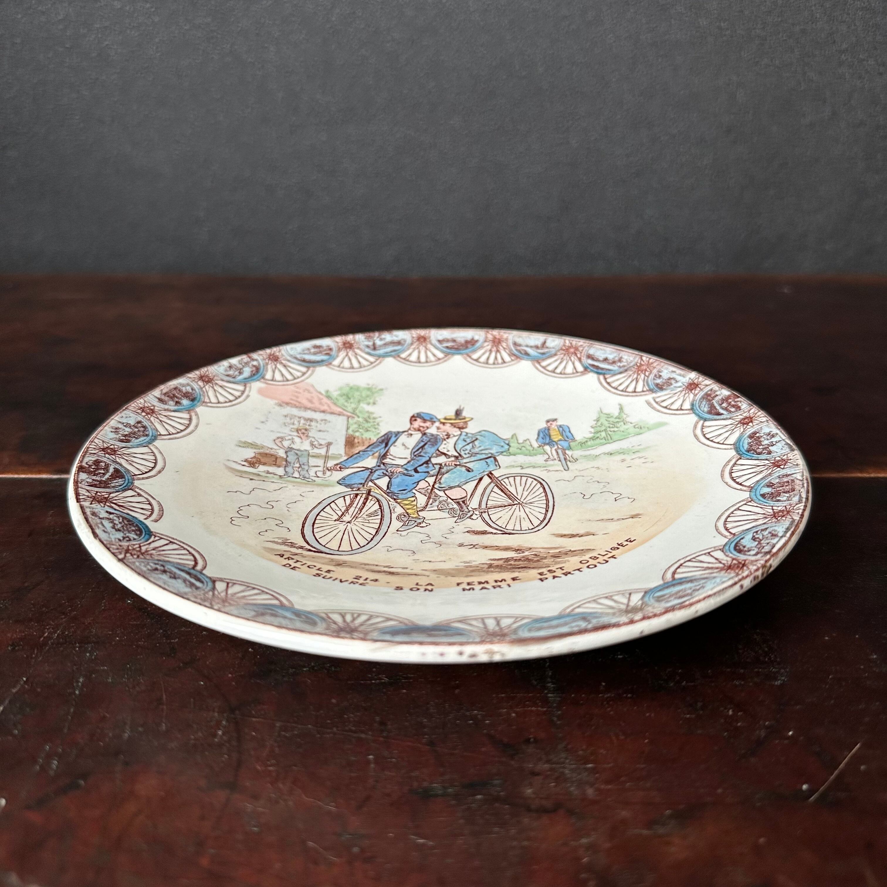 全体的に優しい色合いで、プレートのリムには自転車の車輪とのどかな風景模様が縁取のデザインとされていることもユーモア感があり素敵です。