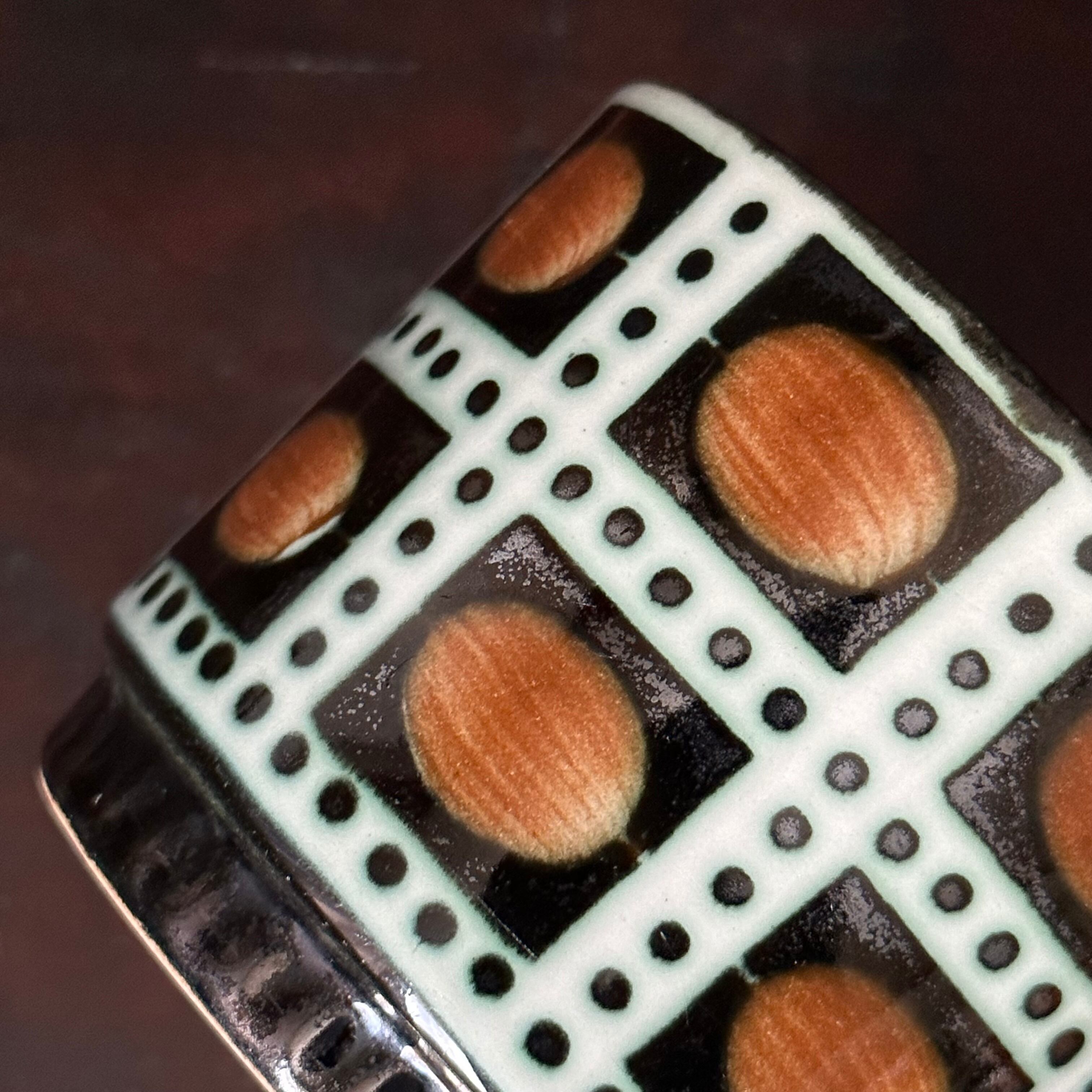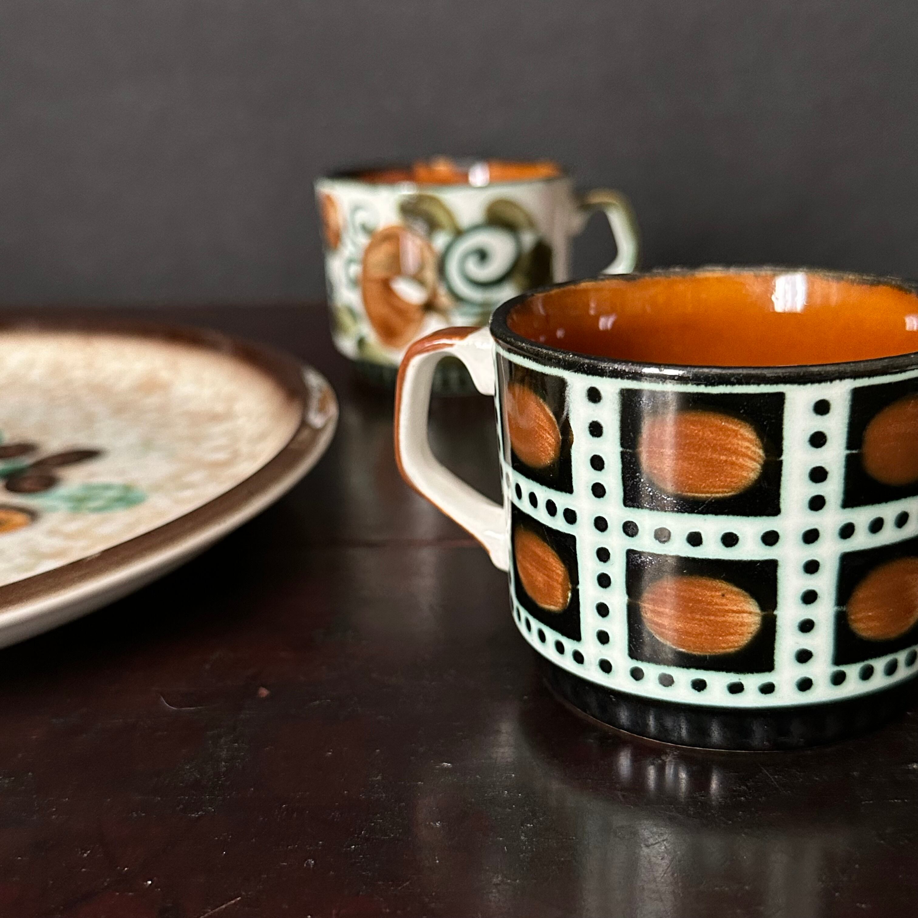 ドットと四角い模様がきれいに並んだデザインを職人が一つ一つ丁寧に手描きした味のあるカップです。こちらは1960年頃に製造された Bernadette(ベルナデッタ)シリーズ。