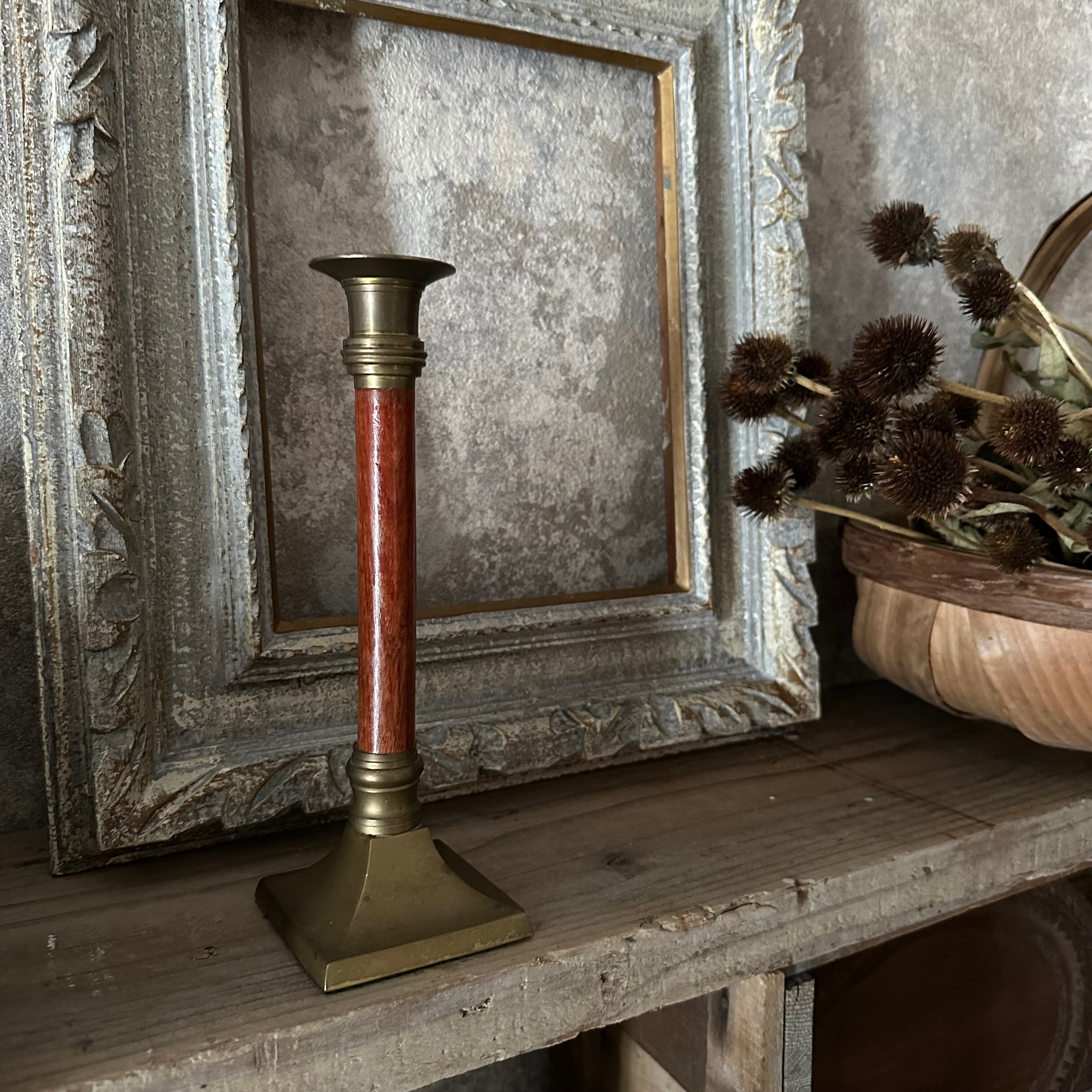 France Vintage 真鍮と木の燭台 キャンドルホルダー