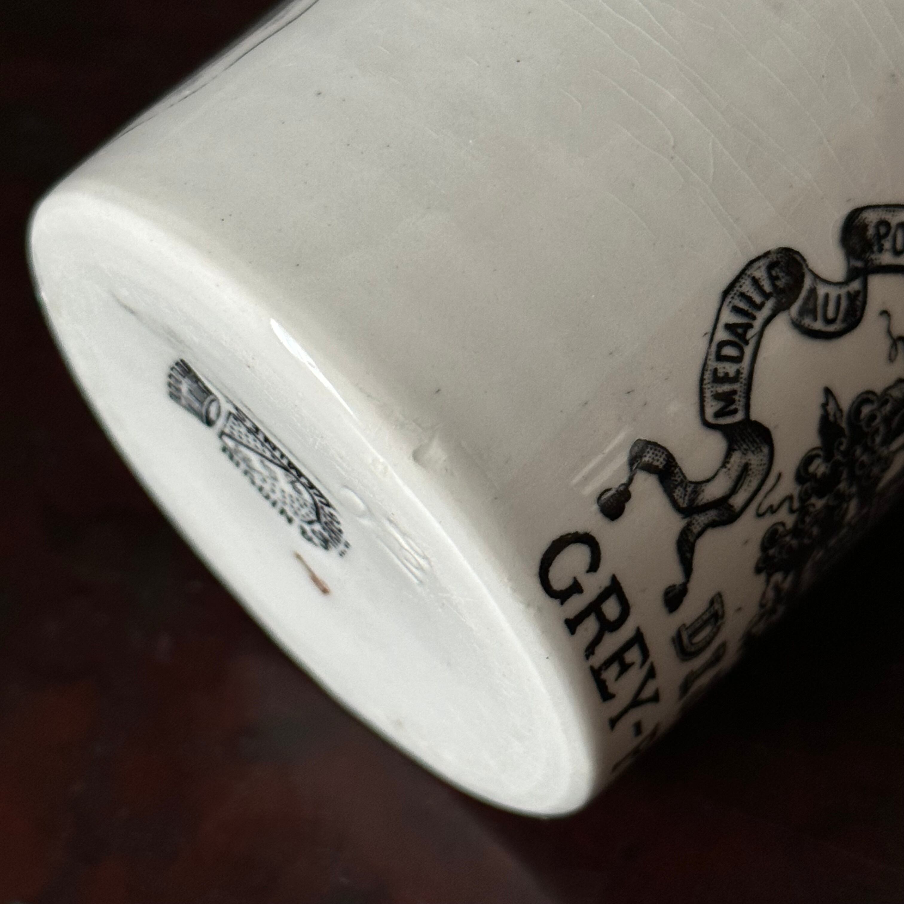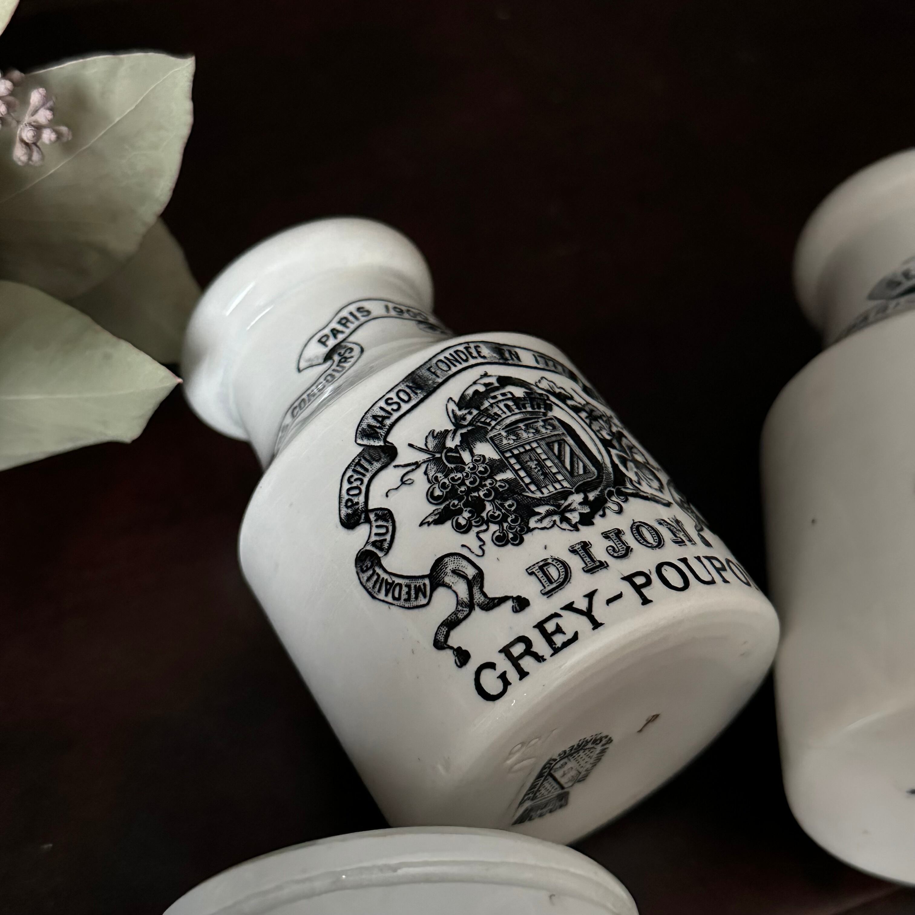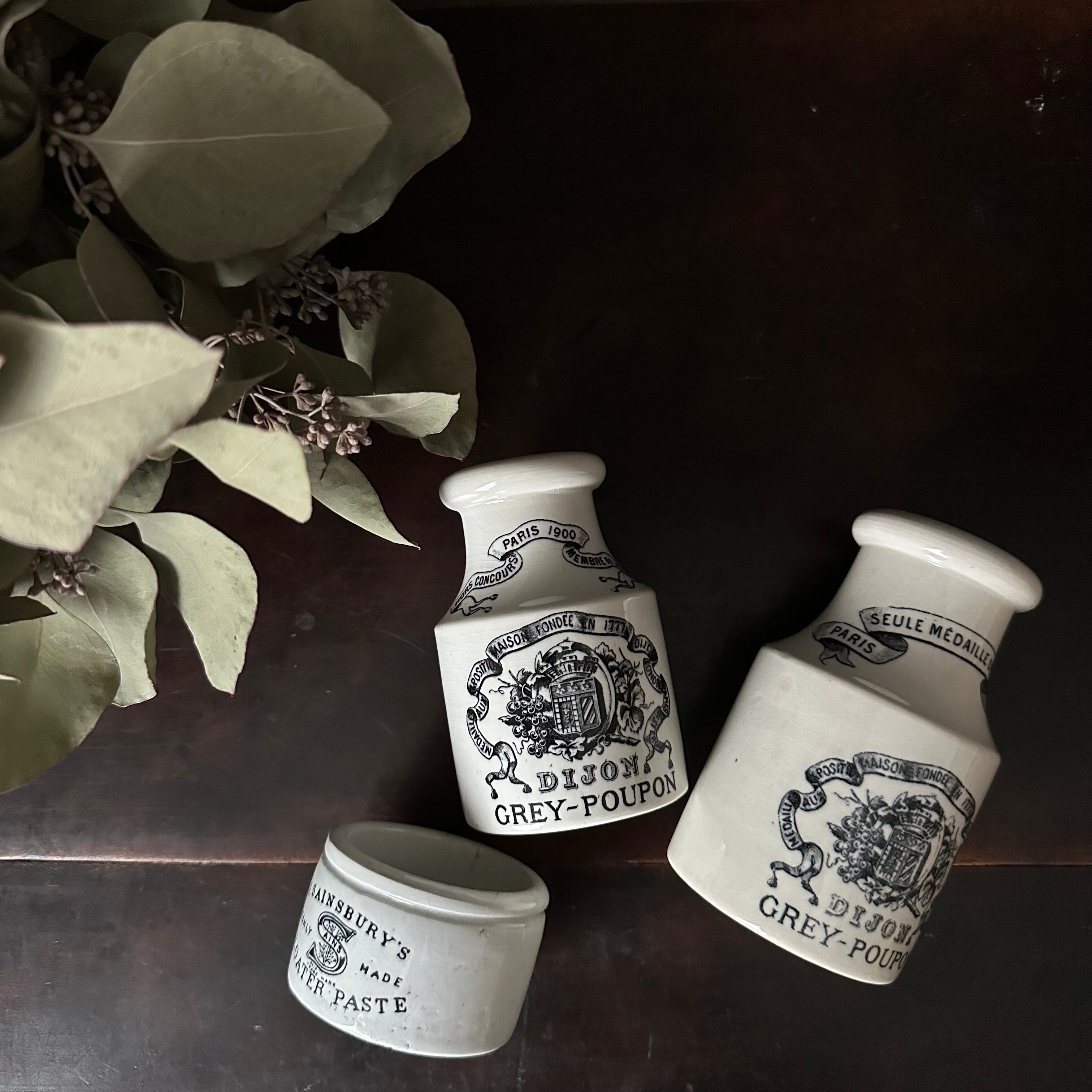 正面裏面共にDIJON GREY-POUPON と書かれております。DIJON (ディジョン)はフランス東部にあるマスタードの有名な産地で、こちらはDIJONで1866年創業のGREY-POUPON (グレイプポン)のマスタードポットです。